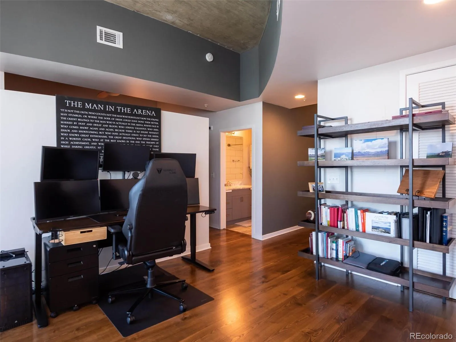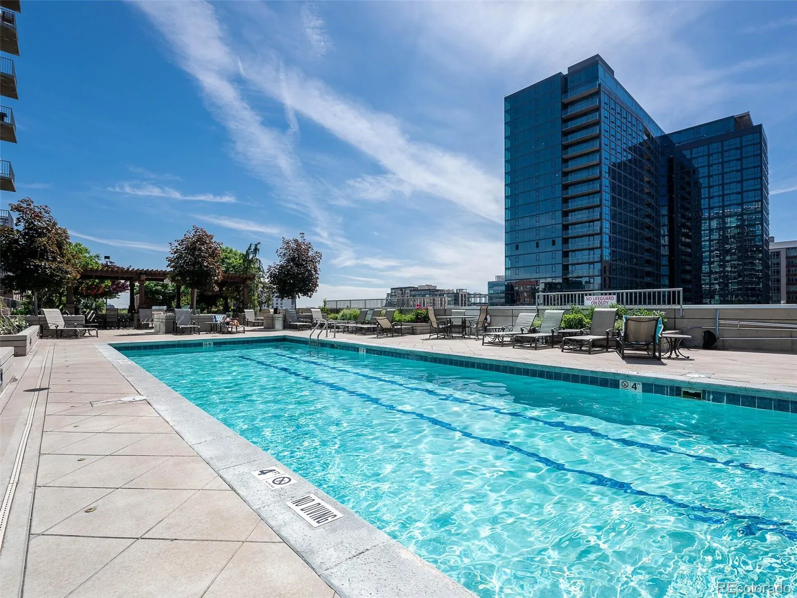 Gorgeous updated Glass House condo with 11 foot ceilings. Stunning views of Denver’s fast growing city scape to the East and mountain, sunset and park views to the Northwest or gaze down at the pool and amenities deck below. The condo has been beautifully updated with white kitchen cabinets, a marble backsplash, new appliances and a bar with wine chiller and drawers. The open great room has enough space for a large dining room table and entertainment area with built in cabinets above and below the TV. The bedroom has a walk-in closet with a barn door and elegantly renovated bathroom with white subway tile and new vanity. Glass House amenities include the swimming pool and outdoor grills, club room, a theater room, social events throughout the year, in-house athletic club, conference room and 24/7 front desk. Riverfront Park is a residential neighborhood within Downtown Denver. Situated on Commons Park, enjoy the green space and hundreds of miles of bike paths. Walk over the bridges to connect to Lodo, Union Station or LoHi for all the restaurants, sporting events, transportation and nightlife. This is city living at its best. This home can be turnkey with all the beautiful furnishings negotiable.