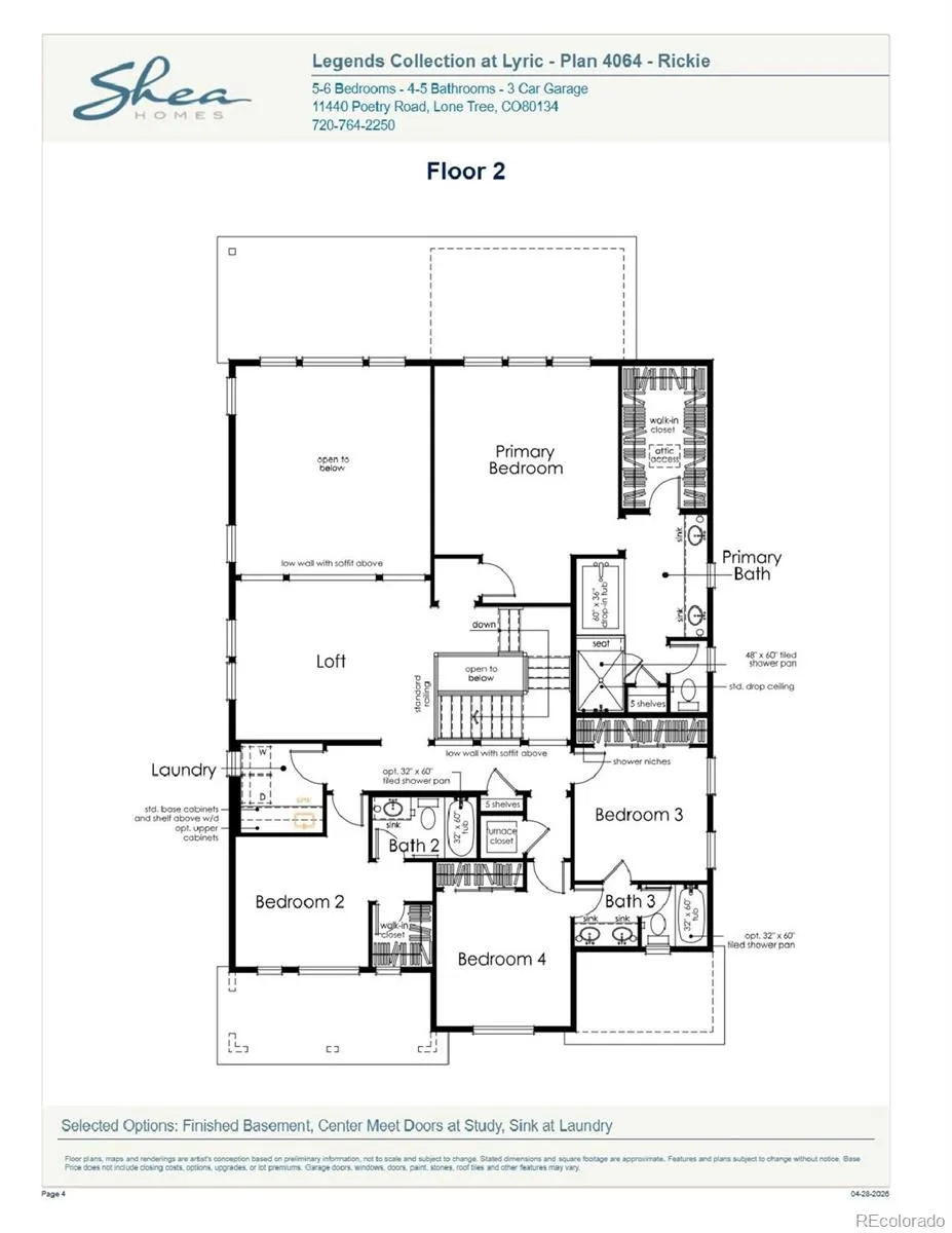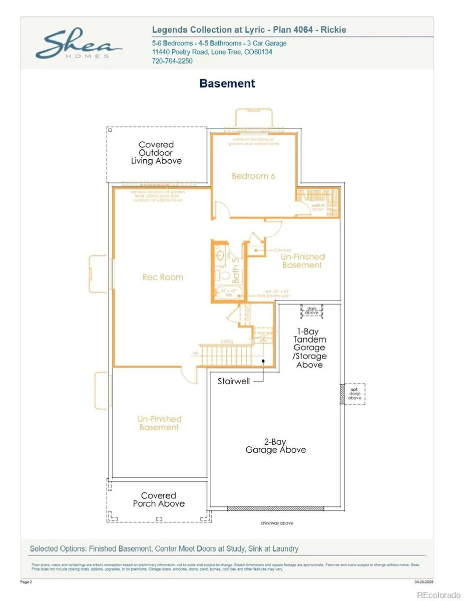 Beautiful two story home with finished basement in Lyric at Ridgegate. This home has 6 bedrooms, 5 bathrooms, fireplace with full height tile surround, loft, study with double doors, covered patio, horizontal iron railing, and 2 bay garage with storage. Design finishes include Evoke LVP floors in Summit/Peyton, MSI engineered stone counter tops in Carrara Delphi, and Yorktowne Brockton cabinets in White Icing and Smoke. Please contact a community representative for details.