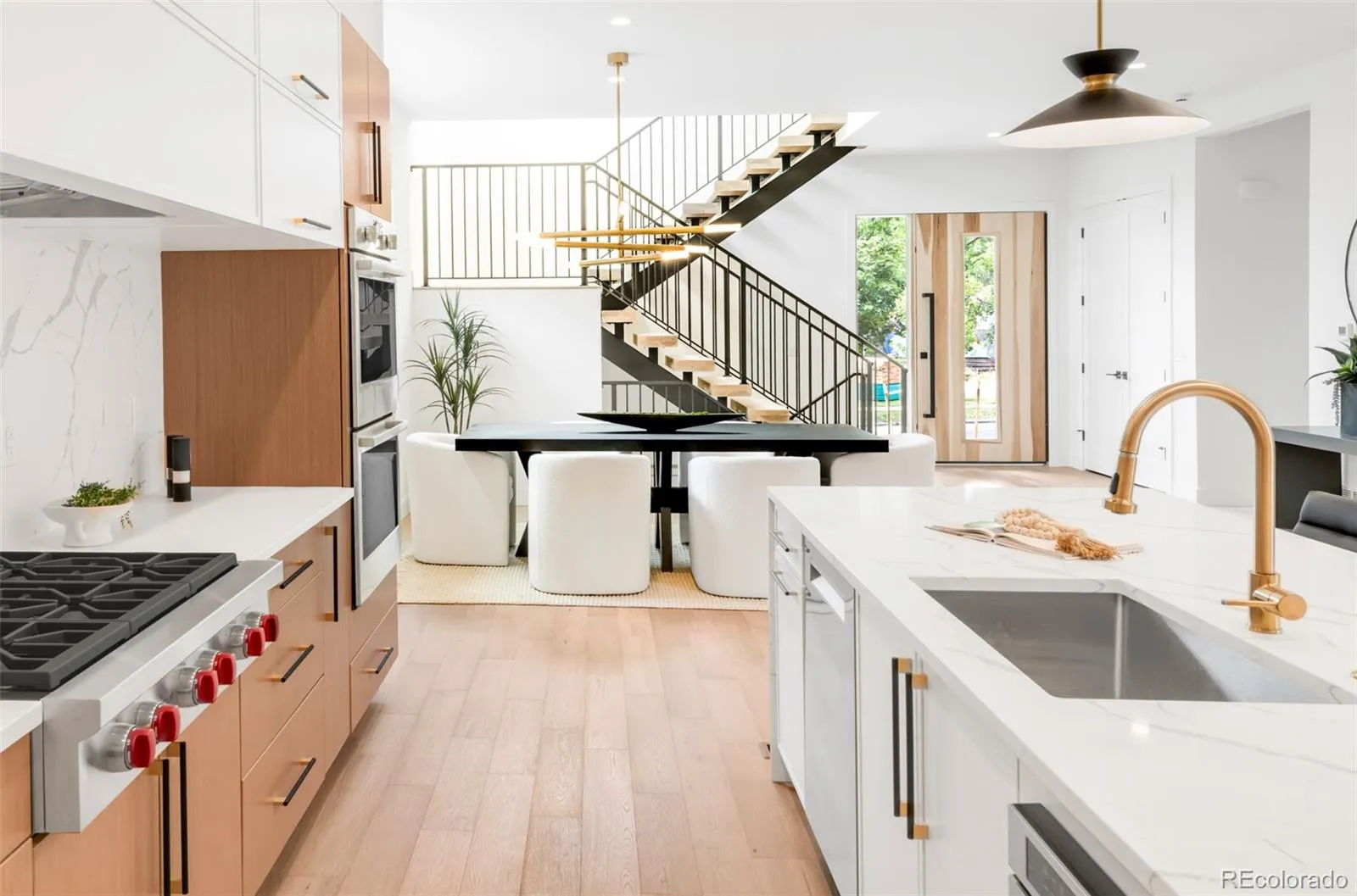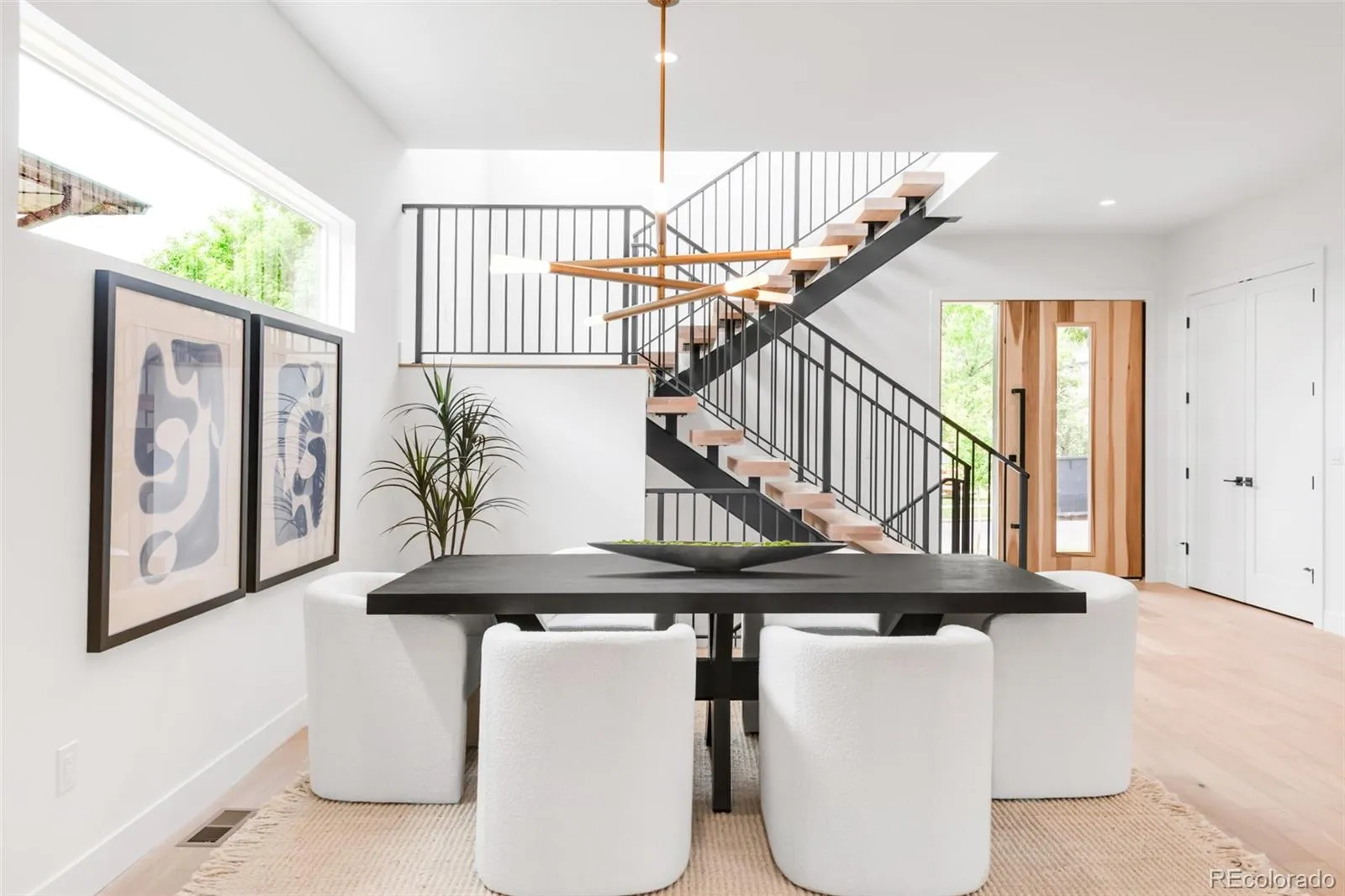 Prepare to be wowed! This stunning 4-bedroom, 5-bathroom home near East Wash Park is the epitome of modern elegance and thoughtful design. From the moment you step inside, you’re greeted by an open-concept layout drenched in natural light, with rich hardwood floors and high-end designer finishes that create a warm, inviting atmosphere. The spacious living area features a striking plaster fireplace that’s as much a conversation piece as it is a cozy focal point, while the chef’s kitchen is a dream come true. With a Wolf range, hidden paneled refrigeration, pantry, and an expansive island, it’s the perfect blend of beauty and functionality. The adjacent dining area, highlighted by a contemporary chandelier, makes every meal feel like a special occasion.
