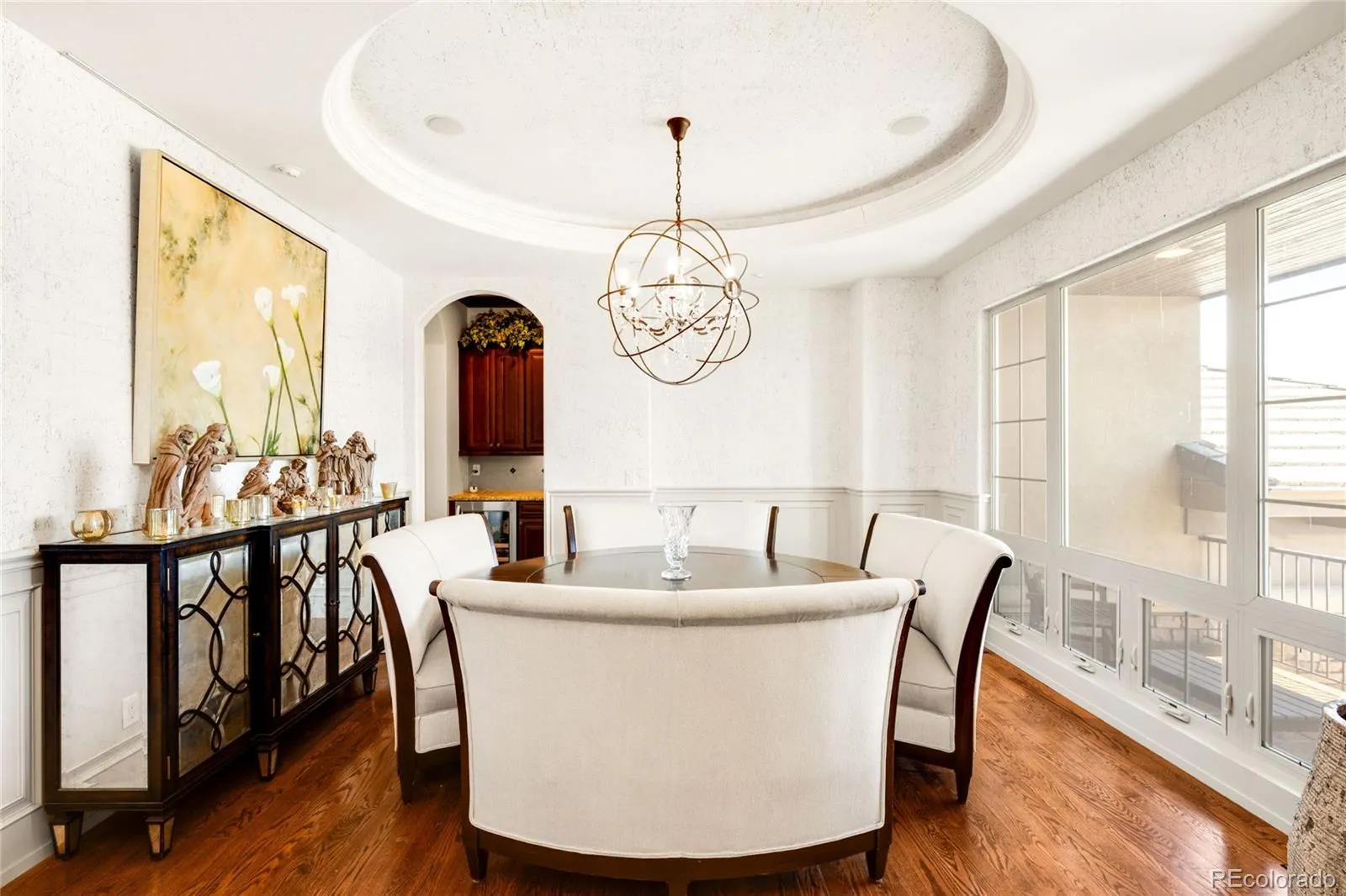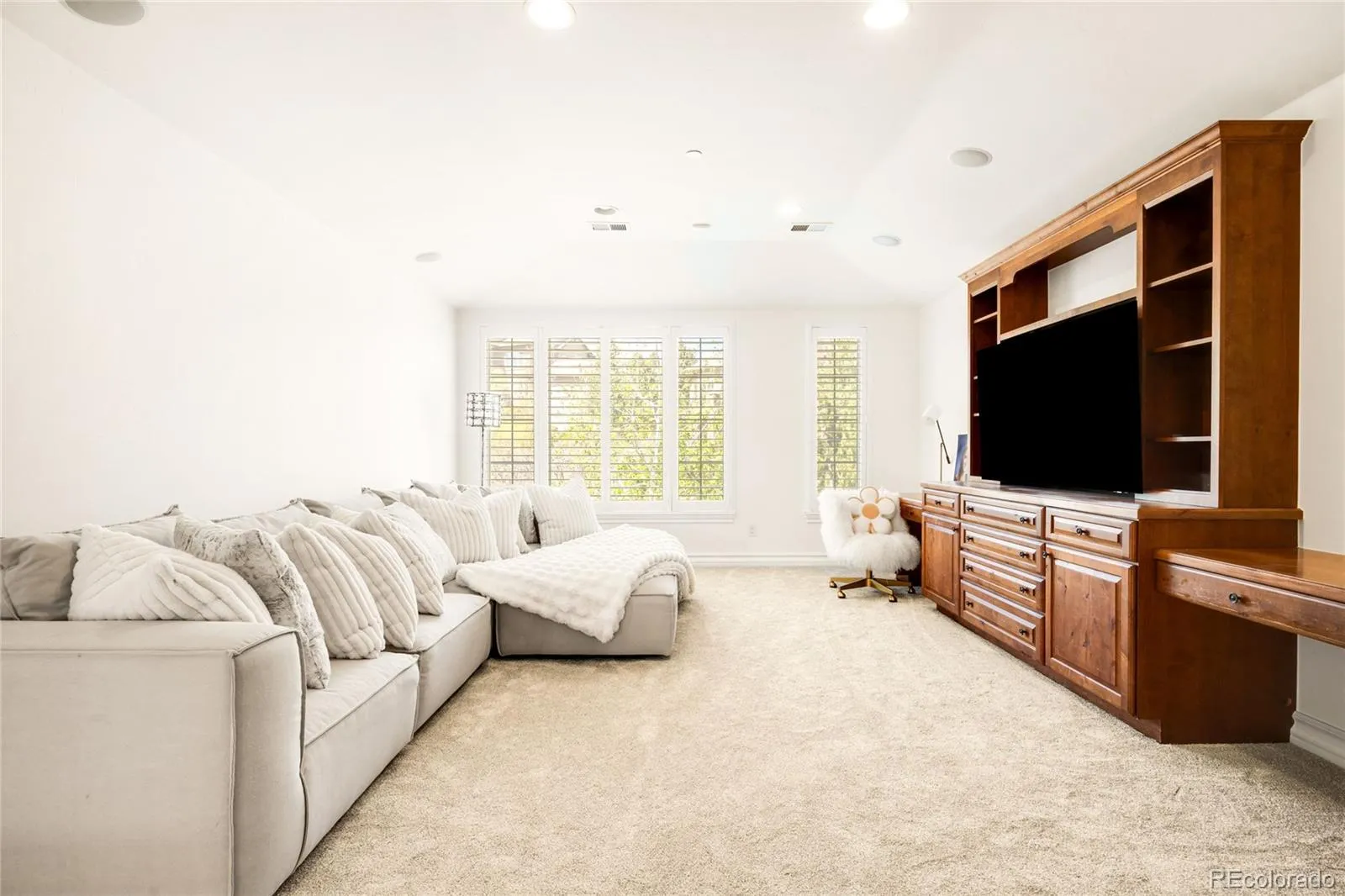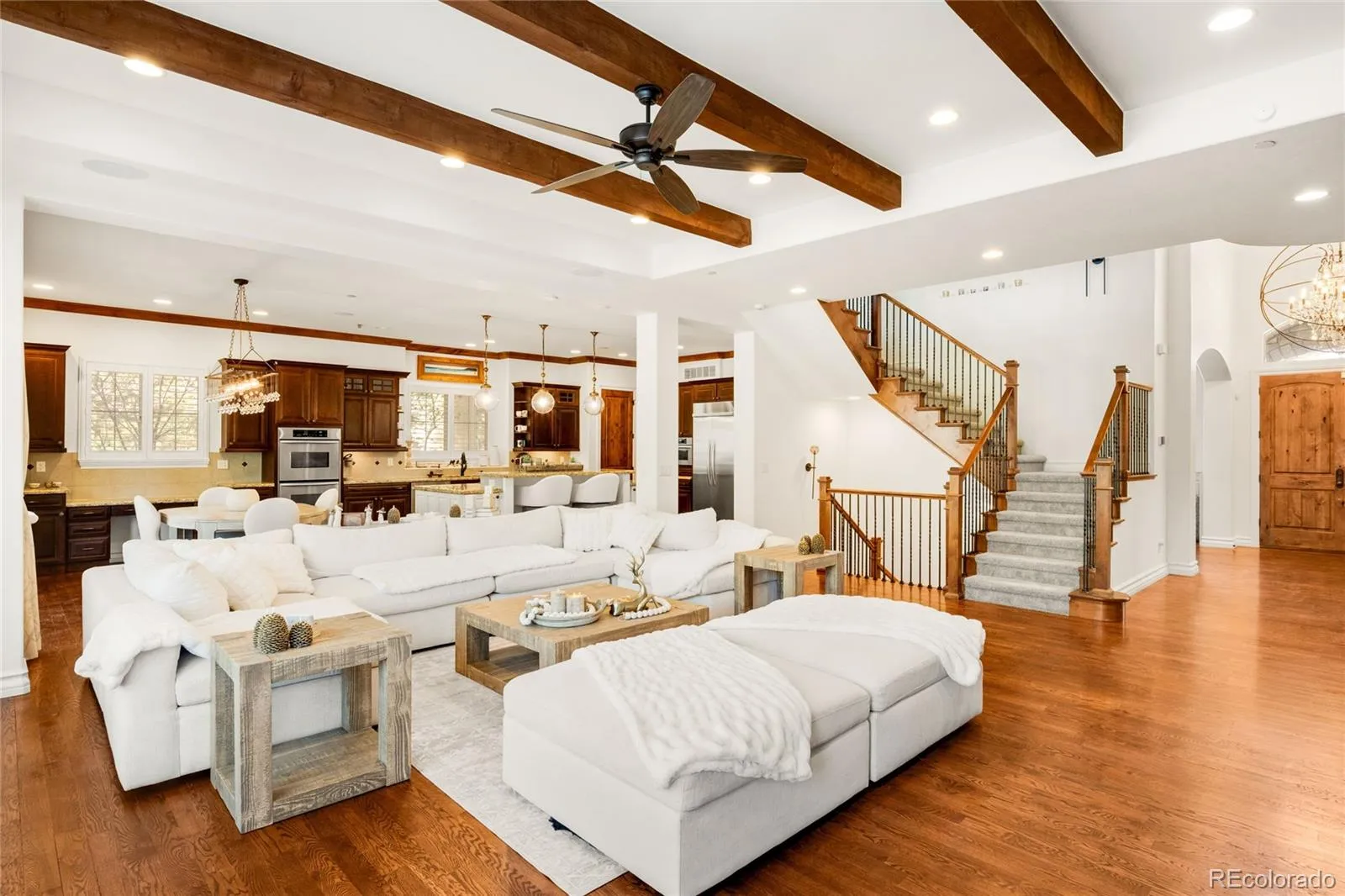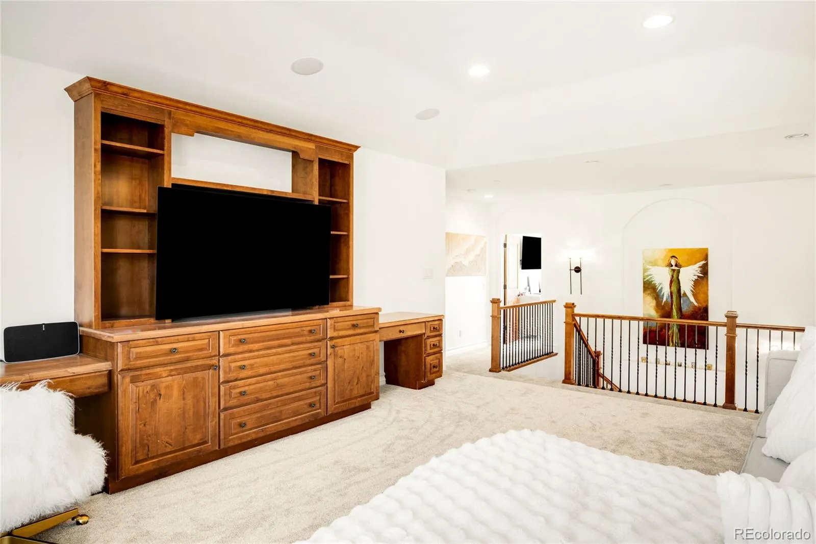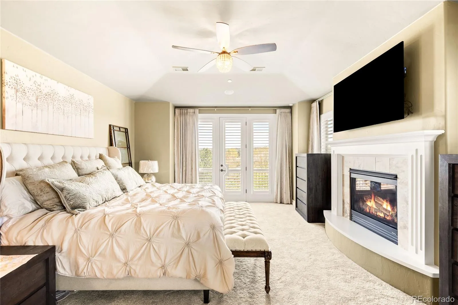 Privacy, scale, and thoughtful design — all set on an expansive 13,000+ square foot homesite backing to a serene greenbelt in a gated community. Inside, a showstopping two-story foyer welcomes residents into a functional floorplan beneath soaring ceilings. Rich wood floors, exposed beams, custom light fixtures, and a striking stone-surround fireplace anchor the main living space with warmth and sophistication. The heart of the home is a spacious kitchen designed for both everyday living and entertaining, featuring a large island, double ovens, a gas cooktop, and a butler’s pantry for seamless hosting. Just beyond, a sunlit formal dining room creates an elegant setting for gatherings, while a beautifully appointed office with extensive built-ins offers both function and style. A thoughtfully redesigned main-floor ensuite bedroom with private patio access provides flexibility for guests or multigenerational living. Upstairs, the primary suite serves as a private retreat, complete with its own balcony capturing sweeping mountain views. Two additional ensuite bedrooms and an open loft create a connected yet distinct upper level. The walk-out lower level expands the living space, offering a dedicated theater room, a stylish bar area, a light-filled recreation room or optional office, an additional ensuite bedroom, and a powder bath. The outdoor experience is equally as compelling as the interior — complete with a hot tub, fire pit, and tranquil natural views.