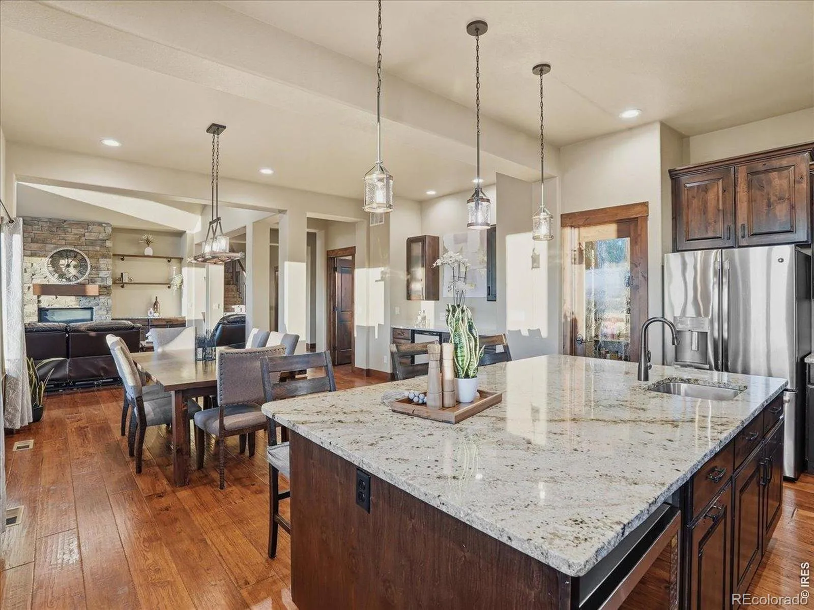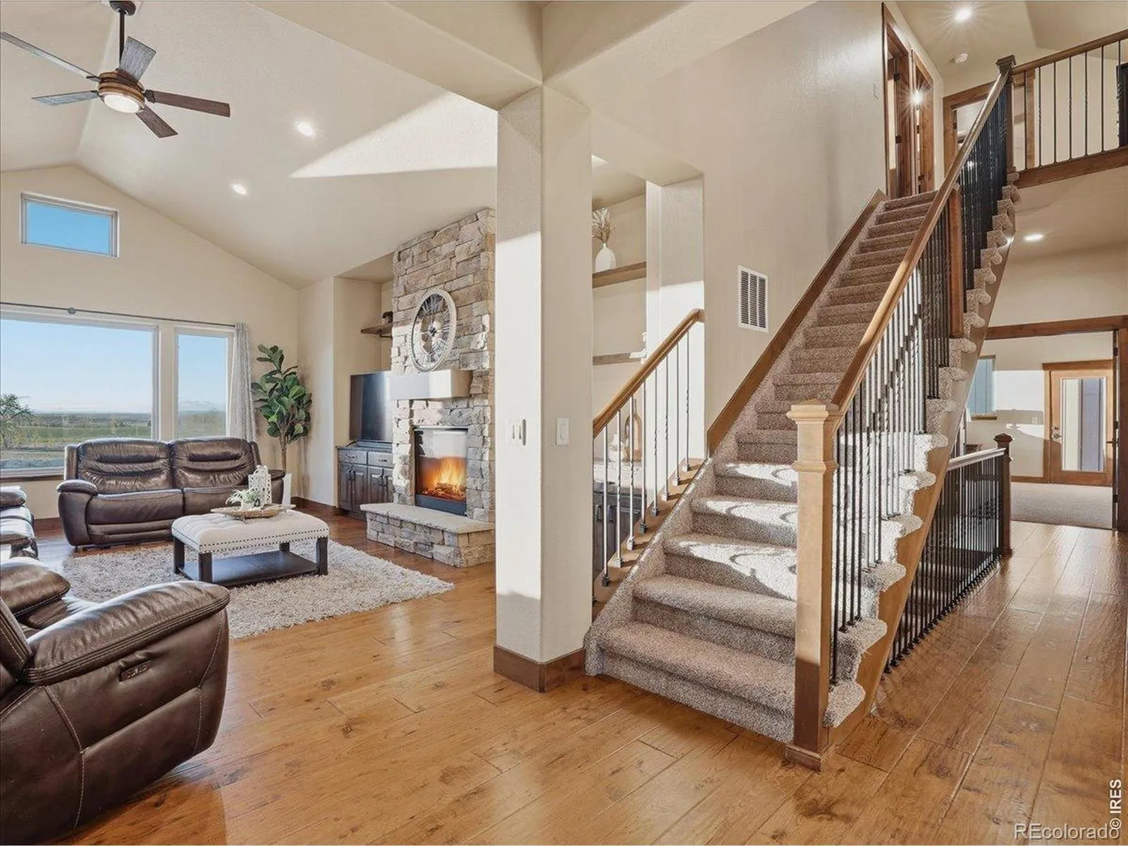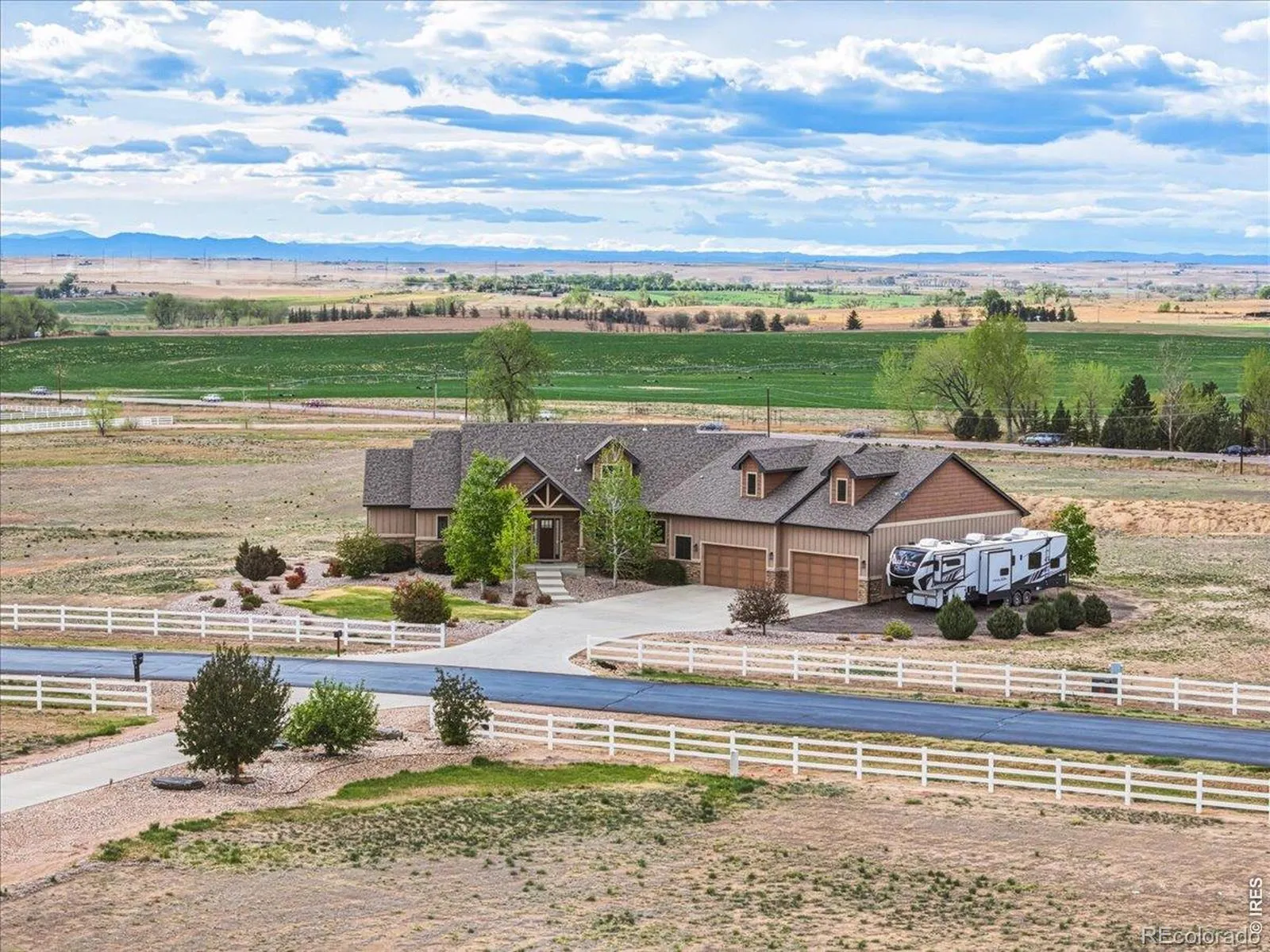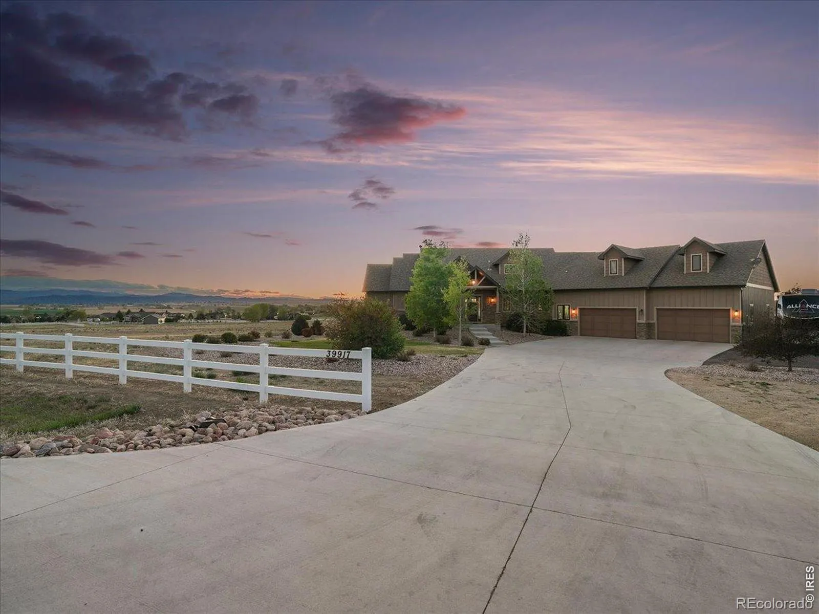 Belmont Farms – 5.66 acres – mountain views – walkout basement – 8-car garage – 6 baths – covered deck – hot tub- Set on 5.66 acres in Belmont Farms, 39917 Hilltop Circle pairs luxury finishes with open land, panoramic mountain views, and exceptional garage space. The setting is a standout, with the best views captured from the covered deck, lower patio, and from inside of the home, creating a true Colorado backdrop for daily living and outdoor entertaining. Inside blends luxury and comfort with a main-floor primary suite, dedicated study, open-concept kitchen, dining, and living spaces, plus an upper level with two additional bedrooms, full bathroom, and a loft. The kitchen is designed for both function and style with a large island, gorgeous slab countertops, custom cabinetry, gas cooktop, double wall ovens, pot filler, and picture windows that bring the landscape inside. Wood floors, solid wood doors, and a floor-to-ceiling stone fireplace add depth and character throughout the main level. The walkout basement expands the living space with two more bedrooms, a family room, rec room, kitchenette, sitting area, and substantial unfinished storage, offering flexibility for guests, hobbies, or multi-use living. Outdoor spaces are equally impressive, with a covered deck, expansive patio, included firepit, built-in grill, and hot tub, all positioned to enjoy the wide-open surroundings and Front Range views. One of the most distinctive features is the oversized 8-car garage with its own half bath, giving this property rare capacity for vehicles, recreational equipment, workshop use, or additional storage. Enjoy Luxury inside and acreage outside, with views from everywhere! You can also add an additional shop if you need more work space. Campers are allowed to park by the home. Bring your Toys!