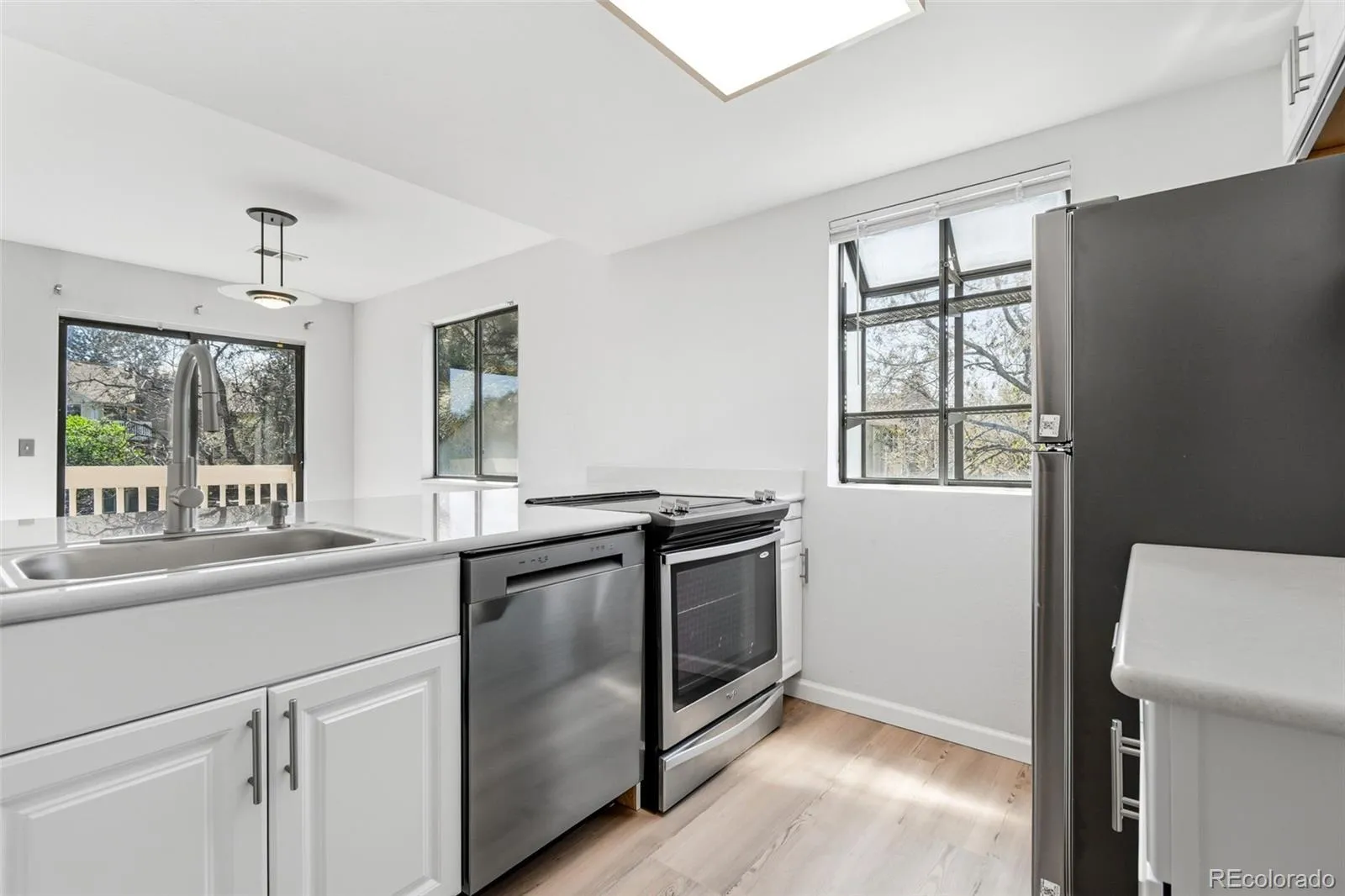 Beautifully Remodeled Top Floor Condo with Tons of Natural Light * Recent Updates Include New Kitchen Cabinetry, New Stainless Steel Appliances, New Countertops, New Stainless Steel Sink, New Disposal, New Light Fixtures and Ceiling Fans Throughout, New Bathroom Vanities, New Luxury Vinyl Flooring Throughout, and New Decking on the Balcony * This Move-in Ready Corner Unit Features an Open Floorplan with Lots of Windows, Light and Bright Kitchen with a Breakfast Bar, Open Living Room with Woodburning Fireplace, Dining Area with Access to the Balcony, a Spacious Primary Bedroom with an Ensuite Full Bath and a Walk-in Closet, 2nd Bedroom with Adjacent Full Bath, Full Size Washer and Dryer, and a Covered Carport * Community Amenities Include an Outdoor Pool, Clubhouse and Tennis Courts * Exceptional Location in the Cherry Creek School District and Only Minutes to LightRail, Cherry Creek Reservoir, Shopping and Easy Access to I-225! Don’t Miss This Incredible Home!