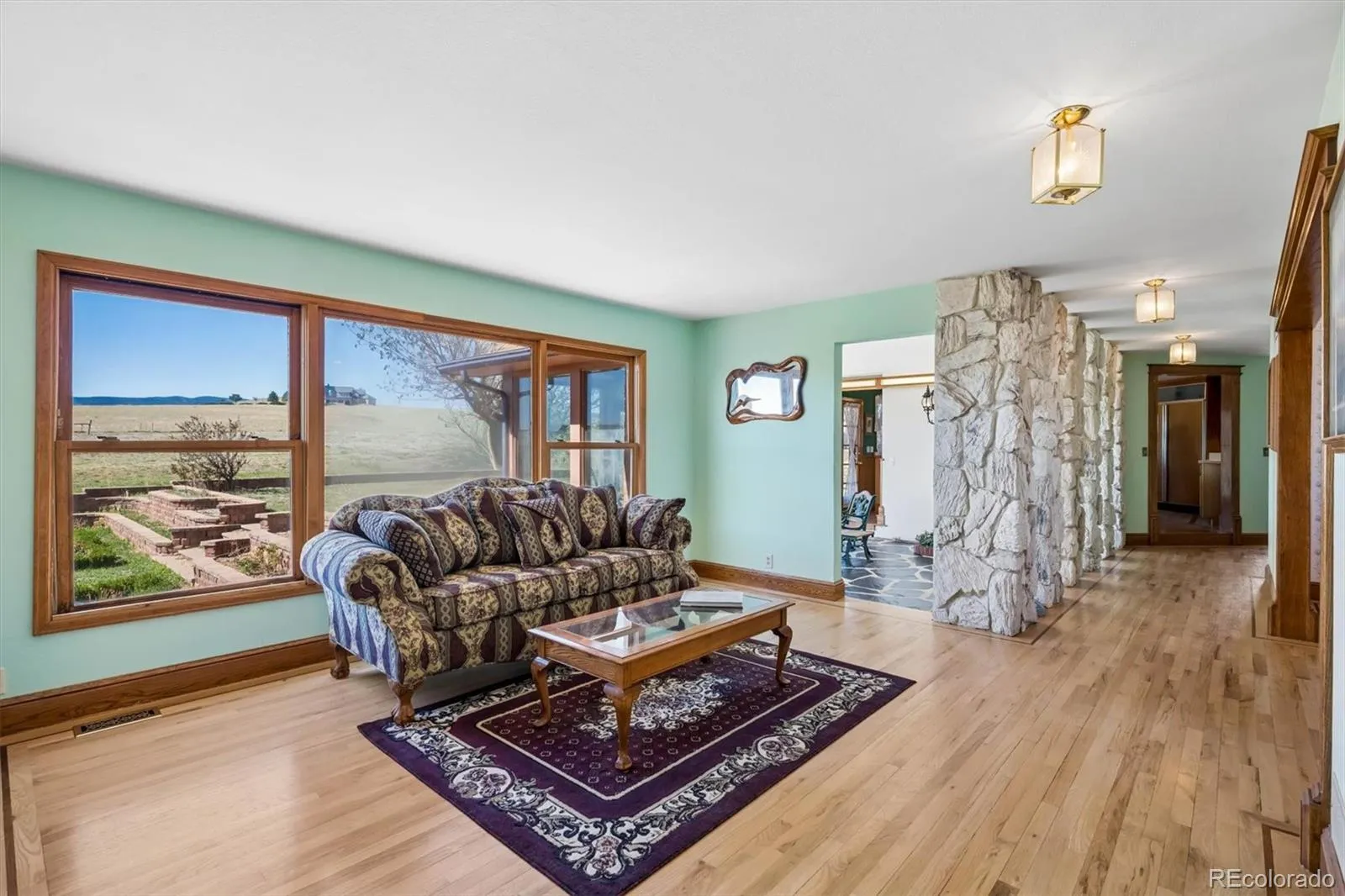 A rare opportunity in a quiet, sought-after community just minutes from Denver! Nestled in the charming enclave of Plum Valley Heights this fabulous 3-bed, 3-bath home with a dedicated office sits on 6 acres, offering breathtaking mountain views & a peaceful, rural lifestyle. Step inside to a spacious layout filled with potential. The expansive kitchen features abundant cabinetry & a large island, perfect for gatherings and everyday living. Hardwood floors flow through the generous family room, complete with a nook ready for a future wet bar, while the cozy living room is anchored by a classic wood-burning fireplace. The sun-drenched sunroom offers stunning views of the rose garden & brings the outdoors in year-round. The oversized primary suite is a true retreat, featuring a custom bath with dual vanities, a spacious walk-in closet & a private deck to take in the surrounding beauty. The main level includes a formal dining area, a versatile office (or potential fourth bedroom) & a convenient powder room. Upstairs 2 additional large bedrooms share a large Jack-and-Jill bath. The walk-out basement remains unfinished, providing a blank canvas for your vision & future expansion. Recent updates include a Class 4 impact-resistant roof (Oct 2023), new carpet (Oct 2025), updated furnace & water heater (Jan 2025) & septic tank (Dec 2025). While the home offers solid quality, seller understands it presents an excellent opportunity for buyers to add value through updates & complete window replacement. This has been reflected in the price. Enjoy direct access to nearby bridal paths & a neighborhood riding arena, with zoning that allows for horses & small livestock. The home is connected to public water. In addition there is a private well that can be used for irrigation & livestock. With easy access to C-470 & just minutes from Chatfield State Park, this property combines convenience, space & the chance to create your dream Colorado lifestyle.