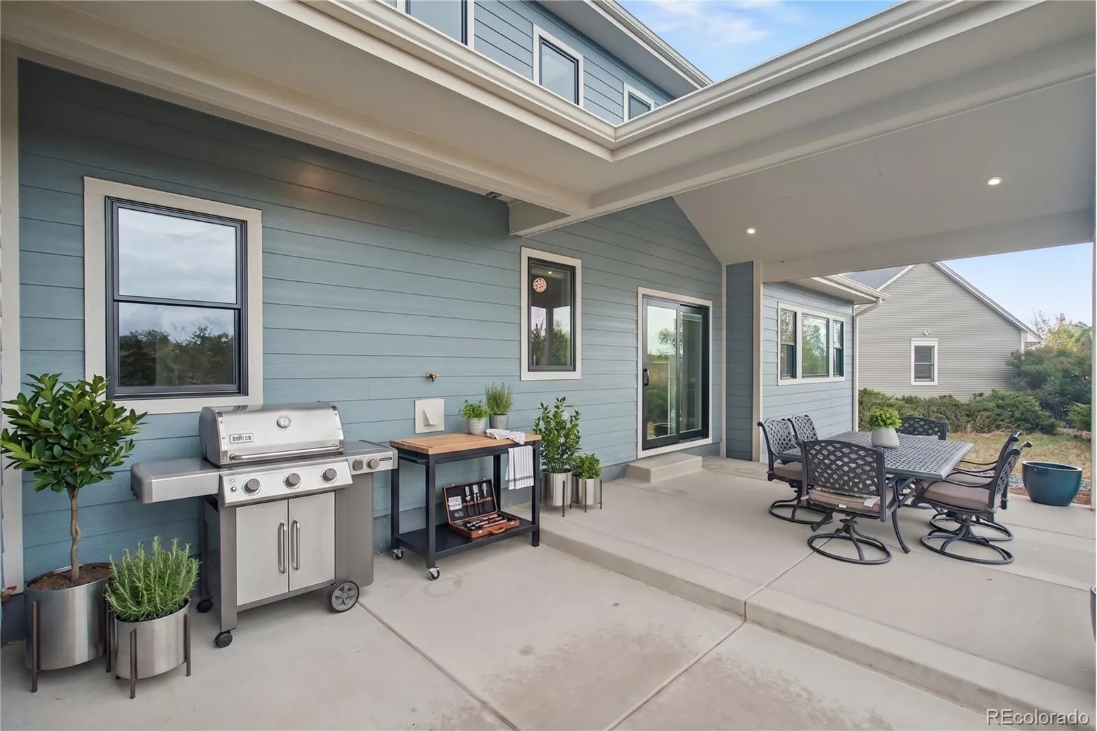 The backyard is designed for easy upkeep, giving you more time to relax. Fully equipped with a covered patio, wiring set up for outdoor speakers, and a gas hook up for grilling, this yard is perfect for entertaining.