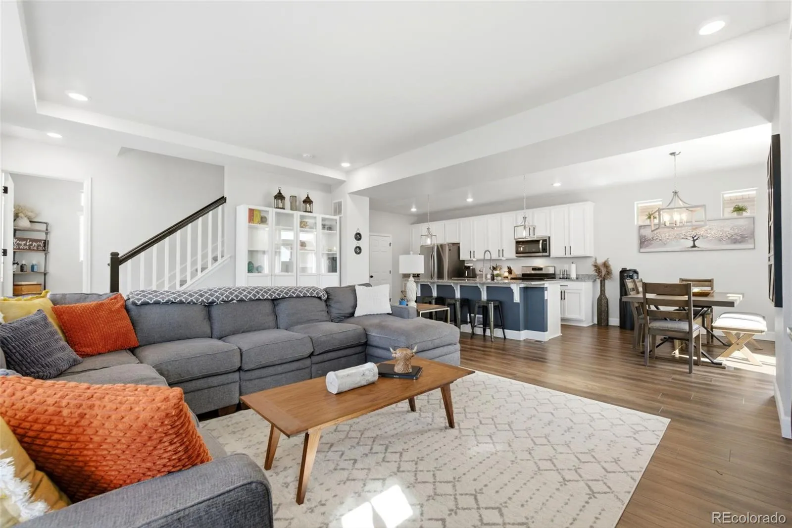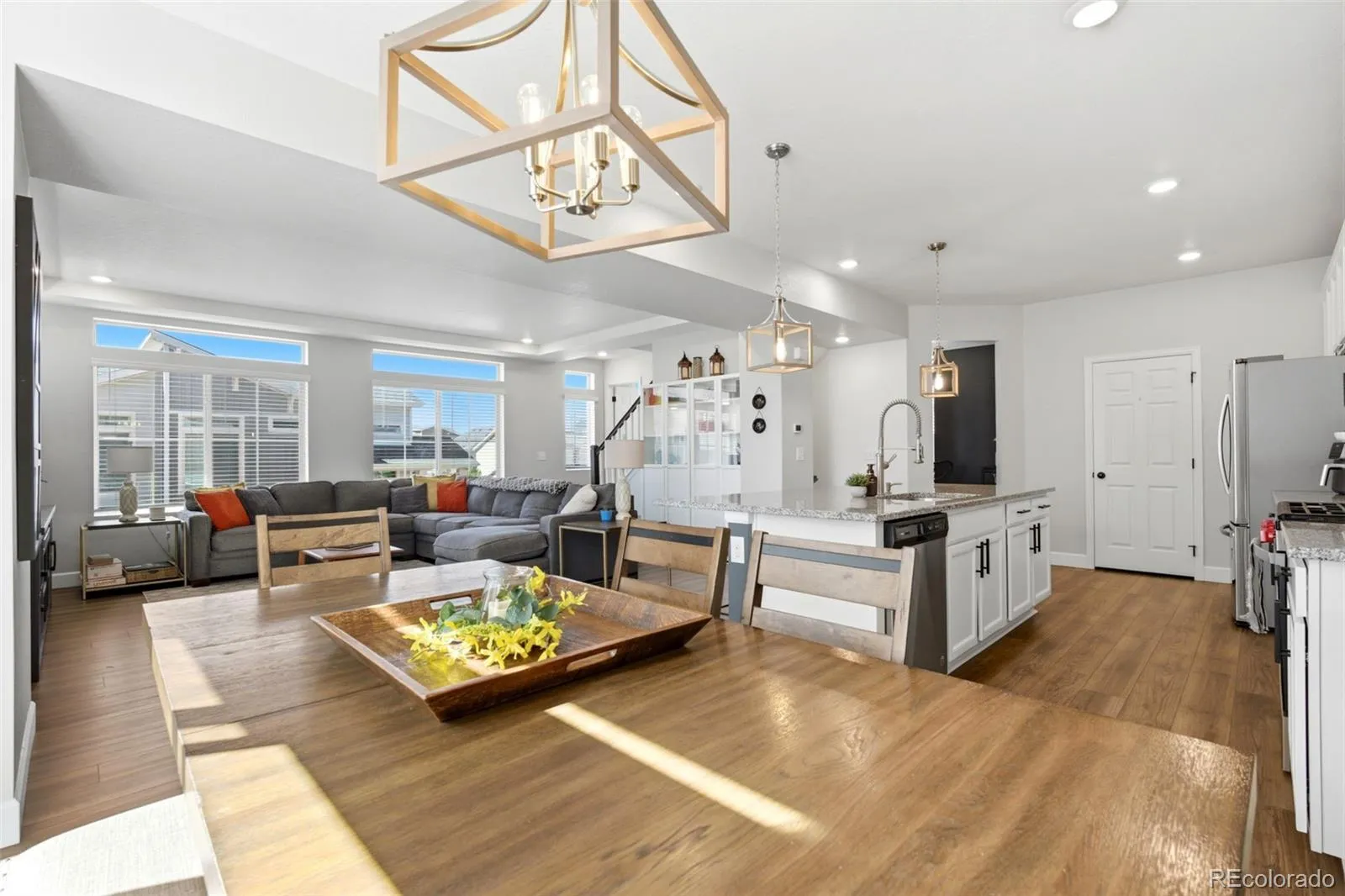 This 2,200 square foot home in Reunion Colorado offers a comfortable and functional layout with three bedrooms, three bathrooms, and a spacious three car garage. The main floor features an open concept design that connects the kitchen, dining, and living areas, creating a bright and inviting space for everyday living and entertaining.