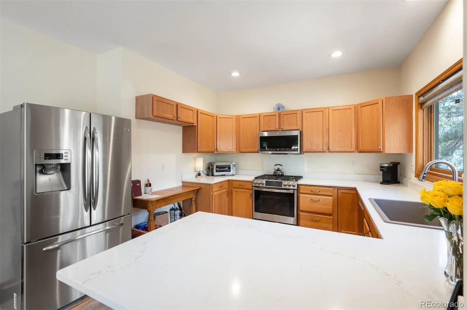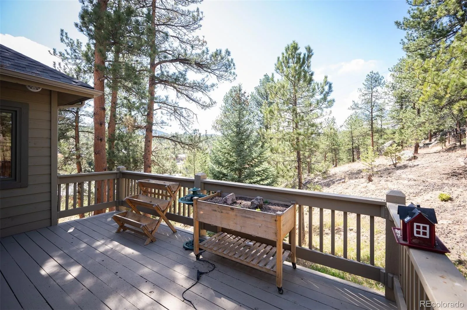 Perfect location near the heart of Downtown Evergreen. Within walking distance of Evergreen Lake, Jefferson County Library and Downtown! Perfect location for someone looking to experience mountain living yet being close to civilization! Fantastic location to enjoy a stroll to downtown Evergreen’s charming shops and restaurants or the local library, ride your bike to 3 Sisters Park or take a nice walk around Evergreen Lake. This ranch style home allows for easy access entry and truly the opportunity for main floor living with an open floor plan and primary suite. The primary suite has its own private deck that faces west for abundant sunlight and is the perfect location for bird watching. Daily wildlife sightings in your own back yard. Imagine watching the elk and deer roam daily through your private yard. The vaulted ceilings create an open atmosphere. The lower level boosts high ceilings with an amazing recreation room that has the opportunity for many uses. Additional two bedrooms and a full bath in the lower level. Oversized unfinished storage room 15′ x 11′ could be finished and turned into a 4th bedroom if desired. The lower level offers walkout access into the backyard. Roof was replaced in 2018 along with the furnace and central AC. Hardwood flooring throughout the main floor. The kitchen offers stainless steel appliances and granite counters. Fabulous dog run in the side yard for your furry family members. If you are looking for an easy access commute to I-70 and a turn key ready home, opportunity awaits with this fabulous home! Welcome Home!