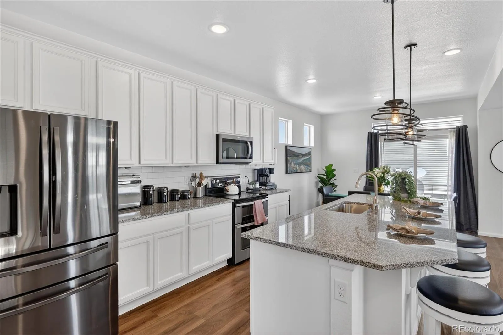 Not all homes in this neighborhood are created equal—and this one proves it. Perfectly positioned on a rare, standout lot, this home sides to a walking path and backs to a pocket of larger homesites, creating a sense of openness and breathing room you simply won’t find in most nearby properties. The result? More space between neighbors, and an abundance of natural light pouring in from every angle thanks to its unique orientation and extra windows. Inside, the layout is as versatile as it is inviting. The entry-level flex space adapts to your lifestyle—ideal for a home gym, office, second living area, or playroom. Upstairs, the heart of the home shines with a bright, open kitchen featuring stainless steel appliances, a generous island with additional seating plus a spacious eat-in area that flows seamlessly to a private balcony. And then… the pantries. Two walk-in pantries—one oversized with custom shelving, offering incredible storage and even the potential for a tucked-away office or homework nook. The living room extends effortlessly onto an upgraded wraparound deck spanning both the front and side of the home, perfectly designed to capture both sunrise and sunset with its east-west exposure—ideal for morning coffee or unwinding in the evening with a view. Upstairs, the primary suite is a peaceful, spacious retreat with mountain views, a private bath featuring a walk-in shower, and a walk-in closet. The two additional bedrooms share a well-appointed guest bath. The expanded garage provides room for a workshop, gear, or extra storage, while the 3 car garage PLUS extended driveway makes guest parking easy. If you’re searching in Reunion, this is the one that stands apart—offering a rare combination of space, light, and lot positioning that’s hard to come by!