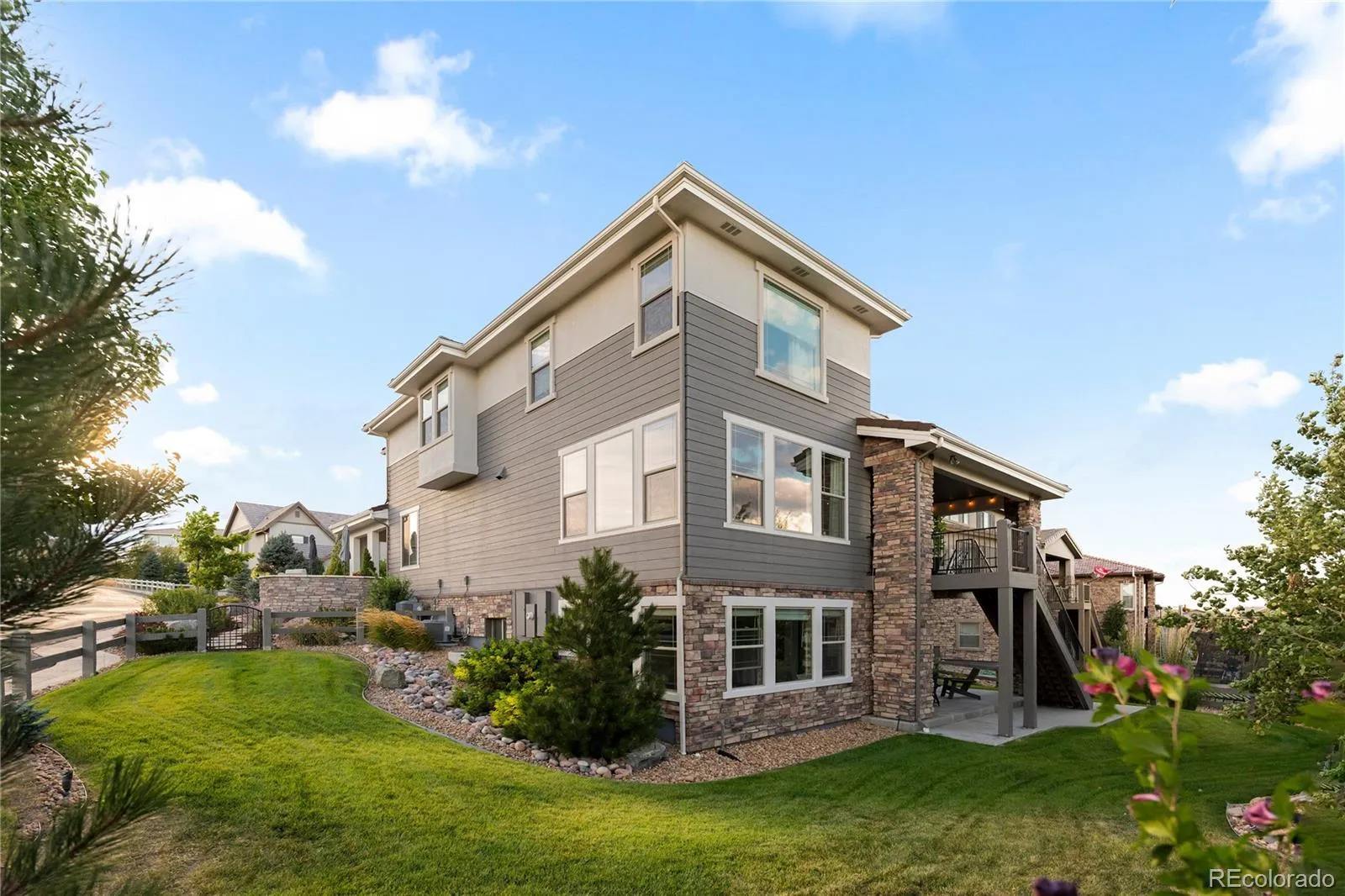An extraordinary location meets unforgettable design. Prepare to fall in love from the moment you arrive. Set on a premium corner lot in the highly sought-after Backcountry community, this thoughtfully reimagined, designer-refinished home blends luxury, comfort, and Colorado’s natural beauty. Soaring vaulted ceilings & a dramatic wall of windows flood the home w/ natural light, highlighting the extended hardwood flooring & elevated finishes throughout. The mn level offers exceptional versatility w/ a bedroom or private office, a spacious mudroom complete w/storage & utility sink & a formal dining room perfectly positioned to capture open space views. At the heart of the home, the chef’s kitchen is both stunning & functional, featuring a massive island, natural quartzite countertops, high-end stainless steel appliances, designer lighting throughout & nearly new carpet. A sunlit dining space framed by expansive windows offers an ideal setting for casual dining, blending indoor comfort with the beauty of the surrounding landscape. Upstairs, a flexible loft offers the ideal retreat, playroom, or workspace, while each bedroom enjoys the privacy and convenience of its own en suite bathroom. The primary suite is a true sanctuary, complete w/ a spa-inspired bath featuring dual vanities, a standalone soaking tub & two spacious closets w/ built-in organizers, complemented by breathtaking mountain & open space views. The basement is a full w/o with high ceilings, offering abundant natural light and a rare opportunity for the next owner to create a custom finish tailored to their lifestyle. Outdoor living is equally impressive. A covered deck captures views of the iconic Highlands Ranch Mansion, while the spectacular front patio offers a front-row seat to peaceful, dedicated open space, perfect for relaxing or entertaining year-round. The exterior has been recently painted in a refined designer-selected palette, further enhancing the home’s curb appeal. #bestofbackcountry