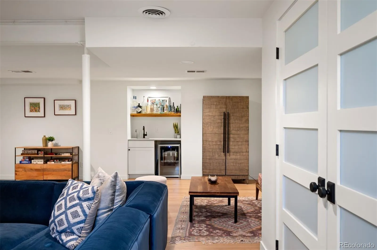 Instant Ambiance in this sophisticated and fully renovated home – with high quality contemporary finishes and huge yard for all your family or entertaining. Enter the light filled Great Room with fireplace, large kitchen island with bar seating, dining room and living room with beamed vaulted ceilings is excellent for loving the life you live. The gourmet kitchen with upgraded appliances including gas range, custom hood, stainless steel refrigerator, dishwasher, and microwave all overlooking the living room. Follow the flow to the main floor primary bedroom with ensuite, two more bedrooms and a full bathroom. The basement has another 2 bedrooms and bath with a large family room with big screen TV and loads of storage. The basement also has a bar, work out room, surround sound, large laundry room, and walk in wine cellar for 300 bottles. Enjoy your summer evenings on the large patio and backyard that has a privacy fence and grass for those yard games everyone loves. For the music lovers there is a multi-level sounds system, newer roof, newer mechanical items, and newer windows to keep everyone cozy. Every detail was attended to in this home, you will love to see it. Schedule your showing today.