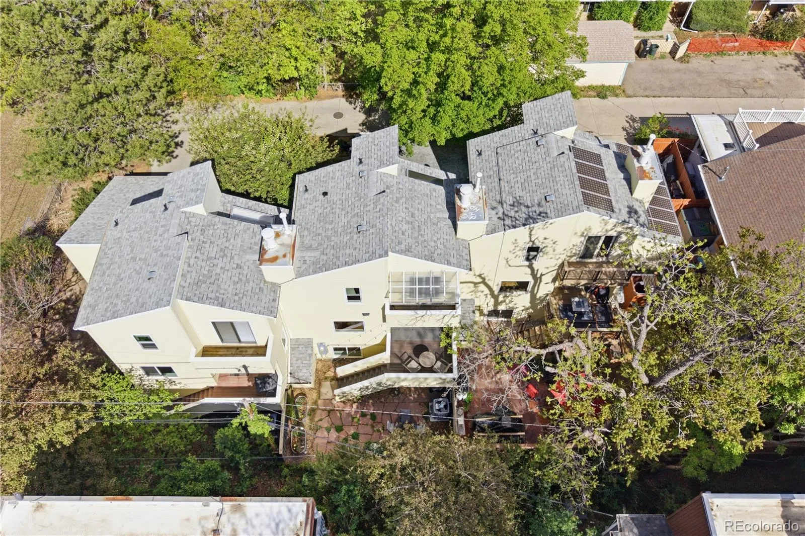 Rarely available and completely updated, this charming North Boulder townhome offers the perfect blend of modern comfort and an unbeatable location. Tucked quietly behind a century-old farmhouse and surrounded by mature trees, the setting feels peaceful and private while still being just a half block from a grocery store, local shops, a vet, and one of Boulder’s favorite coffee spots. Downtown Boulder is only a short ~10-minute walk away, making this home ideal for those who value both convenience and tranquility. Inside, a warm and inviting living room features a stunning floor-to-ceiling stone fireplace, creating a cozy focal point for everyday living. A door off the living room opens to one of two Trex decks. The fully remodeled kitchen is modern and well-appointed, thoughtfully designed for both functionality and style. The unique multi-level layout offers great separation of space, with a private primary suite occupying its own level. From here, enjoy year-round views of the Flatirons and seasonal views of Mount Sanitas. Two additional bedrooms are located on the lower level, along with a laundry area, providing flexibility for guests, work-from-home space, or hobbies. Outside, a low-maintenance backyard or garden space offers just enough room for relaxing or entertaining without the upkeep. The home sits in a small enclave of just three townhomes, originally built in 1984, with no HOA and minimal covenants—an increasingly rare find in Boulder. Extensive upgrades have been completed over the past several years, including new windows and doors, a fully remodeled kitchen and bathrooms, updated flooring throughout, added air conditioning, enhanced insulation, and thoughtful exterior improvements. The home is also equipped for a 40-amp EV charger, adding modern convenience. With friendly neighbors, incredible walkability, and a truly special setting, this is a rare opportunity to own a cozy, character-filled home in one of Boulder’s most desirable locations.