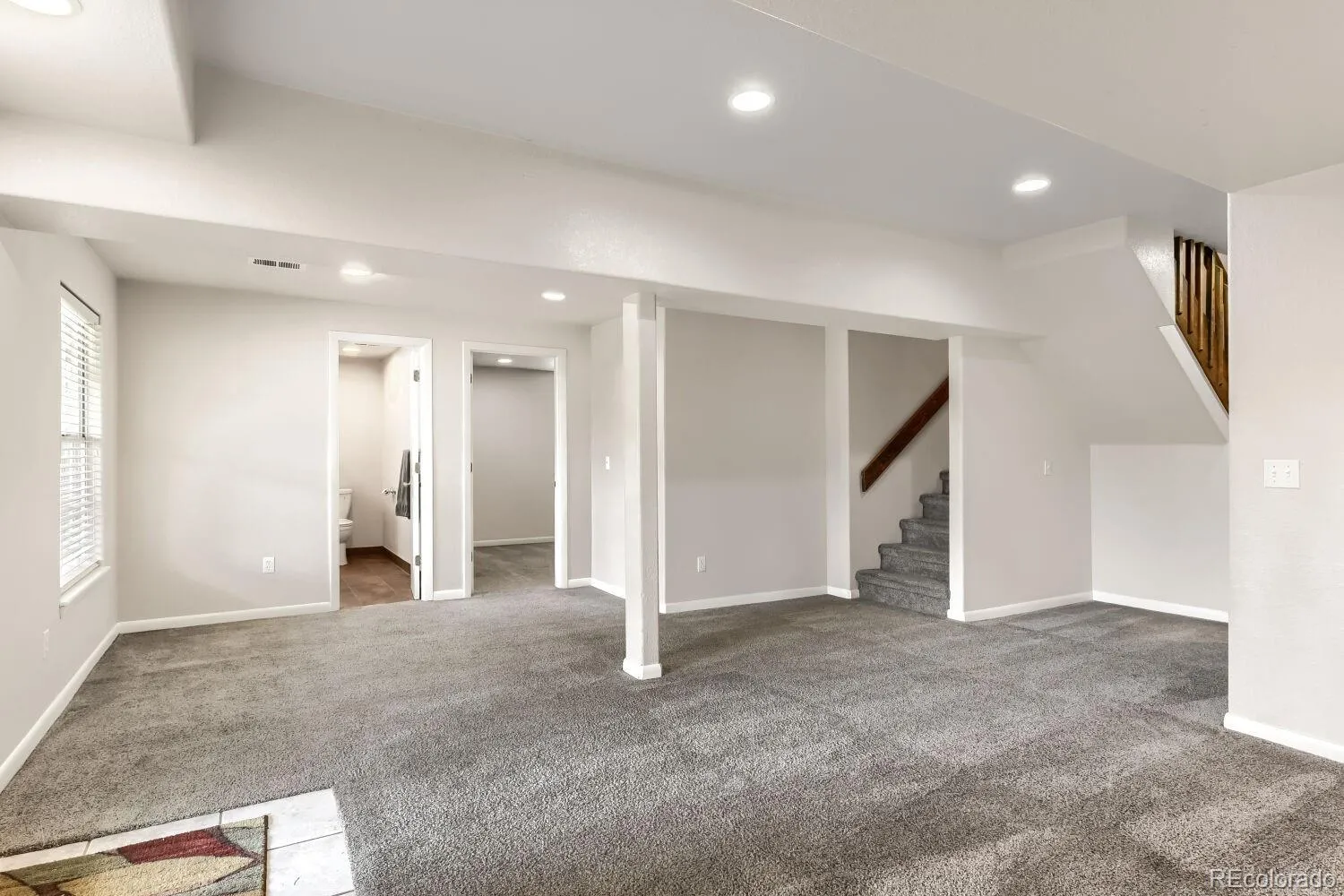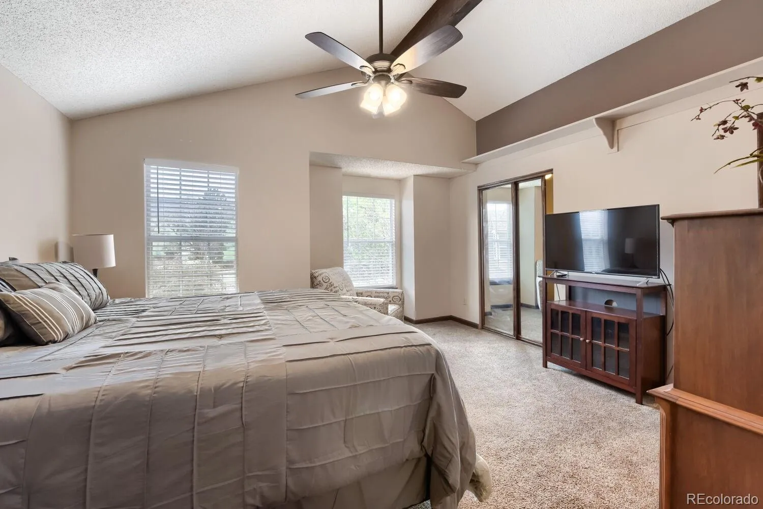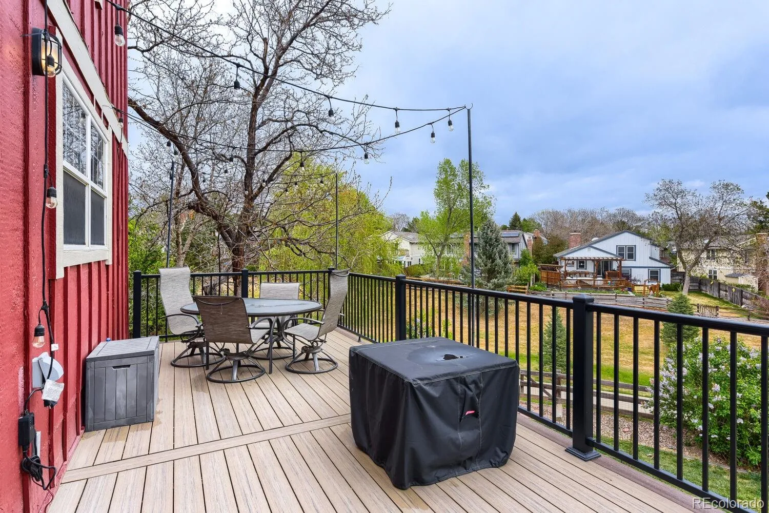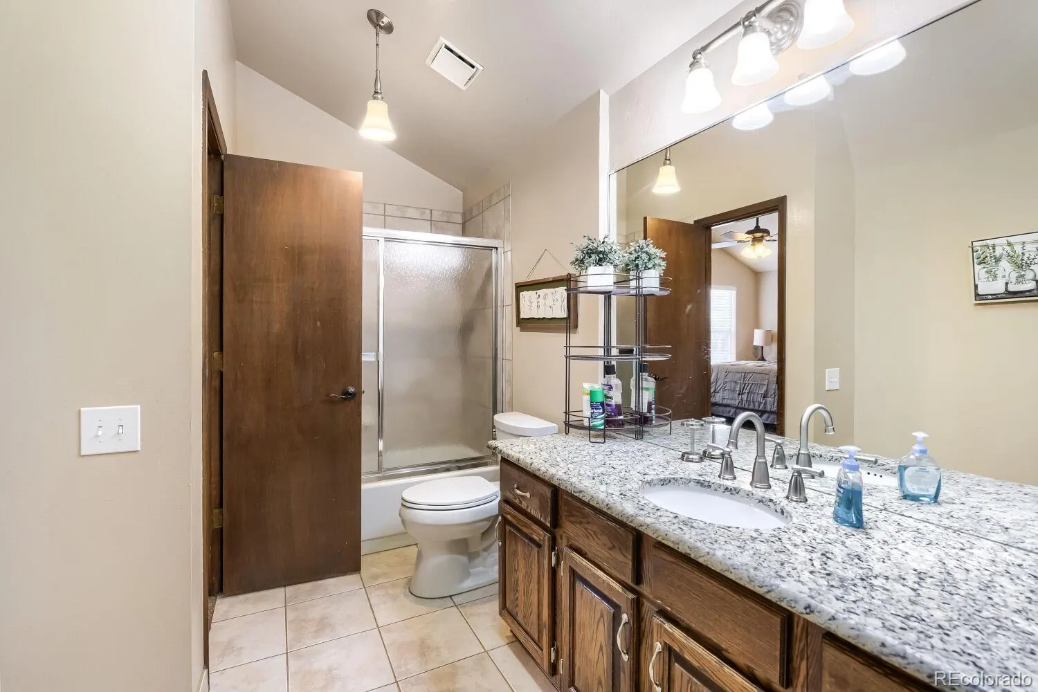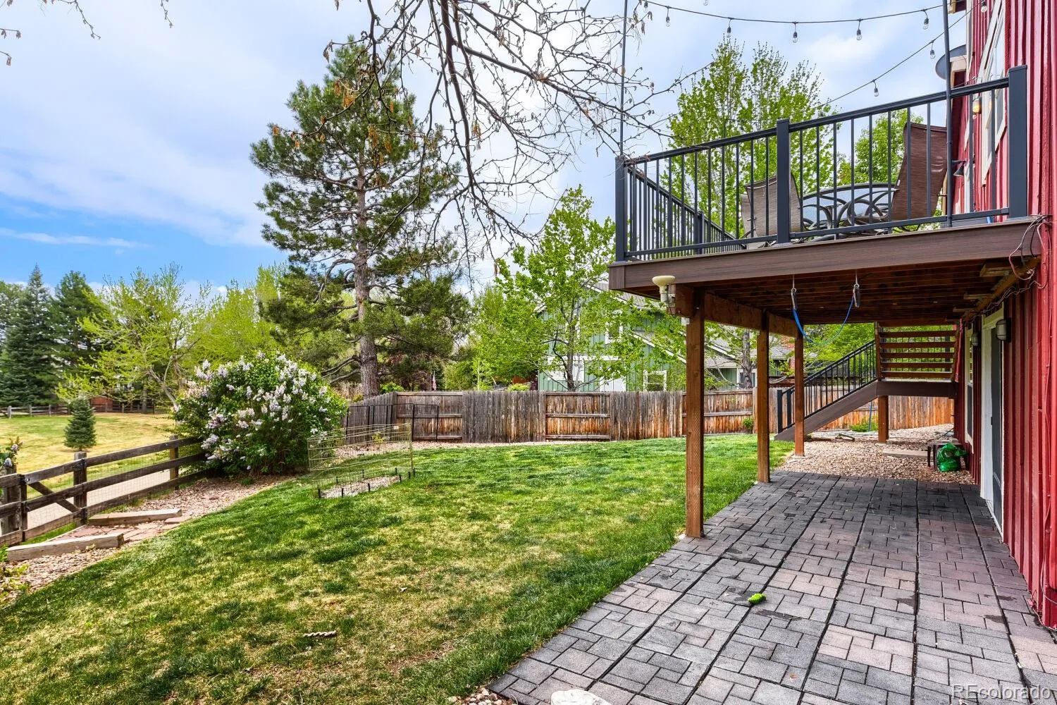 A rare main-level bedroom provides direct access to a beautifully updated full bath with newer vanity, granite countertops, tile flooring, and updated plumbing and electrical fixtures. Convenient access to the attached two car garage with newer garage doors and openers completes the main level. Step out from the kitchen onto the newer walk-out deck and enjoy sweeping views of the greenbelt. Upstairs the spacious primary suite features newer carpeting, a ceiling fan, and an updated ensuite bath with newer vanity, granite countertops, updated lighting plumbing fixtures, enclosed shower, soaking tub, and tile flooring. Two additional bedrooms offer newer carpeting and ceiling fans. A updated full bath is shared by both bedrooms. A second level laundry area is available. The finished walk-out basement is ideal for multigenerational living or guests, featuring a mother-in-law suite with a fifth bedroom, three quarter bath, full kitchenette with refrigerator, oven, dishwasher, and microwave, plus washer, dryer, newer windows, entry door, and great storage. Additional Highlights newer GFA, AC, Large backyard, sprinkler system, shed, easy access to schools, shopping, tennis & Pools, Great Ken Caryl amendities!