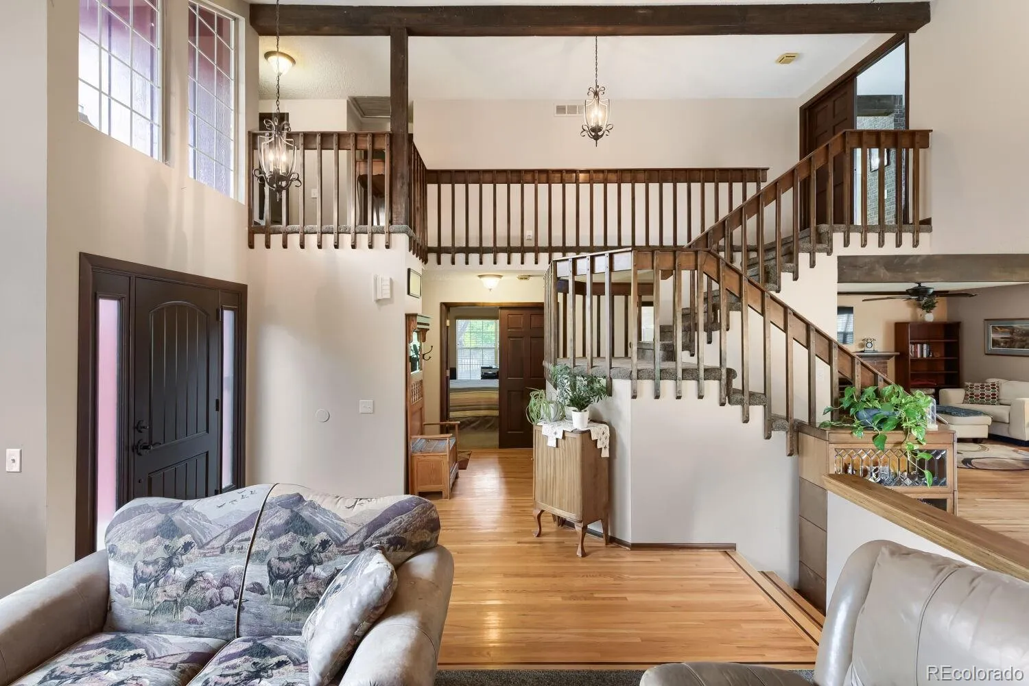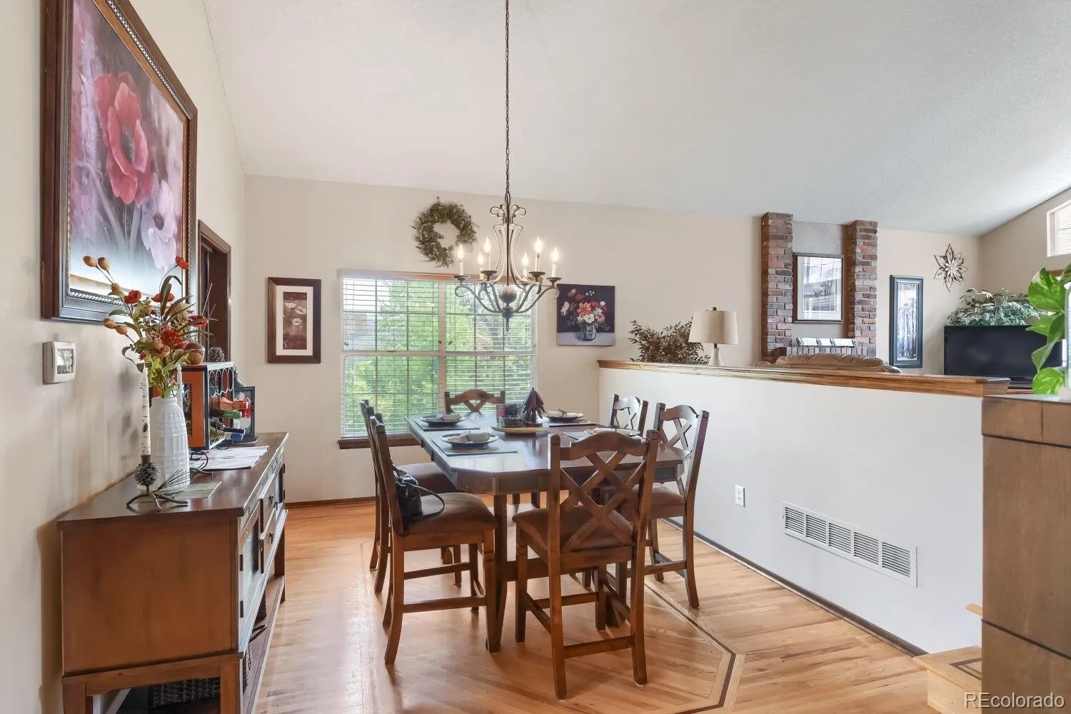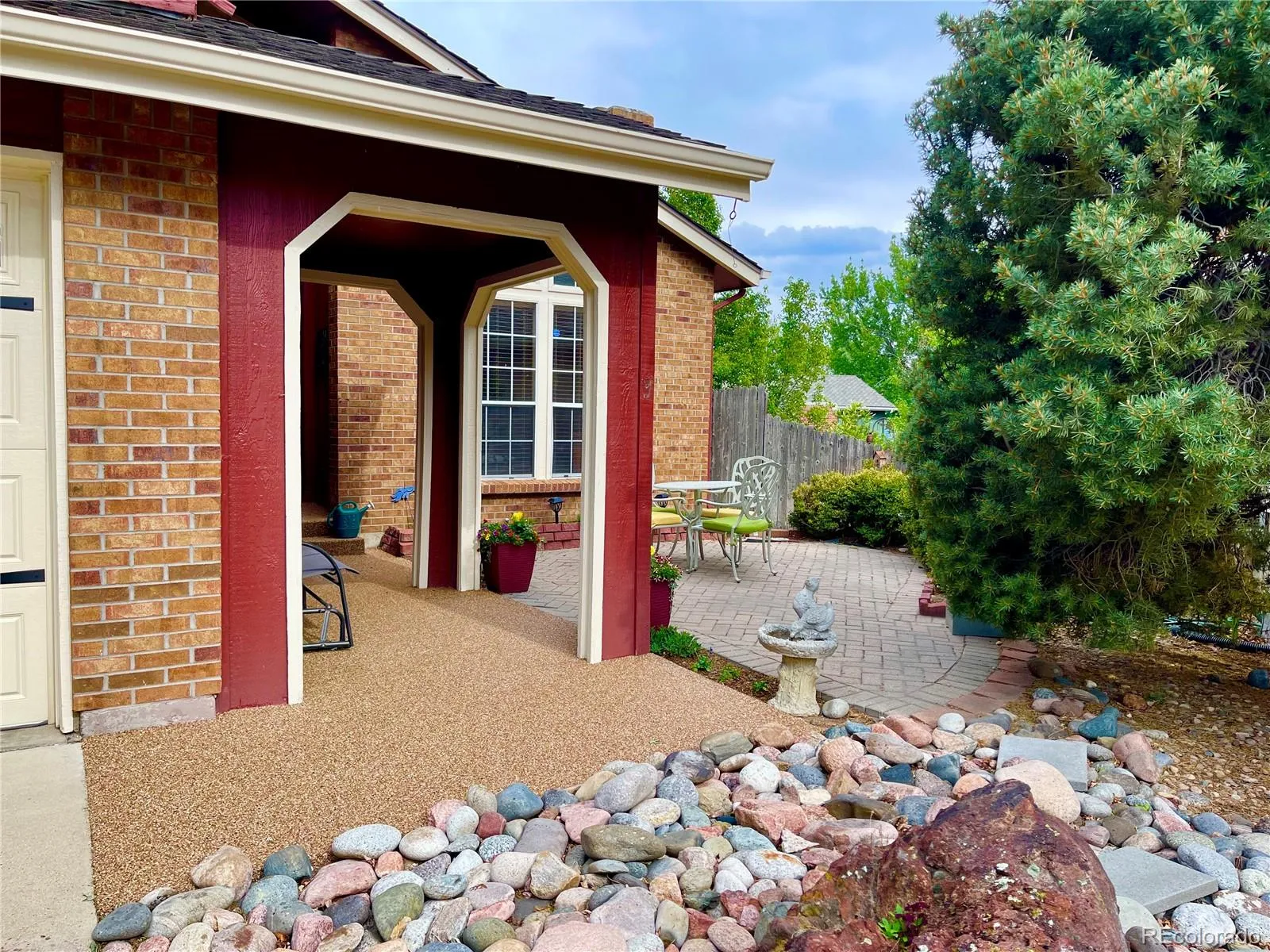 Welcome to this gorgeous, light-filled two-story home located on a quiet cut-de-sac in the desirable Ken Caryl Ranch community of Cimarron. Backing to a lush greenbelt with a walking Path and breathtaking views , this property offers privacy, scenery, and exceptional indoor-outdoor living.The inviting entryway and open dining area features gleaming hardwood floors and flow into the front living room with a cozy wood burning fireplace and newer carpeting. The updated kitchen boasts refinished cabinetry, granite countertops, hardwood floors, and newer whirlpool appliances including refrigerator, self-cleaning oven, microwave, and dishwasher, plus additional cabinetry for extra storage. The adjacent family room includes a second gas-burning fireplace and ceiling fan.