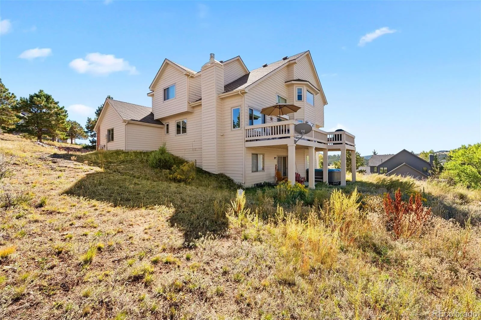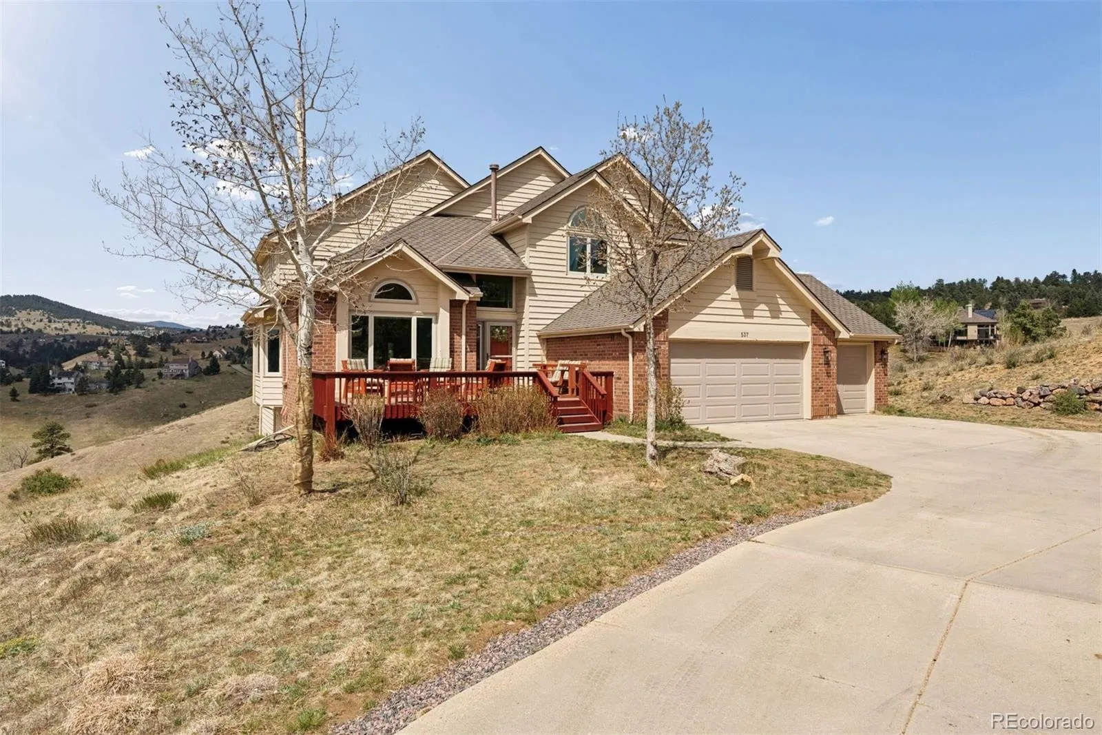 Welcome to scenic Lookout Mountain! This custom-built home, loved and occupied by the original owners, is situated on a rolling 1.5-acre lot in highly desired Paradise Hills. This 2-story residence with a walkout lower level offers 3 bedrooms, 4 bathrooms, and 3,500+ finished square feet of thoughtful living space. A brand-new Trex front deck welcomes you into the inviting entryway The main level features a front sitting area, dining room, spacious living room with gas fireplace, office, ¾ bathroom, and laundry room. The updated kitchen features stainless steel appliances, granite countertops, and a walk-in pantry. Newly refinished hardwood flooring and new carpeting offer fresh, move-in-ready appeal. Ascend the grand staircase to find 2 generously sized guest bedrooms sharing a Jack & Jill full bathroom. The primary suite features vaulted ceilings, west-facing views, an en suite full bathroom, and large walk-in closet. The walkout lower level with a fourth bathroom offers incredible versatility – ideal for guest quarters, additional entertaining space, a home gym, or recreation area. The spacious 3-car garage offers ample space to store your vehicles and Colorado toys. Enjoy outdoor living on the main-level back deck and lower concrete patio, both backing to open space.. This peaceful location offers splendid privacy and tranquility, endless opportunities to view wildlife, and access to miles of hiking and bike trails – all just minutes from I70. Only 25 minutes from Denver and 60 minutes from world-class mountain resorts, this home embodies the best of foothills living!