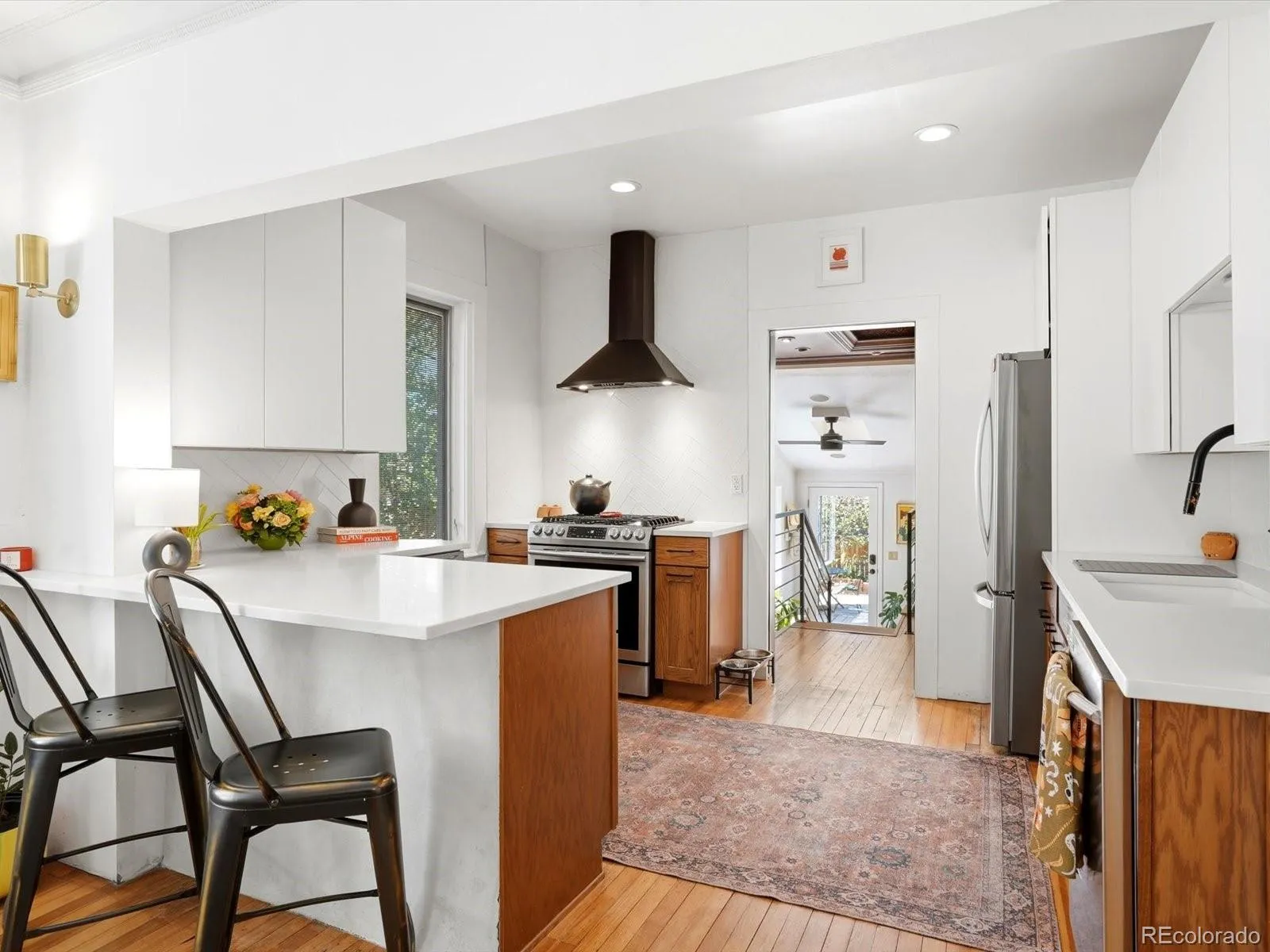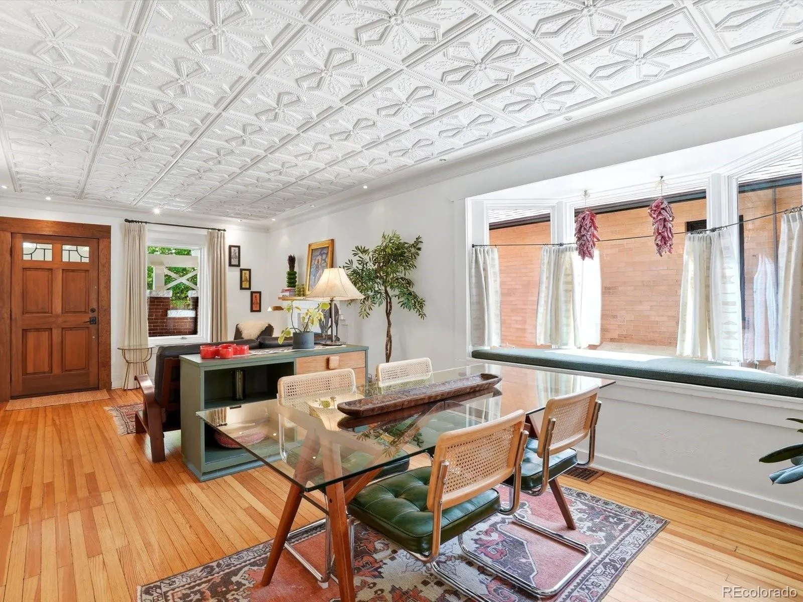 Welcome to this thoughtfully updated brick bungalow in East Wash Park, where timeless character meets modern living. The main level is warm and inviting, featuring a light-filled living room with ornate ceiling tiles, custom bay window seating, and architectural lighting. The open layout flows seamlessly into the updated kitchen with custom cabinetry, new LG refrigerator, Samsung gas range and dishwasher, and integrated water filtration system.