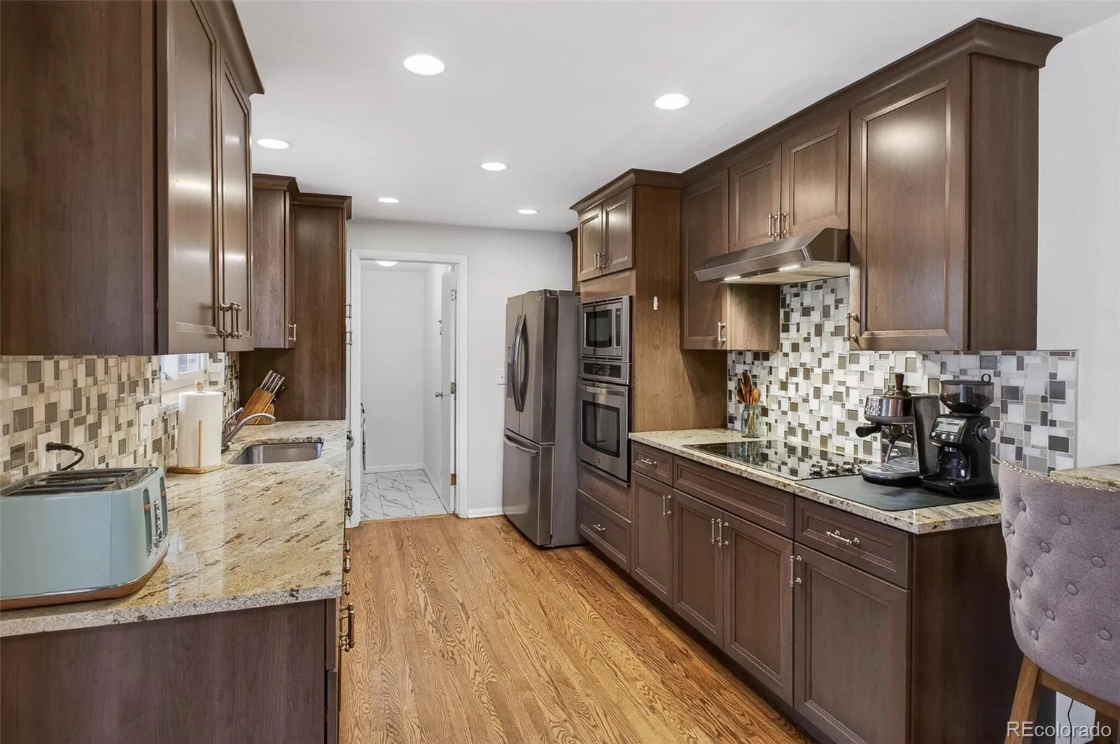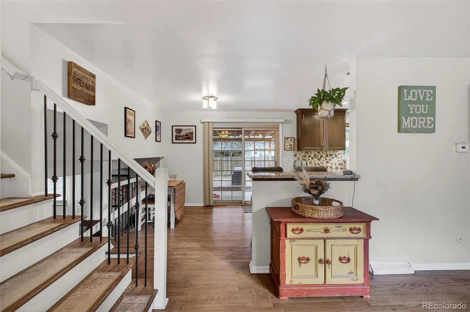 Flexible living space, a knockout kitchen, and an outdoor lifestyle that’s hard to beat. Solid hardwood floors and oversized double-pane windows greet you at the door to set the tone. A Kitchen That Truly Rocks! Thoughtfully updated kitchen with 42″ solid wood cabinets featuring soft-close hardware and dovetailed drawer boxes — the details that separate a good kitchen from a great one. Stainless appliances include a sleek glass cooktop range and a brand-new 2025 refrigerator. The dedicated laundry room on the main level includes a 2021 washer and dryer. The attached garage gives you room for all your Colorado toys: skis, a canoe, bikes, or yes, even a car. Sleep, Refresh, Repeat Upstairs you’ll find two comfortable bedrooms plus a modern full bath featuring a double-sink vanity — because mornings are better when you’re not sharing a sink. The garden level adds a third bedroom, another bathroom, and a spacious family room. The Basement: Bonus Level Unlocked Downstairs, the possibilities are wide open. The space is currently used as a movie room, a home gym, and a game room — simultaneously. A dedicated unfinished utility closet with abundant built-in shelving keeps everything organized and off your radar. The large, fully fenced yard is an entertainer’s dream. A magnificent mature tree that casts gorgeous summer shade over the whole space — making those Colorado evenings outside something truly special.