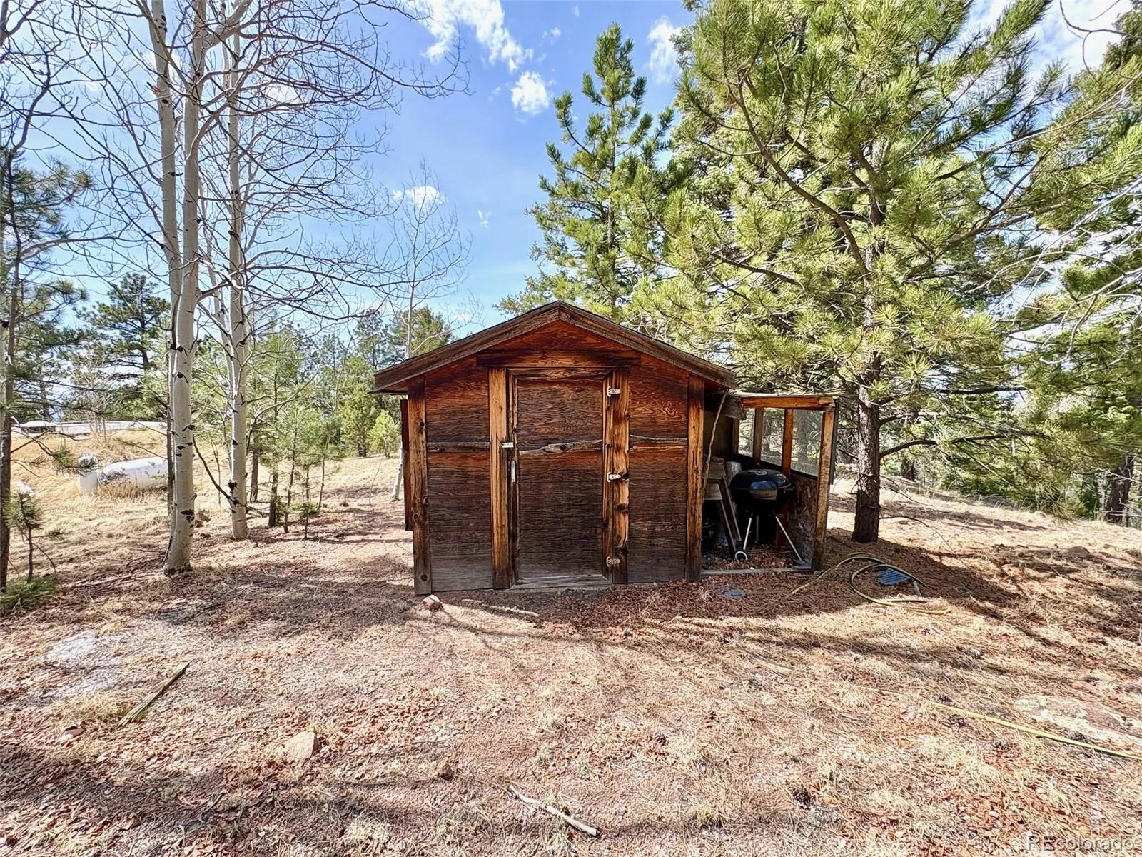 Exceptional opportunity to own a private 35-acre mountain retreat located less than 10-minutes from historic Cripple Creek, about 25-minutes from Woodland Park, and about an hour west of Colorado Springs. Perfect for a weekend getaway, hunting basecamp, or full-time off-grid residence, this unique property offers unmatched tranquility, privacy, and sweeping Colorado mountain views. The custom-built cabin features 2-bedrooms, 1-bathroom, a full kitchen, living room, dining area, and comfortable living space, all complemented by a front deck perfectly positioned to take in absolute breathtaking views. Thoughtfully constructed into an earth berm for natural insulation, the home also showcases handcrafted exterior stonework, adding to its rustic charm and durability. Designed for off-grid living, the property is powered by a combination of solar panels, generator, and propane. A natural spring runs through the property and supplies water via pump, and a septic system is already in place. Beautifully wooded land filled with ponderosa pine, oak, and aspen trees, and the lot is a desirable south-facing orientation. Wildlife is abundant, with deer, elk, turkey, and even bear passing through occasionally. The property is located near thousands of acres of BLM land, providing endless opportunities for hunting, hiking, horseback riding, and outdoor recreation. With no HOA and no covenants, owners have the freedom to truly make this property their own. The acreage qualifies for a domestic well permit, offering additional future potential. Accessed via a private dirt road, the property offers seclusion while still being conveniently located close to Colorado Springs and Denver. Don’t miss this unique piece of Colorado real estate. Schedule a showing today.