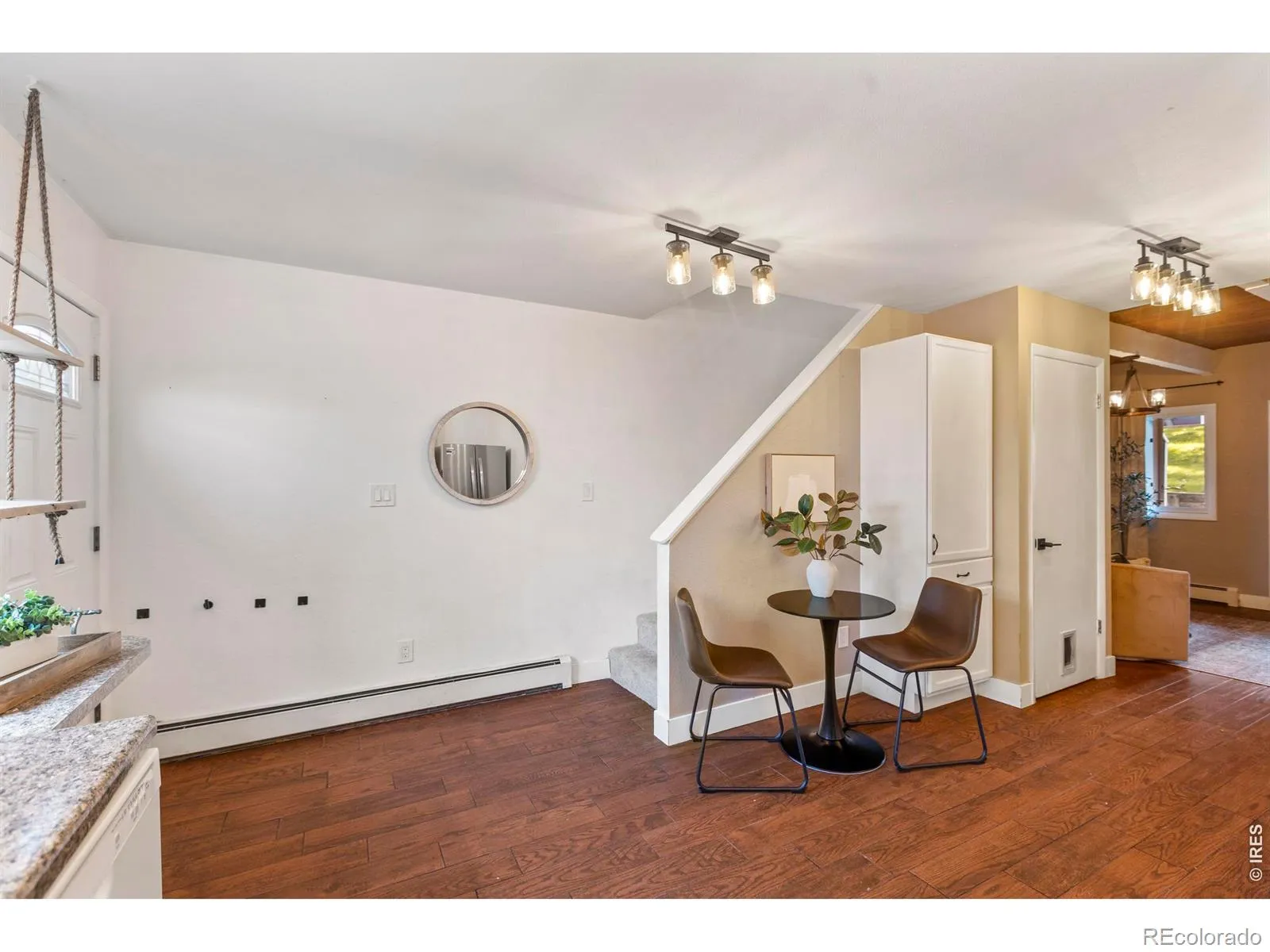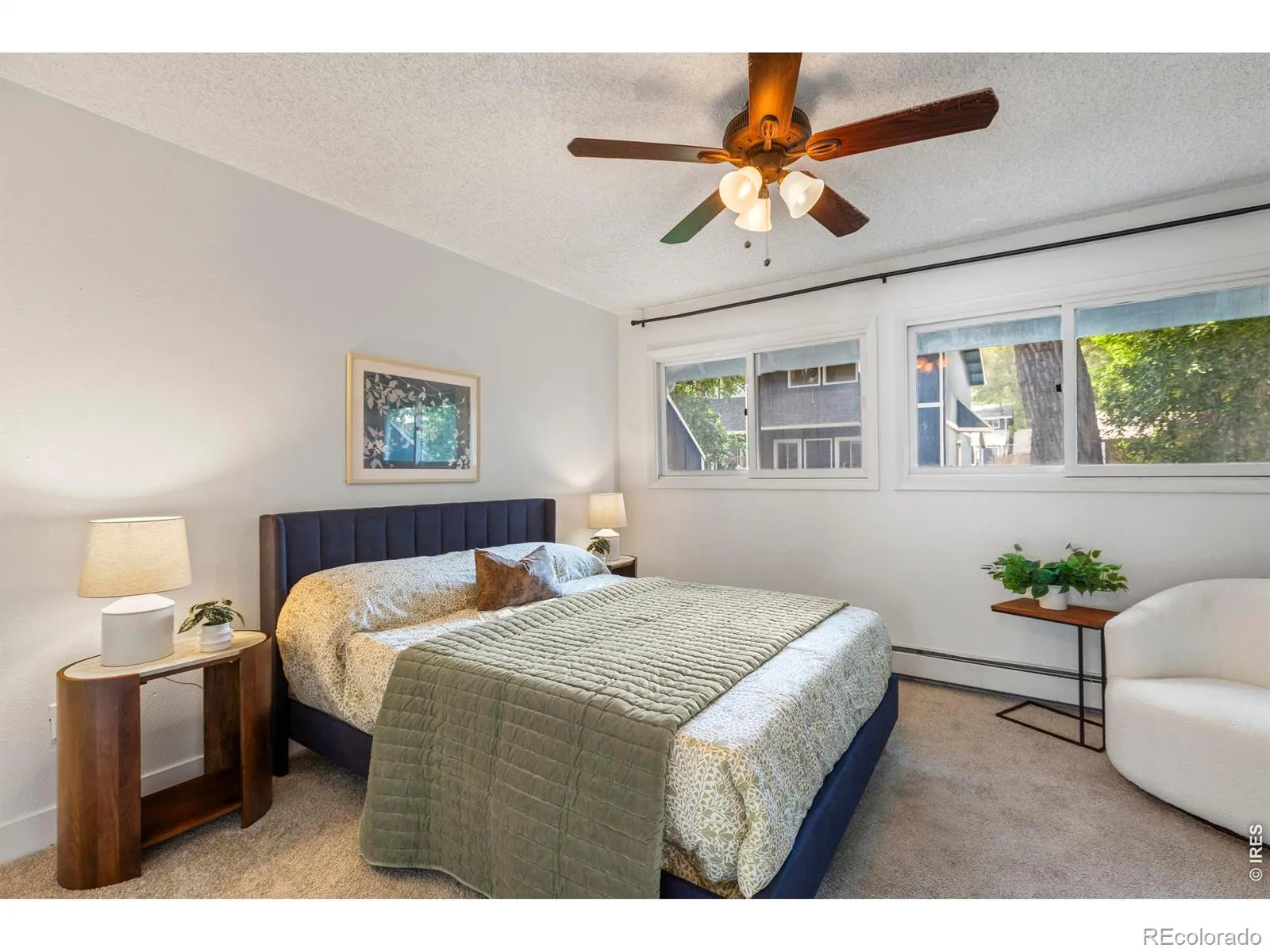 The ultimate Mid Town lock-n-leave townhome. Updated townhome style condo with proximity near Spring Creek Trail, Edora Park & Mallard’s Nest natural area. Fresh exterior and interior paint, ceramic tile floors, tongue and groove/exposed beam ceilings, private & gated patio plus garage w/attic storage. Hot water, baseboard radiant heat. HOA covers exterior maintenance, trash, water, snow. Affordable utilities. Over 10 acres of gorgeous complex grounds on either side of spring creek with incredible trees. Convenient trail access to shopping, dining, parks and natural areas, the foothills and downtown.