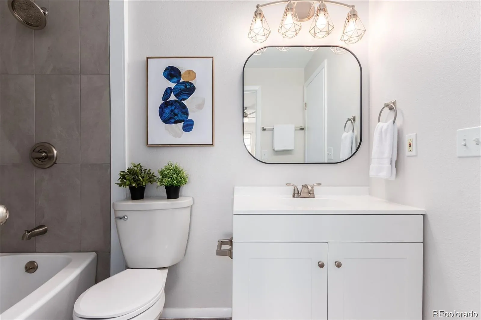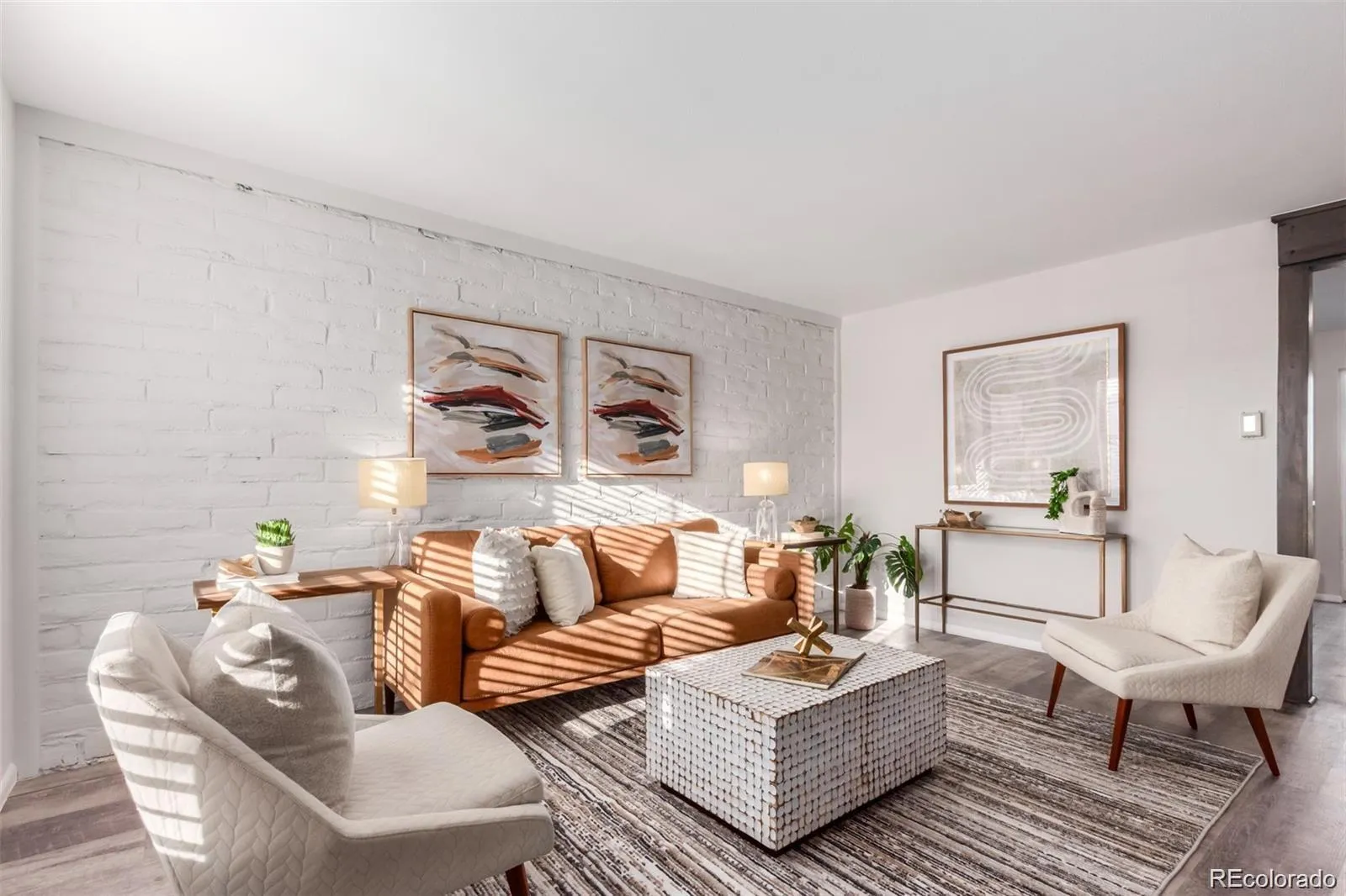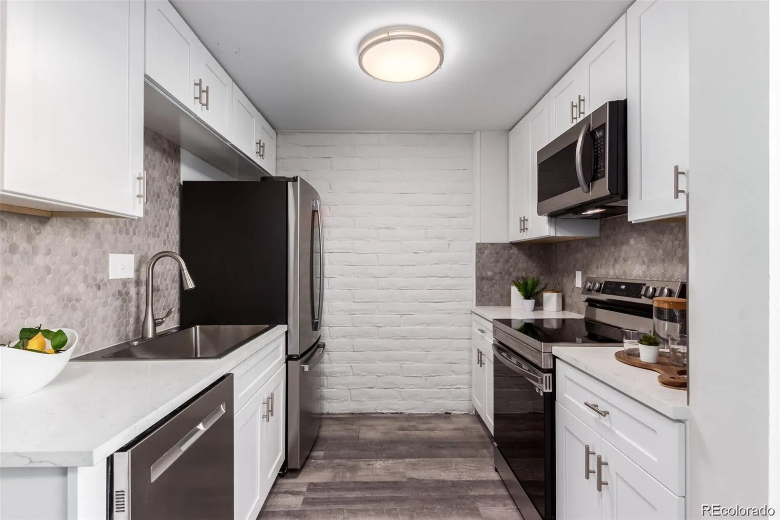 The updated kitchen features quartz countertops, a mosaic backsplash, newer stainless steel appliances, and soft-close shaker cabinets. Newer flooring, paint, and stylish fixtures enhance the inviting living spaces. Oversized bedrooms provide great closet space, while the sleek bathrooms include newer vanities, custom mirrors, and modern tile work.