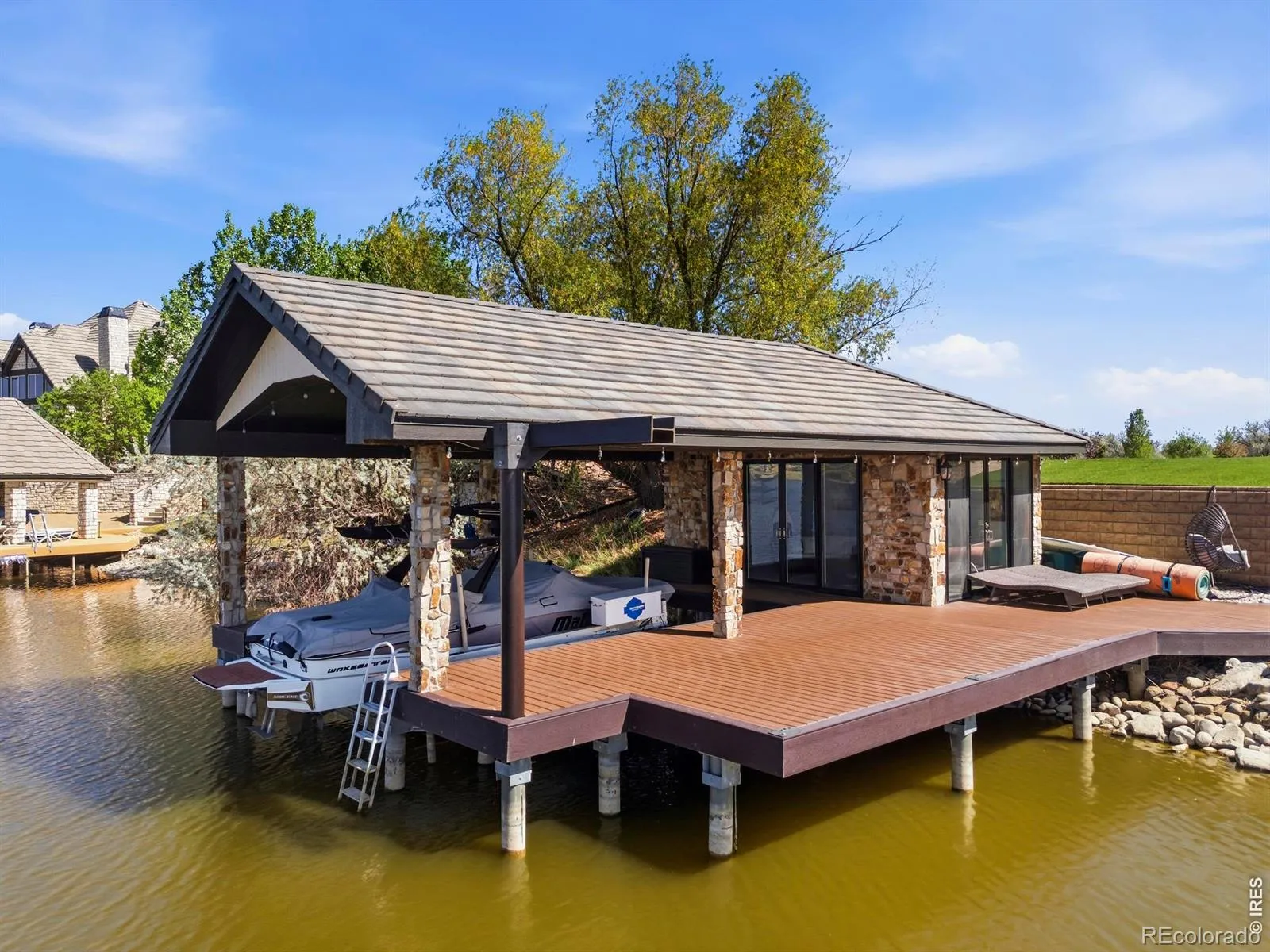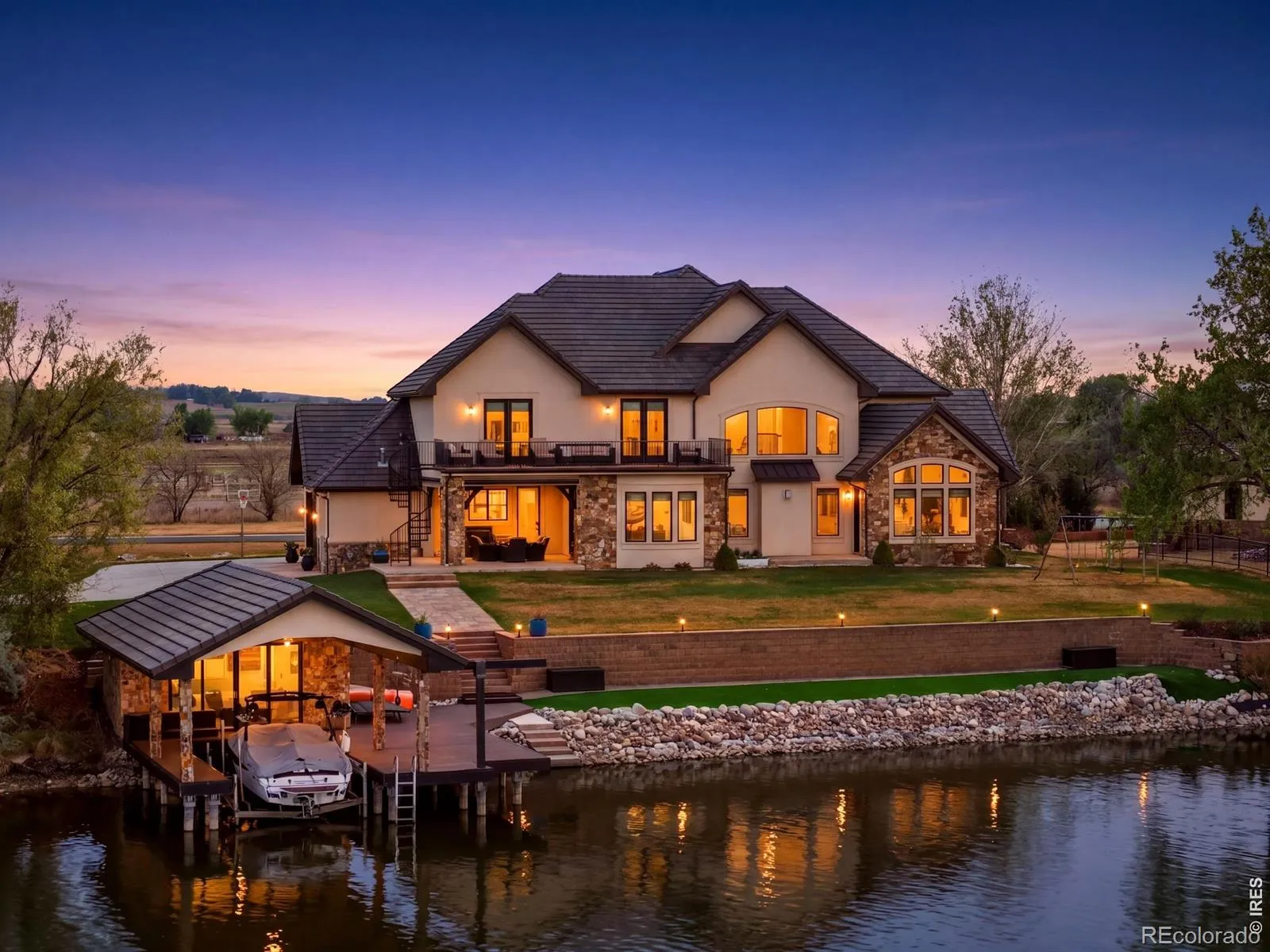 Live the resort lifestyle in this exquisite European-inspired, Tuscan-Mediterranean home, where timeless architecture meets premier lakefront living. Stone lined bridge over moat leads to a grand portico entry and elegant curved turret create a striking first impression, while the private cul-de-sac setting within the gated Lighthouse Cove community offers both privacy and prestige. The backyard opens directly to the 40 acre lake and features a private boathouse with dock, covered slip, and lift-offering immediate access to boating, water skiing, wakeboarding, wakesurfing, tubing, and paddleboarding right from your own property. Inside, a dramatic vaulted foyer, sweeping staircase and beautiful wood flooring set a refined tone. Designed to capture breathtaking water views, this 5-bedroom, 6-bath residence blends scale, comfort, and craftsmanship. The open-concept main level features soaring ceilings, walls of windows, a stone-accented fireplace, and seamless flow between the great room, dining area, and kitchen. The chef’s kitchen is beautifully appointed with quartz countertops, an expansive island, gas cooktop, custom cabinetry, walk-in pantry, built-in Thermador refrigerator, butler’s pantry, and sunlit breakfast nook. The primary suite is a serene retreat with panoramic lake views, a spa-inspired bath, and custom walk-in closet. The main level also includes a private guest suite, laundry, mudroom, and a light-filled fitness room. Upstairs offers additional bedrooms, a Jack-and-Jill bath, and a charming bunk suite with en-suite. Multiple living areas and a dedicated theater room provide ideal spaces for entertaining and relaxation. Step outside to experience true waterfront living. Multiple patios, a covered lounge, and an expansive upper deck with spiral staircase set the stage for sunset gatherings. Complete with an oversized 4-car side-load garage, this is a rare opportunity to own a true resort-style lakefront home designed for both luxury and adventure.