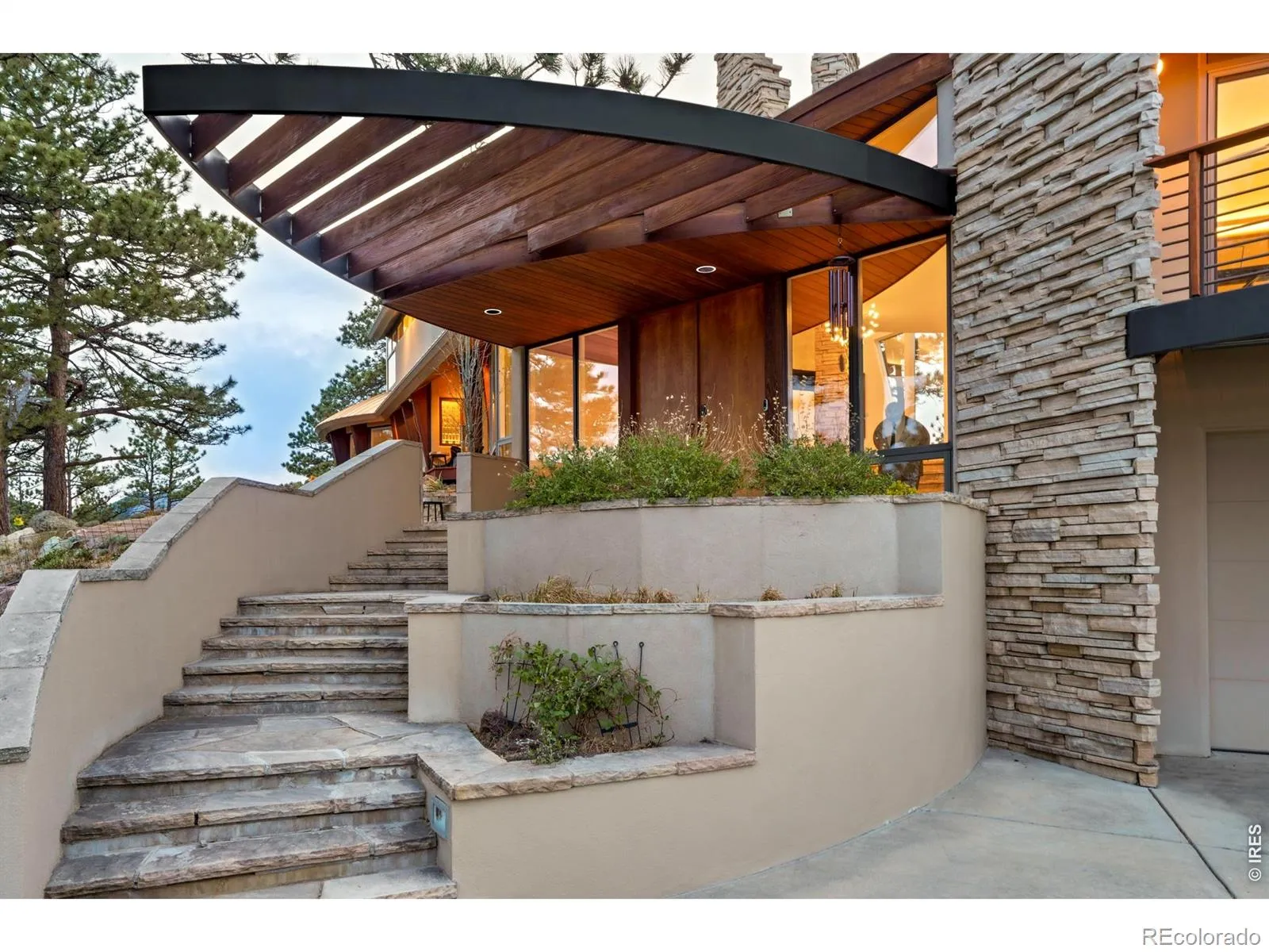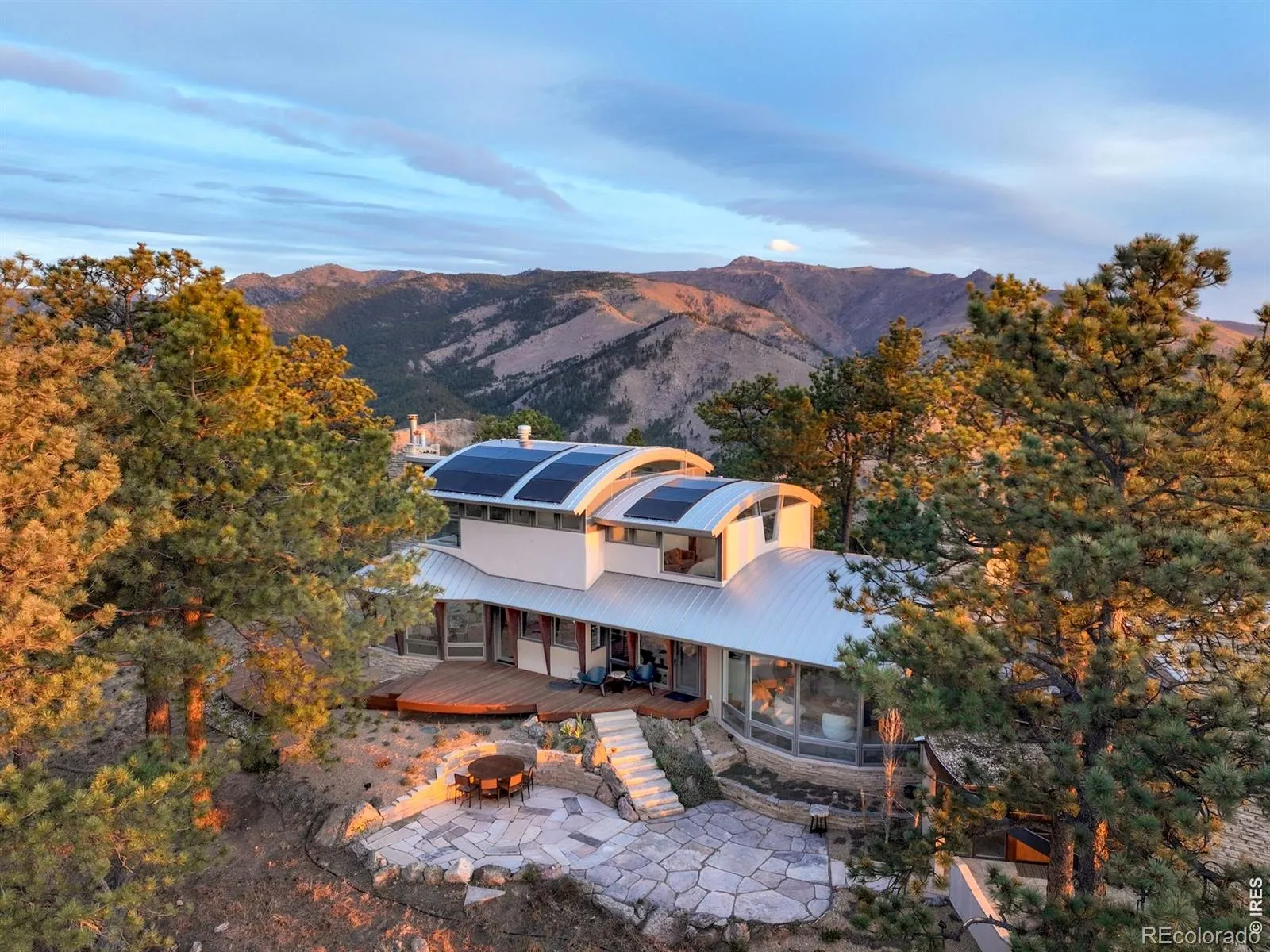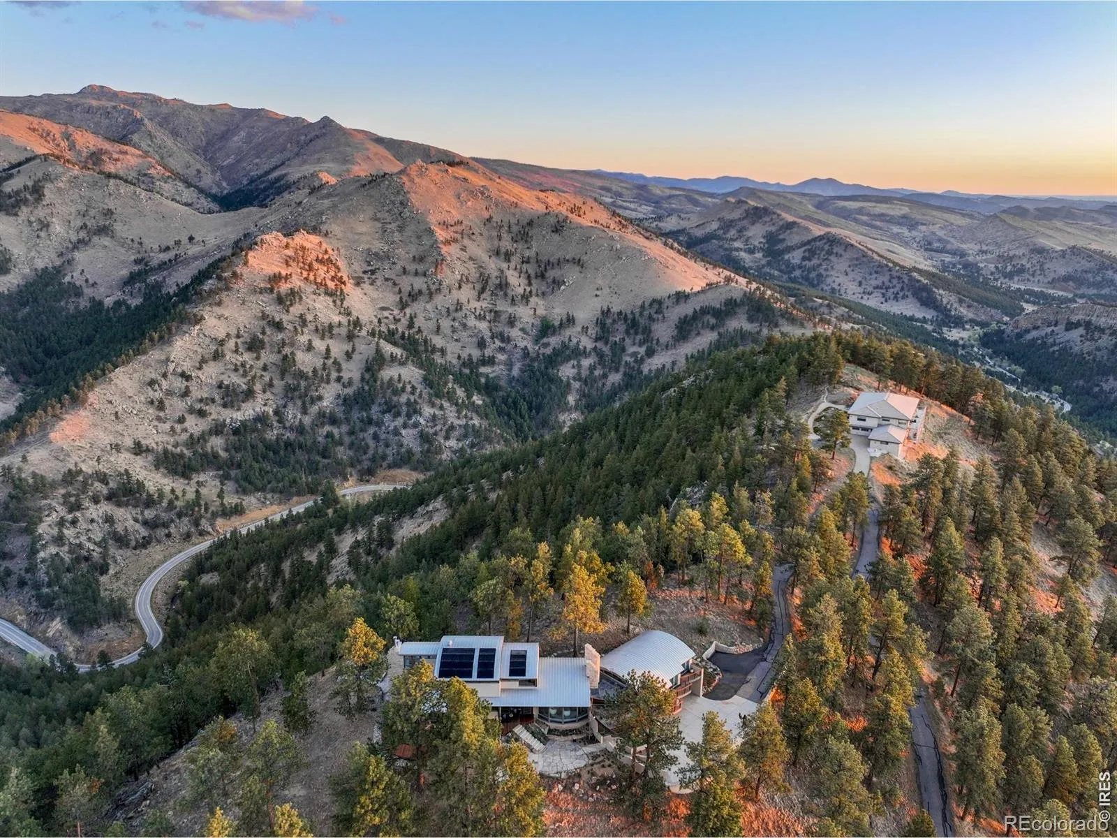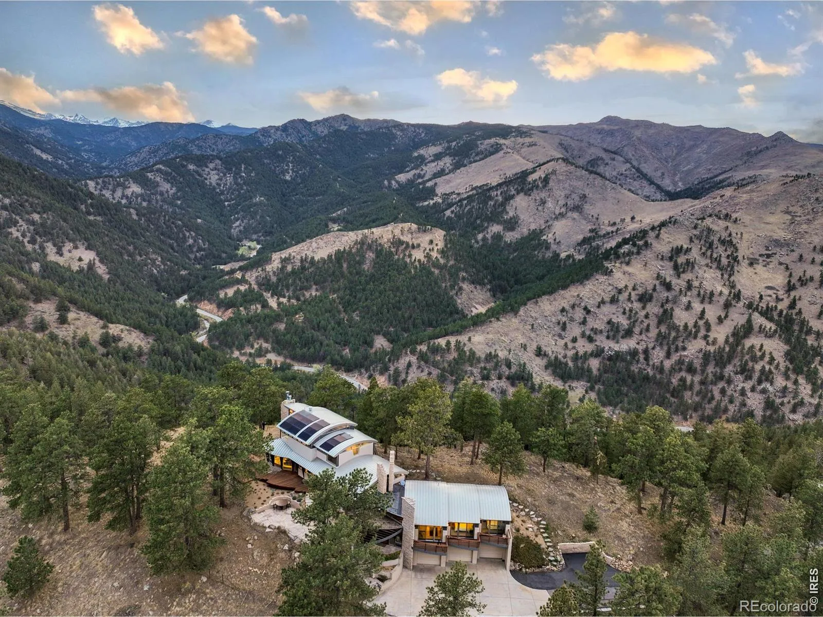 This extraordinary Buckingham Hills estate, fully renovated to perfection, is a timeless masterpiece of architectural distinction and serene mountain living. Designed by renowned architect David Barrett and built by Harrington Stanko, the home is gracefully set on 38 private acres; one of just nine residences sharing over 300 acres of preserved open space and forested land. Surrounded by sweeping vistas in every direction, the home captures iconic views of the Continental Divide, Pikes Peak, and the Flatirons, along with rolling forests, dramatic rock outcroppings, and the shimmering city lights below. Inside, walls of glass dissolve the boundary between indoors and out, flooding the home with natural light and framing uninterrupted panoramas from nearly every room. The interiors are grounded in warmth and sophistication, with natural materials and stone accents that echo the surrounding environment. A beautifully executed open floor plan strikes a perfect balance between privacy and gathering, allowing the home to live comfortably day-to-day while effortlessly accommodating larger-scale entertaining. Each bedroom and office is thoughtfully designed with private balcony access, extending the living experience into the landscape. A series of cascading patios and intimate garden terraces create moments for quiet reflection, while also offering a stunning backdrop for entertaining. Both a sanctuary and a statement, this Buckingham Hills estate is a truly rare offering where timeless design meets the extraordinary scale and beauty of the Colorado landscape. Positioned just ten minutes from Broadway, the property offers an unparalleled sense of retreat without sacrificing proximity to Boulder’s most vibrant corridors.