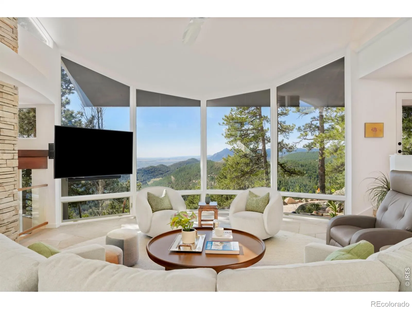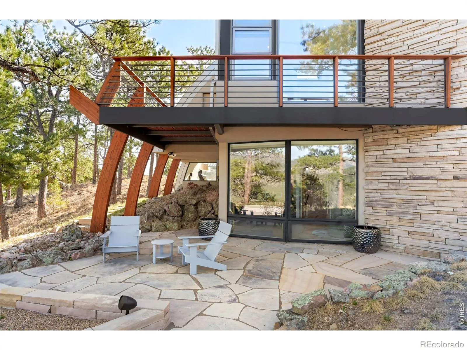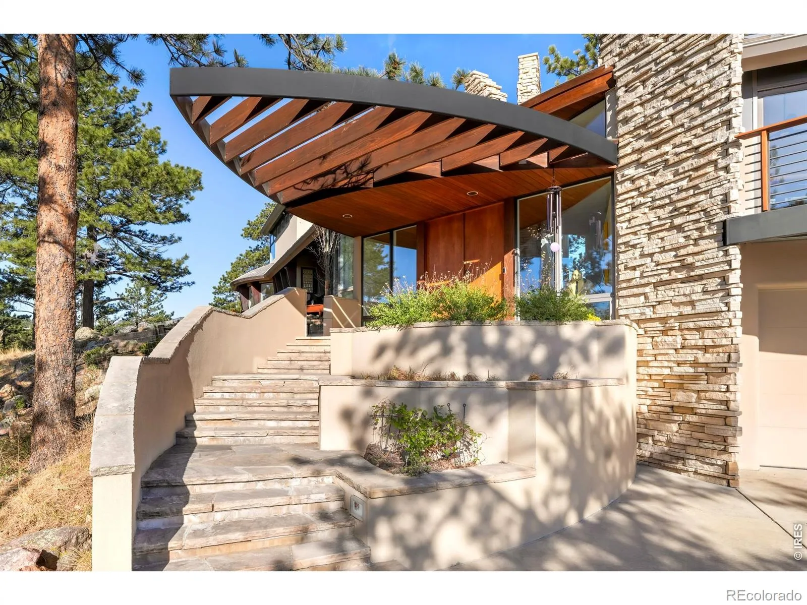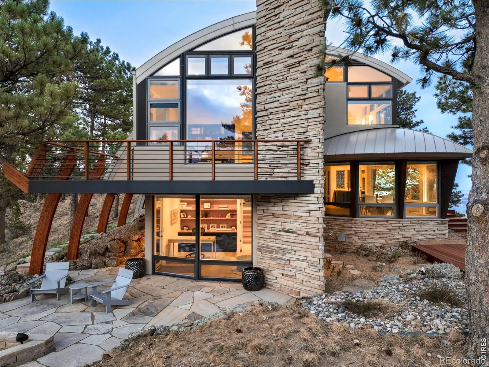This extraordinary Buckingham Hills estate, fully renovated to perfection, is a timeless masterpiece of architectural distinction and serene mountain living. Designed by renowned architect David Barrett and built by Harrington Stanko, the home is gracefully set on 38 private acres; one of just nine residences sharing over 300 acres of preserved open space and forested land. Surrounded by sweeping vistas in every direction, the home captures iconic views of the Continental Divide, Pikes Peak, and the Flatirons, along with rolling forests, dramatic rock outcroppings, and the shimmering city lights below. Inside, walls of glass dissolve the boundary between indoors and out, flooding the home with natural light and framing uninterrupted panoramas from nearly every room. The interiors are grounded in warmth and sophistication, with natural materials and stone accents that echo the surrounding environment. A beautifully executed open floor plan strikes a perfect balance between privacy and gathering, allowing the home to live comfortably day-to-day while effortlessly accommodating larger-scale entertaining. Each bedroom and office is thoughtfully designed with private balcony access, extending the living experience into the landscape. A series of cascading patios and intimate garden terraces create moments for quiet reflection, while also offering a stunning backdrop for entertaining. Both a sanctuary and a statement, this Buckingham Hills estate is a truly rare offering where timeless design meets the extraordinary scale and beauty of the Colorado landscape. Positioned just ten minutes from Broadway, the property offers an unparalleled sense of retreat without sacrificing proximity to Boulder’s most vibrant corridors.