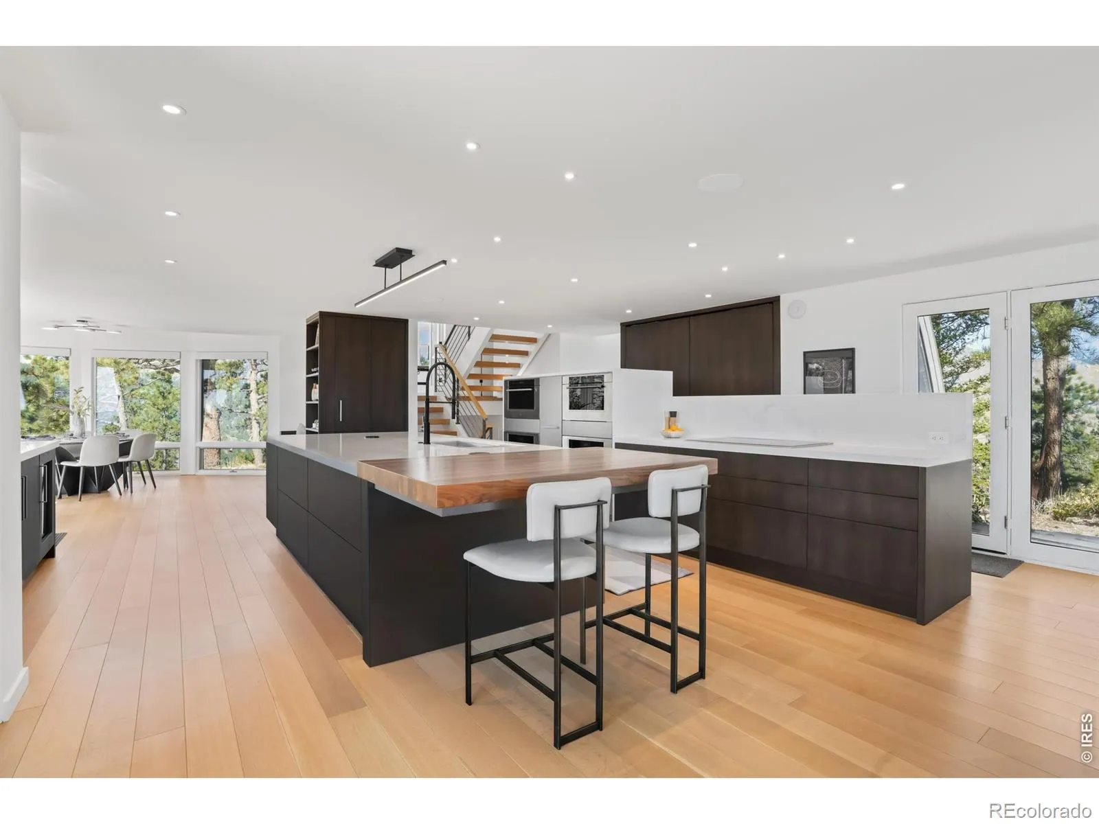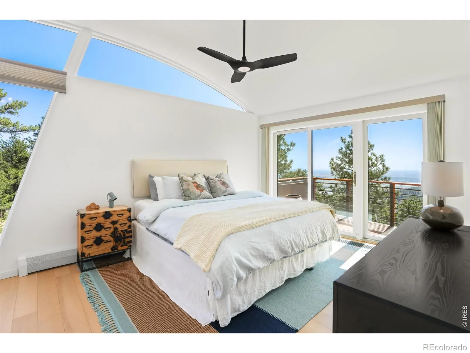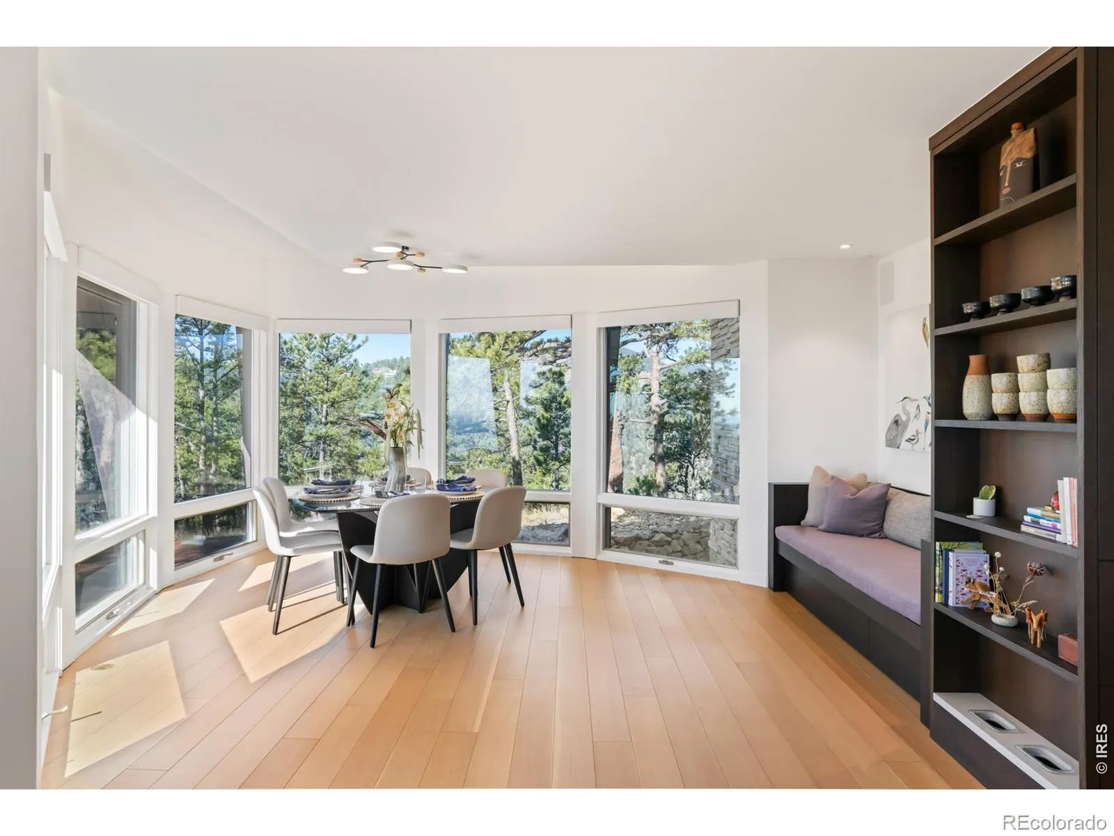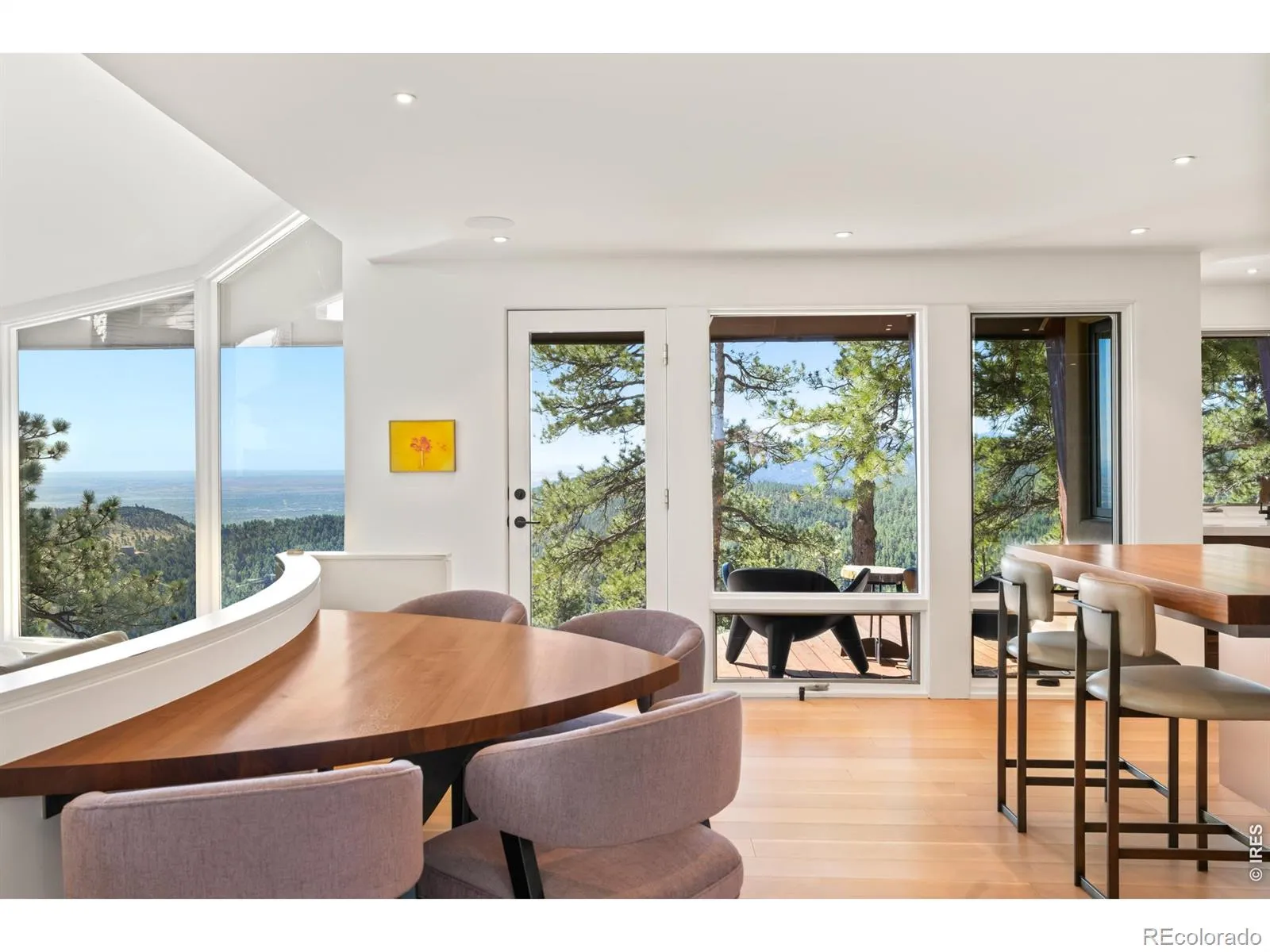 This extraordinary Buckingham Hills estate, fully renovated to perfection, is a timeless masterpiece of architectural distinction and serene mountain living. Designed by renowned architect David Barrett and built by Harrington Stanko, the home is gracefully set on 38 private acres; one of just nine residences sharing over 300 acres of preserved open space and forested land. Surrounded by sweeping vistas in every direction, the home captures iconic views of the Continental Divide, Pikes Peak, and the Flatirons, along with rolling forests, dramatic rock outcroppings, and the shimmering city lights below. Inside, walls of glass dissolve the boundary between indoors and out, flooding the home with natural light and framing uninterrupted panoramas from nearly every room. The interiors are grounded in warmth and sophistication, with natural materials and stone accents that echo the surrounding environment. A beautifully executed open floor plan strikes a perfect balance between privacy and gathering, allowing the home to live comfortably day-to-day while effortlessly accommodating larger-scale entertaining. Each bedroom and office is thoughtfully designed with private balcony access, extending the living experience into the landscape. A series of cascading patios and intimate garden terraces create moments for quiet reflection, while also offering a stunning backdrop for entertaining. Both a sanctuary and a statement, this Buckingham Hills estate is a truly rare offering where timeless design meets the extraordinary scale and beauty of the Colorado landscape. Positioned just ten minutes from Broadway, the property offers an unparalleled sense of retreat without sacrificing proximity to Boulder’s most vibrant corridors.