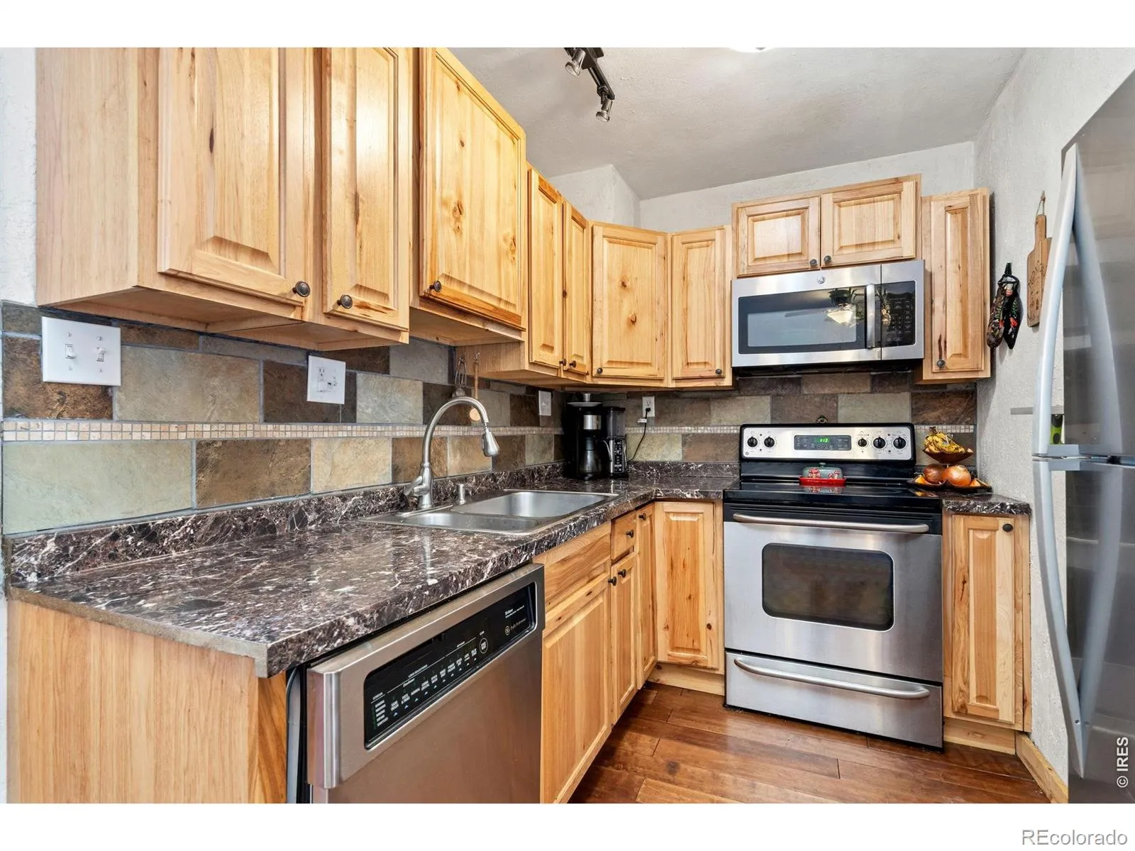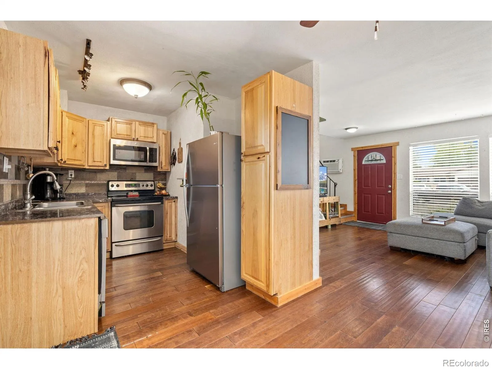 Step into this beautiful townhome-style condo featuring a bright, open floorplan designed for modern living. The kitchen has been thoughtfully renovated with hickory cabinets, sleek stainless steel appliances (including new refrigerator), stylish tile backsplash, and contemporary cityscape upper cabinets, creating a space that’s both functional and eye-catching. Enjoy warm wood flooring throughout the main level and an abundance of natural light pouring in through large windows, enhancing the property’s inviting feel. Both bathrooms have been tastefully updated, offering comfort and style throughout. Outside, you’ll find a rare fully fenced backyard perfect for relaxing or entertaining, complete with a concrete patio, garden bed area, and a large shed for additional storage. Off-street parking adds convenience to this well-rounded property.