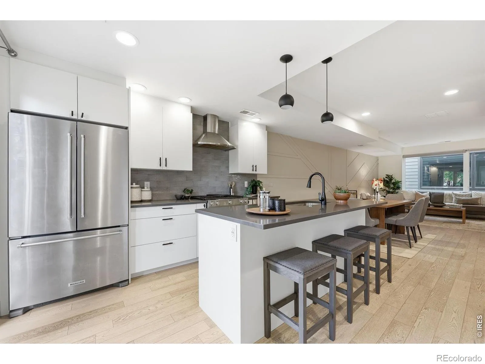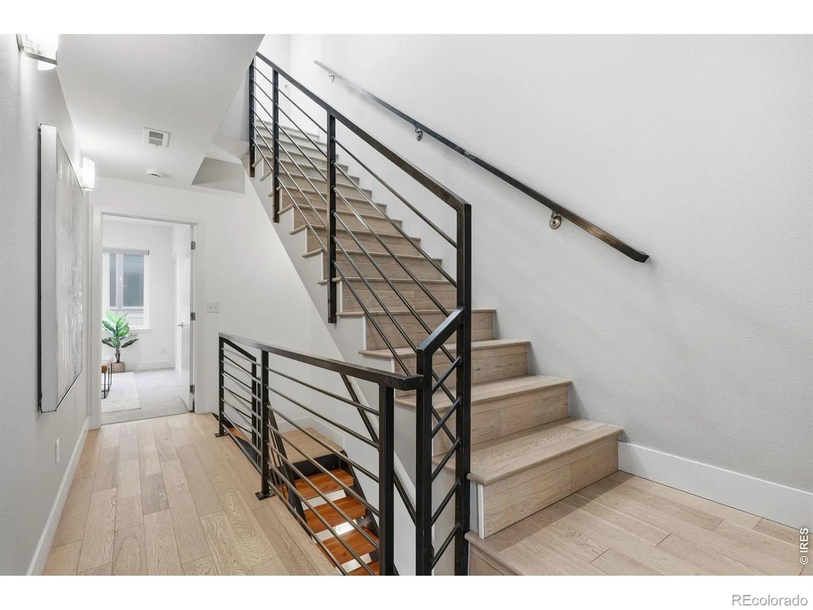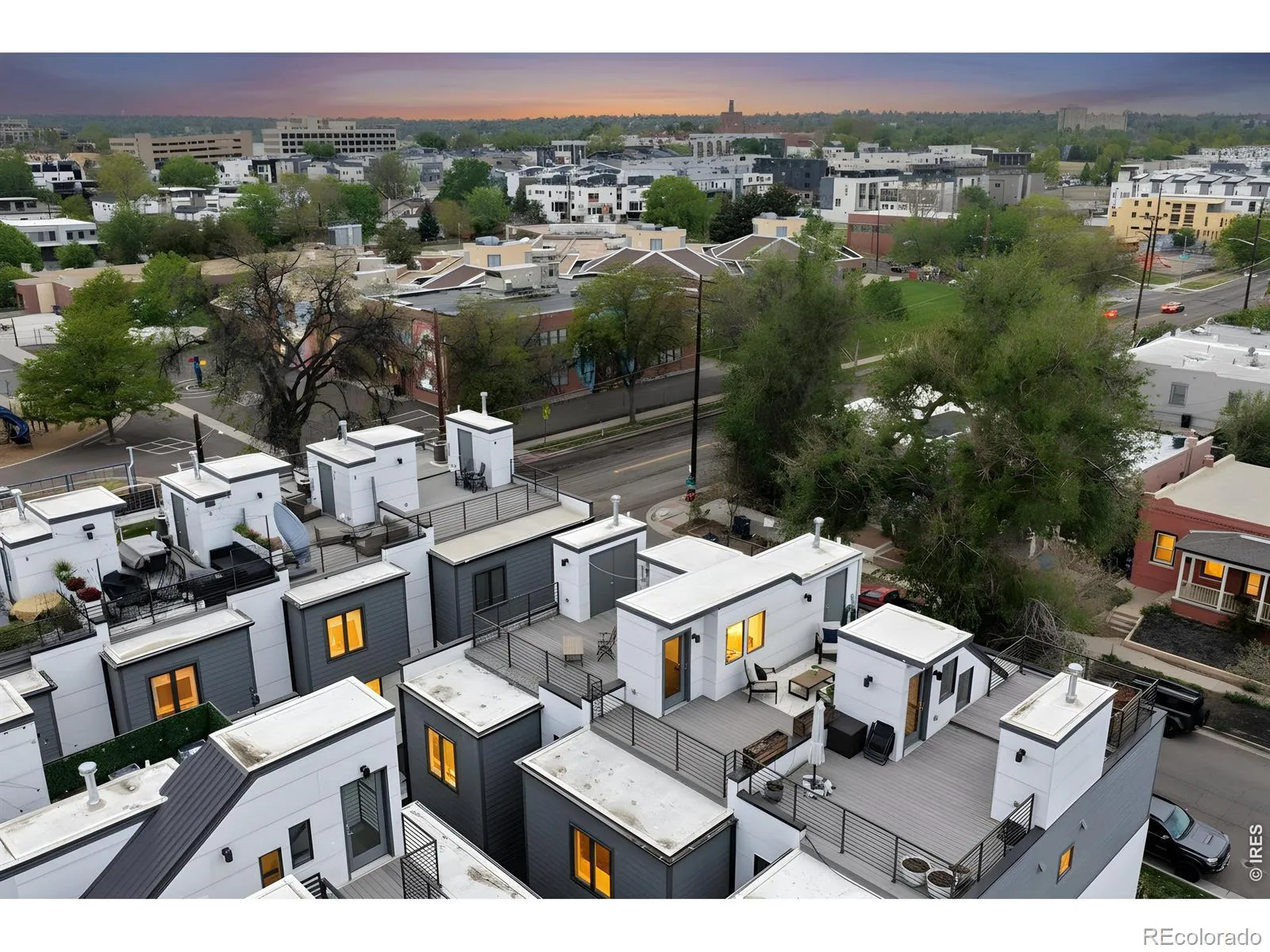 Stadium Terrace. Elevated urban living meets refined design in this striking multi-level townhome, ideally positioned in one of Denver’s most coveted locations. Just moments from Sloan’s Lake and Empower Field at Mile High, this residence delivers the perfect balance of vibrant city access and elevated privacy. Spanning three thoughtfully designed levels, this sophisticated home welcomes you with an attached one-car garage and a functional lower level featuring a powder room and dedicated laundry space. The main living level is bathed in natural light, enhanced by privacy-tinted windows that allow for an open, airy feel throughout the day. A seamless flow connects the living room to a chef-inspired kitchen, complete with premium KitchenAid appliances, gas range, generous pantry, and a private terrace. The upper level is dedicated to a serene primary retreat, offering a spacious ensuite bath and an expansive walk-in closet. A secondary bedroom provides flexibility for guests, office, or additional living needs, bright, comfortable, and well-appointed. Crowning the home is an exceptional rooftop deck-an entertainer’s dream-where sweeping views of the Denver skyline, the Capitol, and the Front Range mountains create an unforgettable backdrop for gatherings or quiet relaxation. With no HOA and a streamlined party wall agreement covering water, snow removal, trash, and management, this property offers both ease and independence. Sophisticated, low-maintenance, and perfectly located. Denver living at its finest.