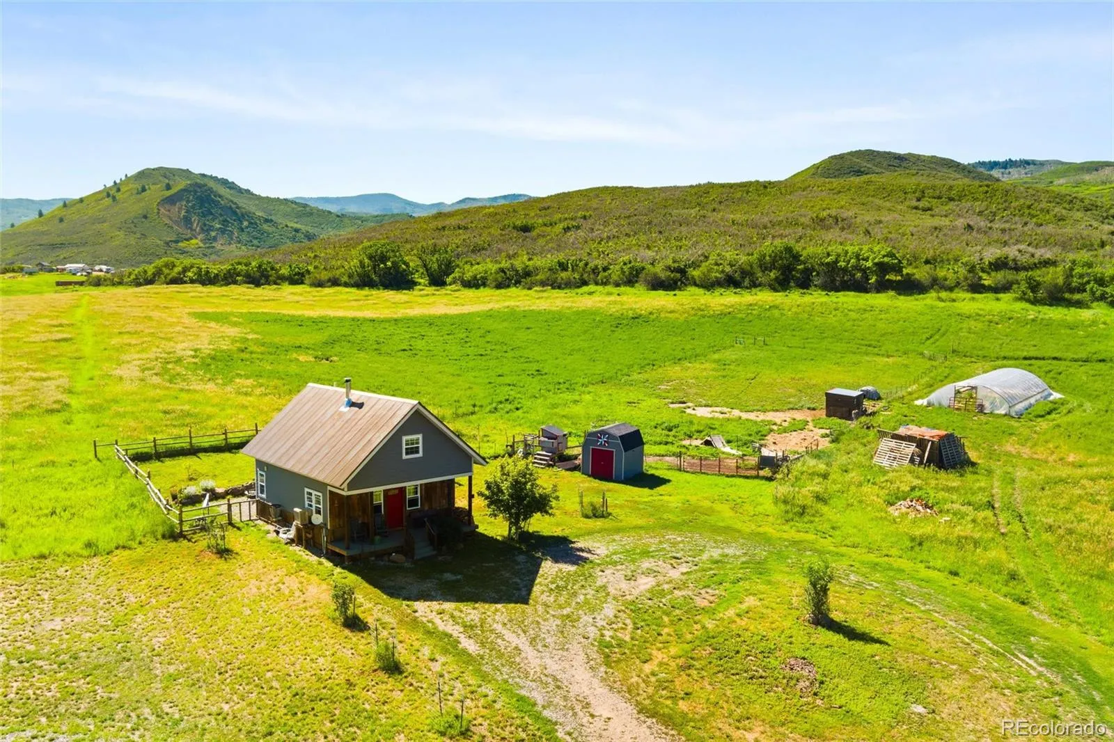 White Owl Ranch—your own private slice of paradise. Set on 240 scenic acres in the Garfield Creek area south of New Castle, this one-of-a-kind property features a main home, guest cabin, and barn, with endless potential to match your vision. The land offers excellent water rights, multiple pastures, a 1,300 sq ft hoop house, several outbuildings, and direct access to vast surrounding BLM land for exploration and recreation. The main residence includes 4 bedrooms, 3 full and 2 half bathrooms, plus a flexible floor plan with a walk-out lower level ideal for hosting family and guests. Inside, you’ll find clean lines, abundant natural light, a wood-burning stove, and a classic wraparound deck with sweeping views in every direction. The charming “farmhouse” guest cabin features a main-level bedroom and bath, plus a loft bedroom with its own bathroom—perfect for extended stays or rental use. It also includes a wood stove, cozy front porch, and fenced yard. The barn offers versatile space for entertaining, events, hobbies, equipment storage, or horses. Fully self-sustaining, the property includes a state-of-the-art solar system with 26,000 kWh of battery storage and a backup generator. Ideal for horses, farming, or simply enjoying the outdoors, the ranch boasts hay fields, Garfield Creek, riding trails, and abundant wildlife. Additional highlights include senior water rights, a pond, a spring-fed stock tank, and direct road access to BLM land. All this just 20 minutes from New Castle, with convenient access to I-70 and nearby destinations like Glenwood Springs, Aspen, and Grand Junction. A truly special property—you have to experience it to appreciate it.