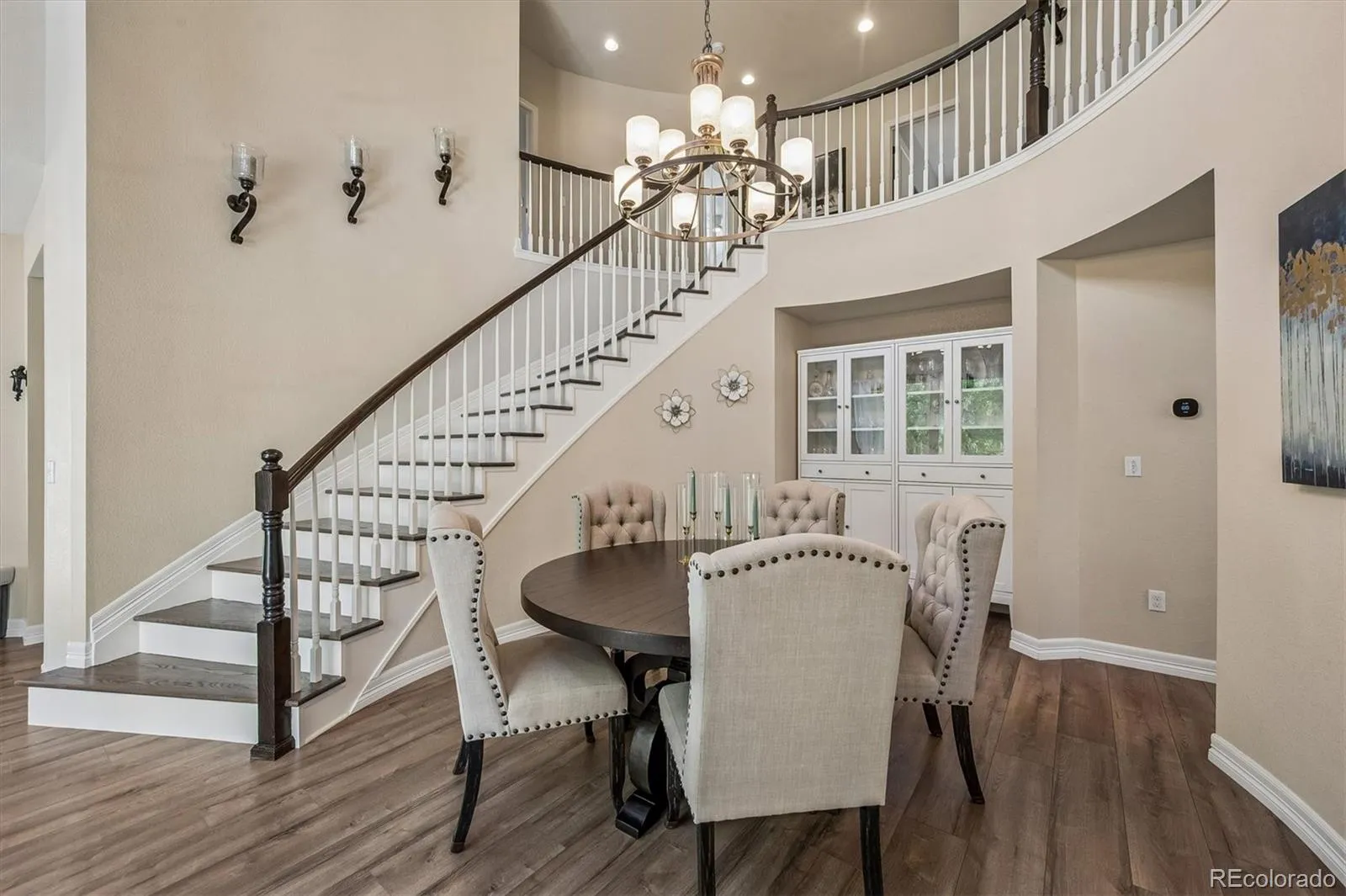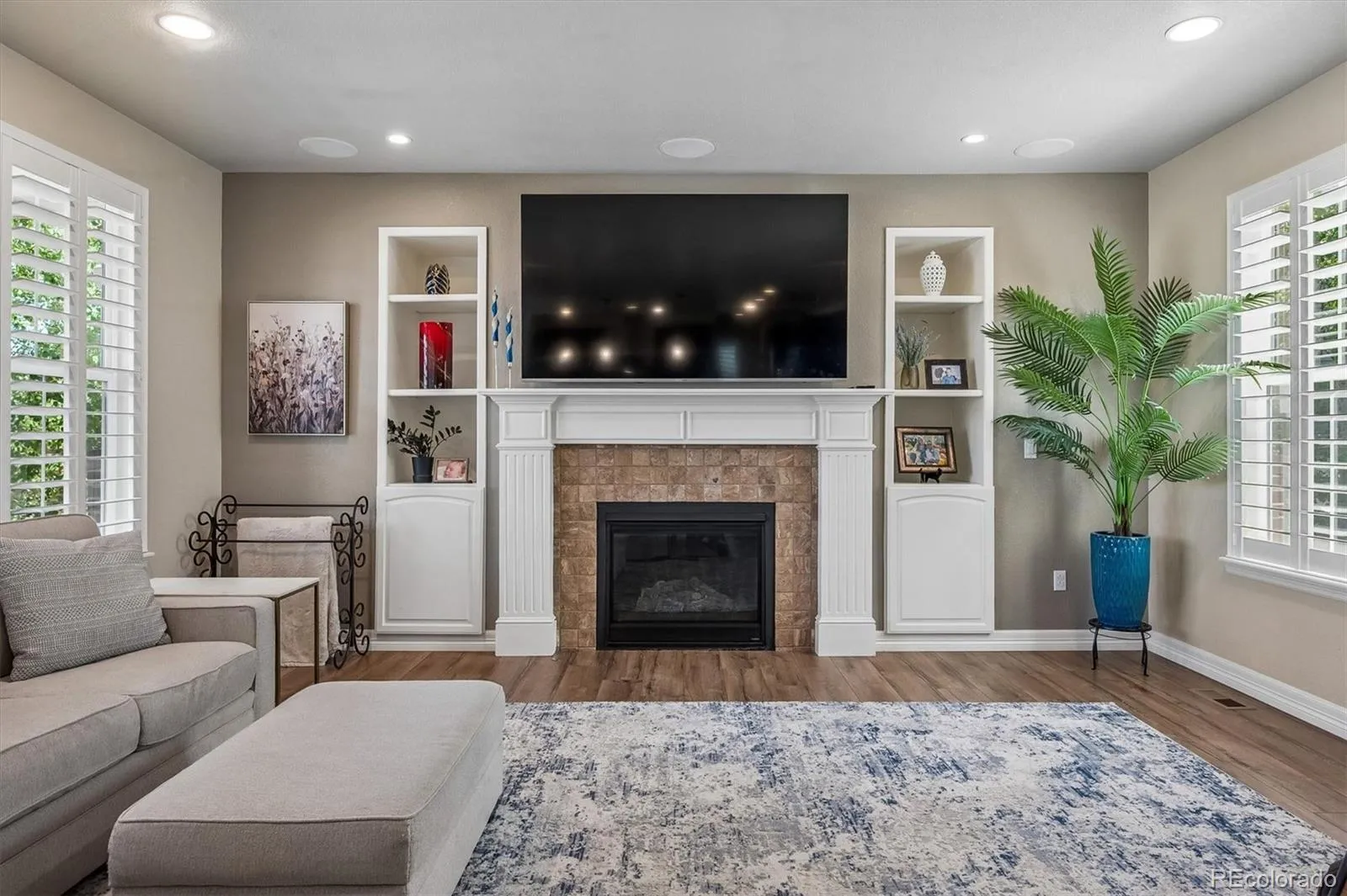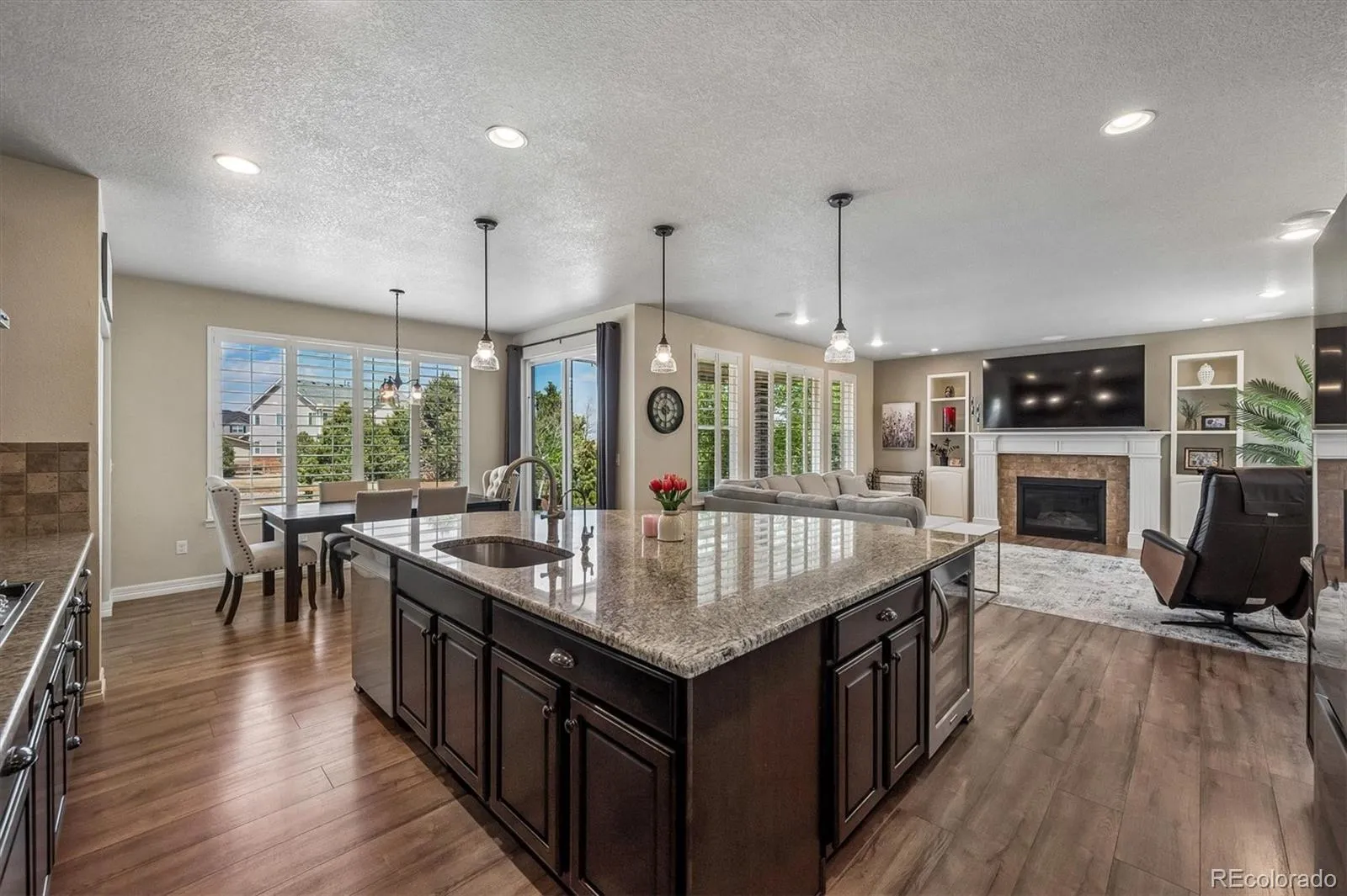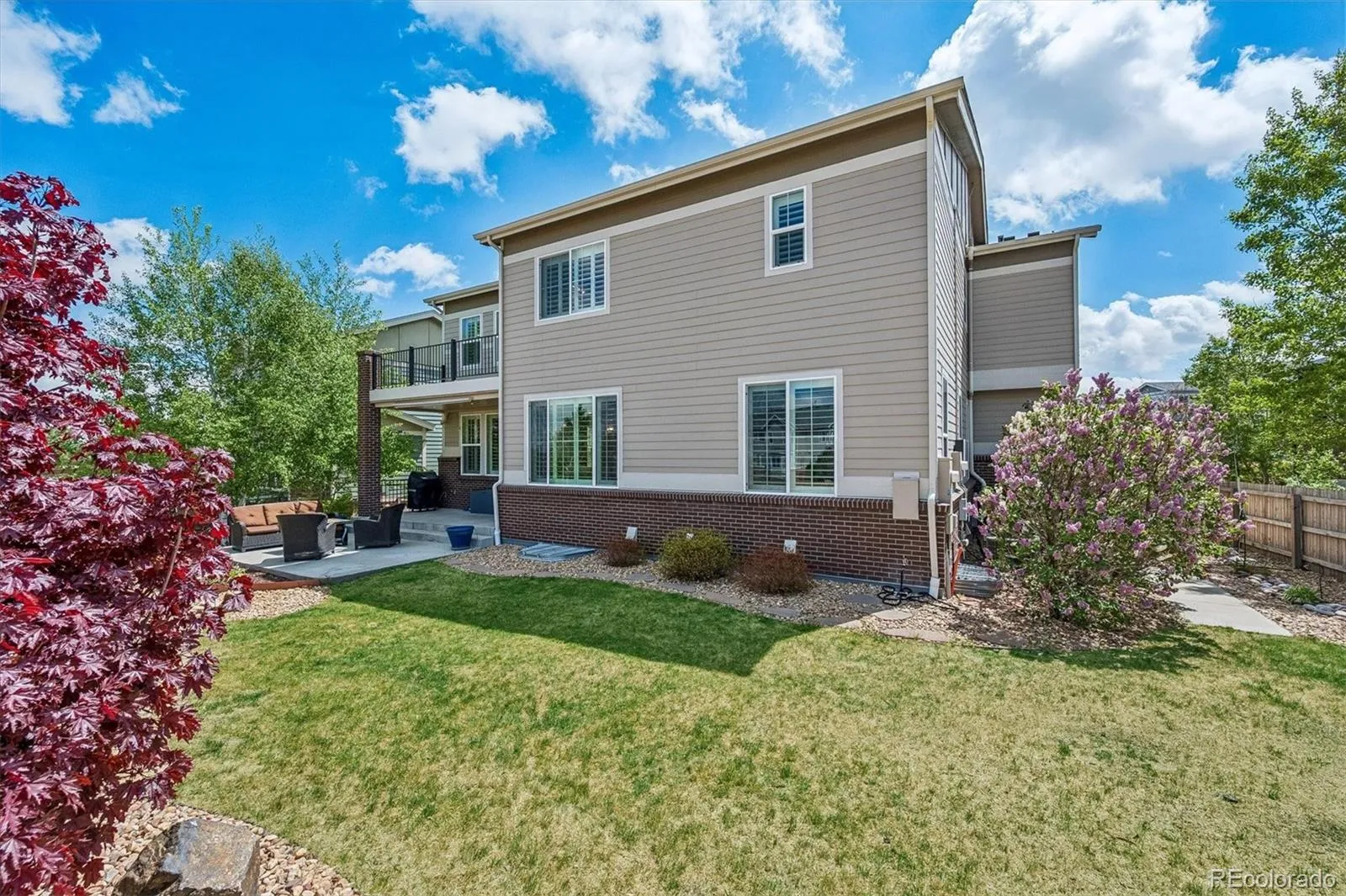 ~ Live Beautifully in this Stunning 5 Bedroom + 5 Bath Home that has been Impeccably Designed and Maintained ~ From the Front Door to the Covered Patio, this home feels like a Model Home with High End Finishes throughout, including Luxury Vinyl Floors, White Wood Shutters throughout, Slab Granite Counters, Upgraded Appliances, Fixtures and Lighting ~ The grand dining room greets you with a sweeping staircase and chandelier, and is accessible to the side patio with its 2-sided fireplace ~ Continue to the great room with windows looking to the back yard & patio space, and a fireplace flanked by built-in shelves ~ The well-appointed kitchen has everything a cook could need with a pantry, 2 wall ovens, 5-burner gas range with vent hood and plenty of cabinet and counter space ~ Friends & family can gather in the sunny breakfast nook, or relax at the huge island ~ The openness of the space and convenient access to the outdoor patio make entertaining a breeze and ensure the cook will never miss the party ~ The back yard has been thoughtfully designed for comfort with two patios, a water feature and flat lawn ~ Off the kitchen is a flex room used as an office, with french doors for privacy ~ Up stairs are 4 bedrooms, the laundry room and 3 bathrooms ~ The Primary Bedroom, with 5-piece ensuite, feels like an oasis, has its own balcony & fireplace ~ An enormous walk-in closet is reached through the stunning bathroom, which is equipped with a soaking tub, dual entry walk-in shower and separate vanities ~ Two secondary bedrooms each have good sized closets, large windows and share a full bath between them, while the other bedroom has its own ensuite ~ The finished basement has room for gaming or gathering, along with a wet bar ~ Another bedroom and bathroom, plus 2 storage rooms, round out this floor ~ The attached garage has 3 total spaces, windows, wall-mounted televisions and built-in storage ~ Home is close to schools & parks – Set a showing today and see it for yourself!