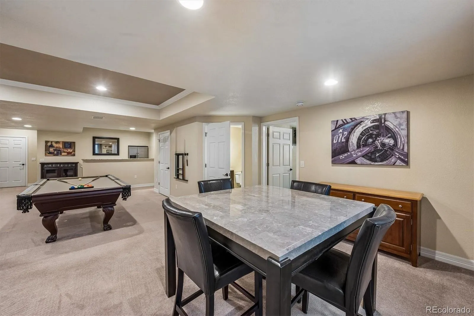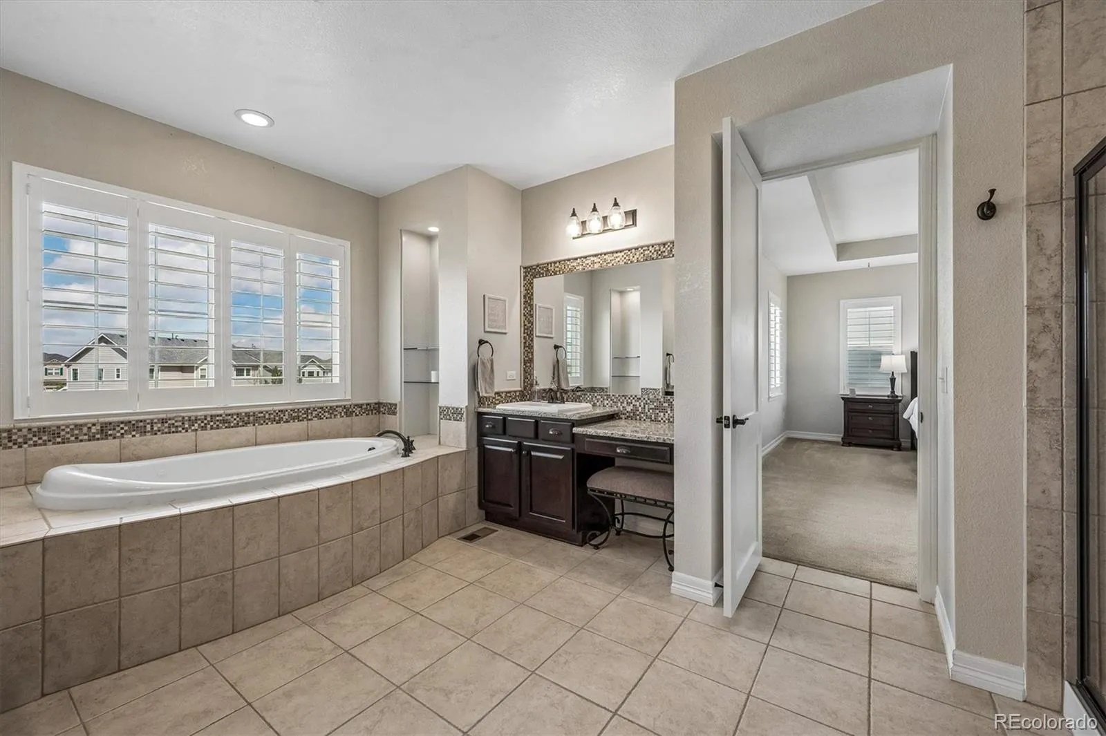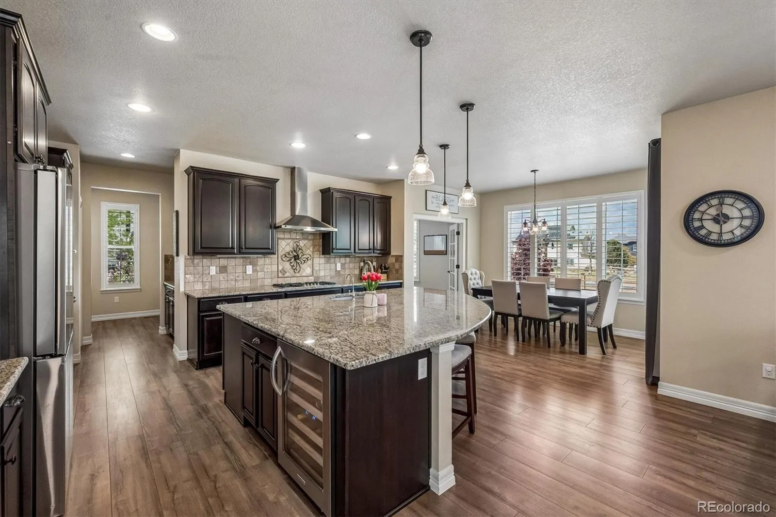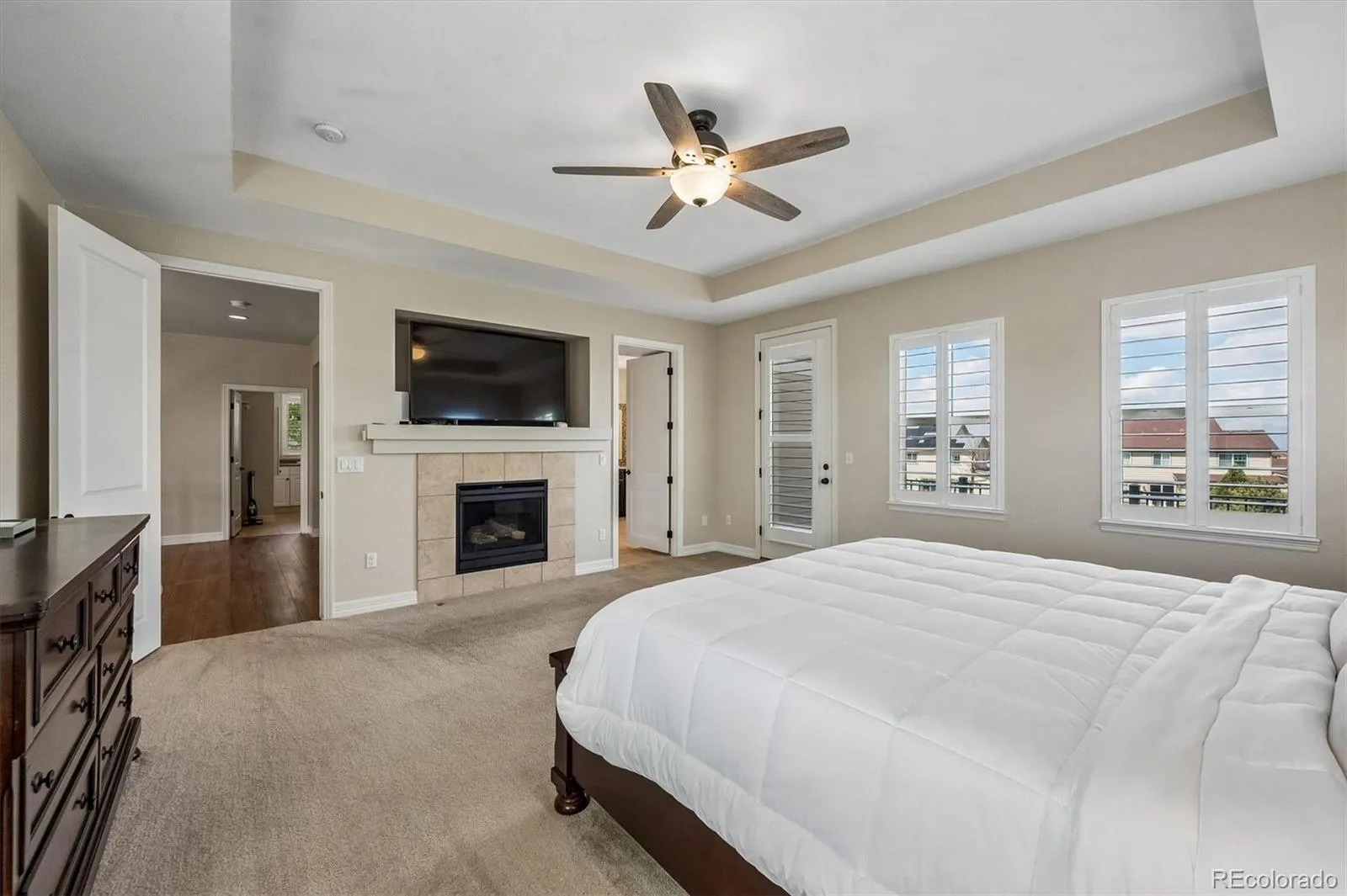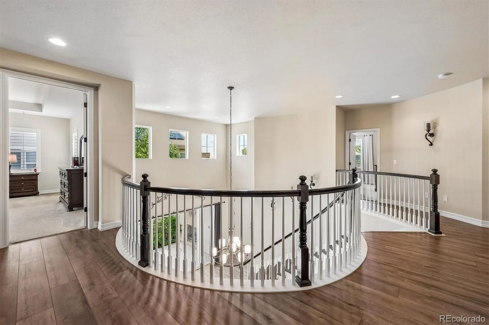 ~ Live Beautifully in this Stunning 5 Bedroom + 5 Bath Home that has been Impeccably Designed and Maintained ~ From the Front Door to the Covered Patio, this home feels like a Model Home with High End Finishes throughout, including Luxury Vinyl Floors, White Wood Shutters throughout, Slab Granite Counters, Upgraded Appliances, Fixtures and Lighting ~ The grand dining room greets you with a sweeping staircase and chandelier, and is accessible to the side patio with its 2-sided fireplace ~ Continue to the great room with windows looking to the back yard & patio space, and a fireplace flanked by built-in shelves ~ The well-appointed kitchen has everything a cook could need with a pantry, 2 wall ovens, 5-burner gas range with vent hood and plenty of cabinet and counter space ~ Friends & family can gather in the sunny breakfast nook, or relax at the huge island ~ The openness of the space and convenient access to the outdoor patio make entertaining a breeze and ensure the cook will never miss the party ~ The back yard has been thoughtfully designed for comfort with two patios, a water feature and flat lawn ~ Off the kitchen is a flex room used as an office, with french doors for privacy ~ Up stairs are 4 bedrooms, the laundry room and 3 bathrooms ~ The Primary Bedroom, with 5-piece ensuite, feels like an oasis, has its own balcony & fireplace ~ An enormous walk-in closet is reached through the stunning bathroom, which is equipped with a soaking tub, dual entry walk-in shower and separate vanities ~ Two secondary bedrooms each have good sized closets, large windows and share a full bath between them, while the other bedroom has its own ensuite ~ The finished basement has room for gaming or gathering, along with a wet bar ~ Another bedroom and bathroom, plus 2 storage rooms, round out this floor ~ The attached garage has 3 total spaces, windows, wall-mounted televisions and built-in storage ~ Home is close to schools & parks – Set a showing today and see it for yourself!