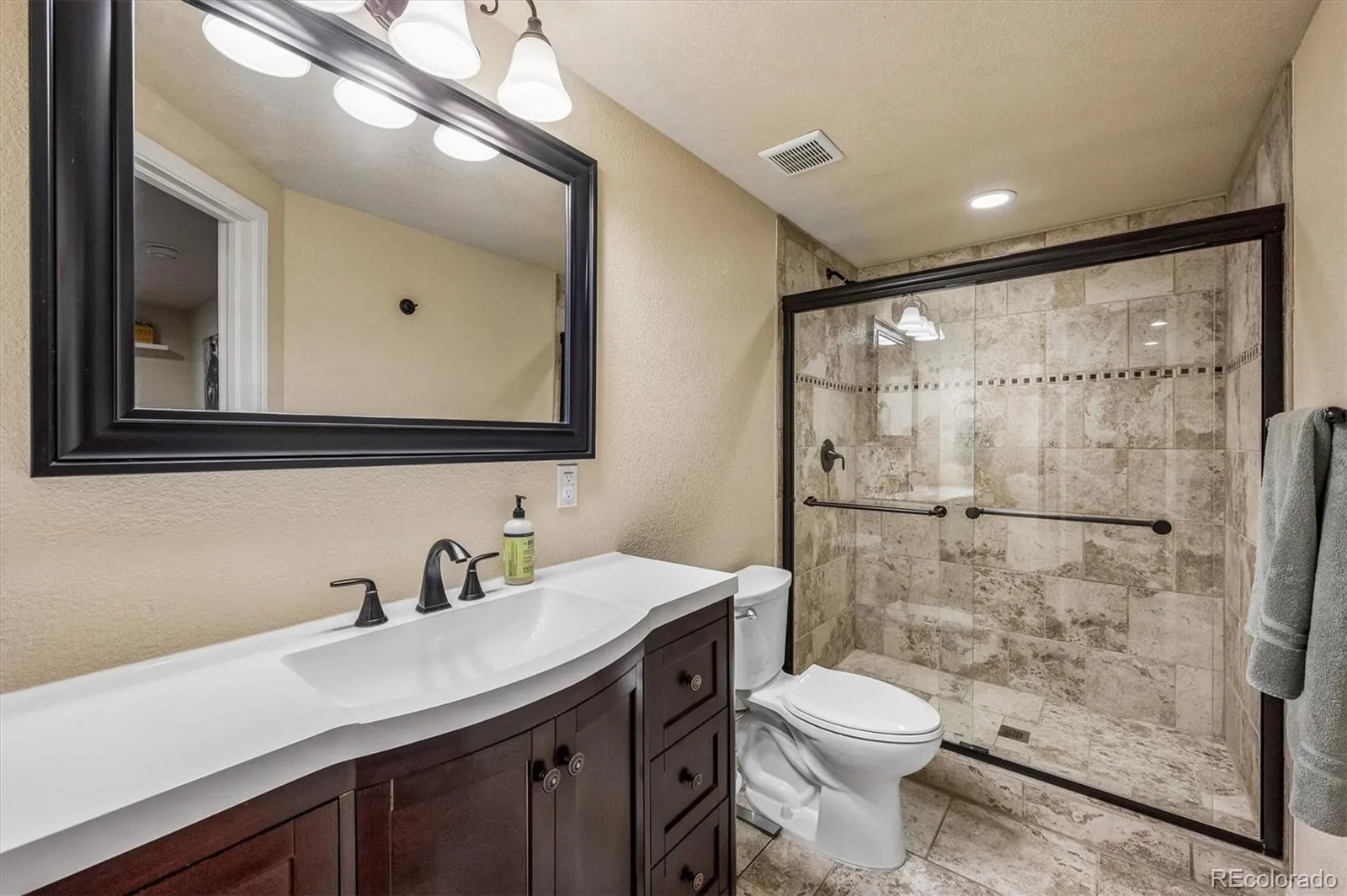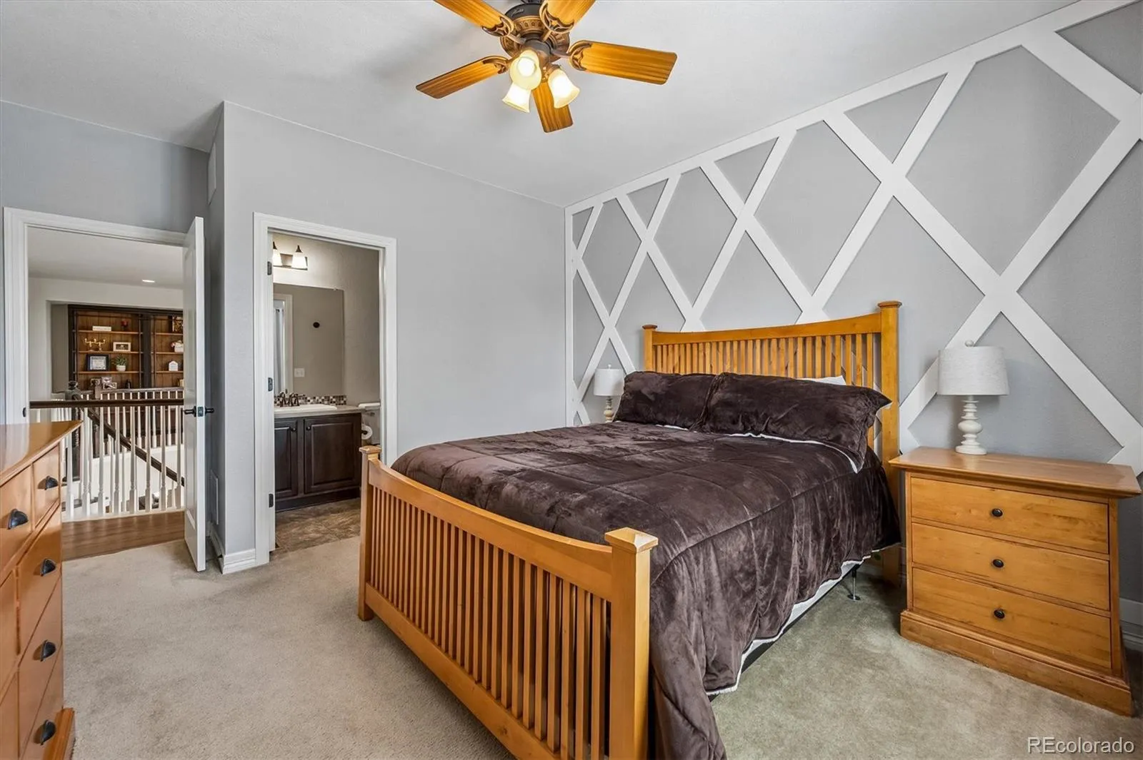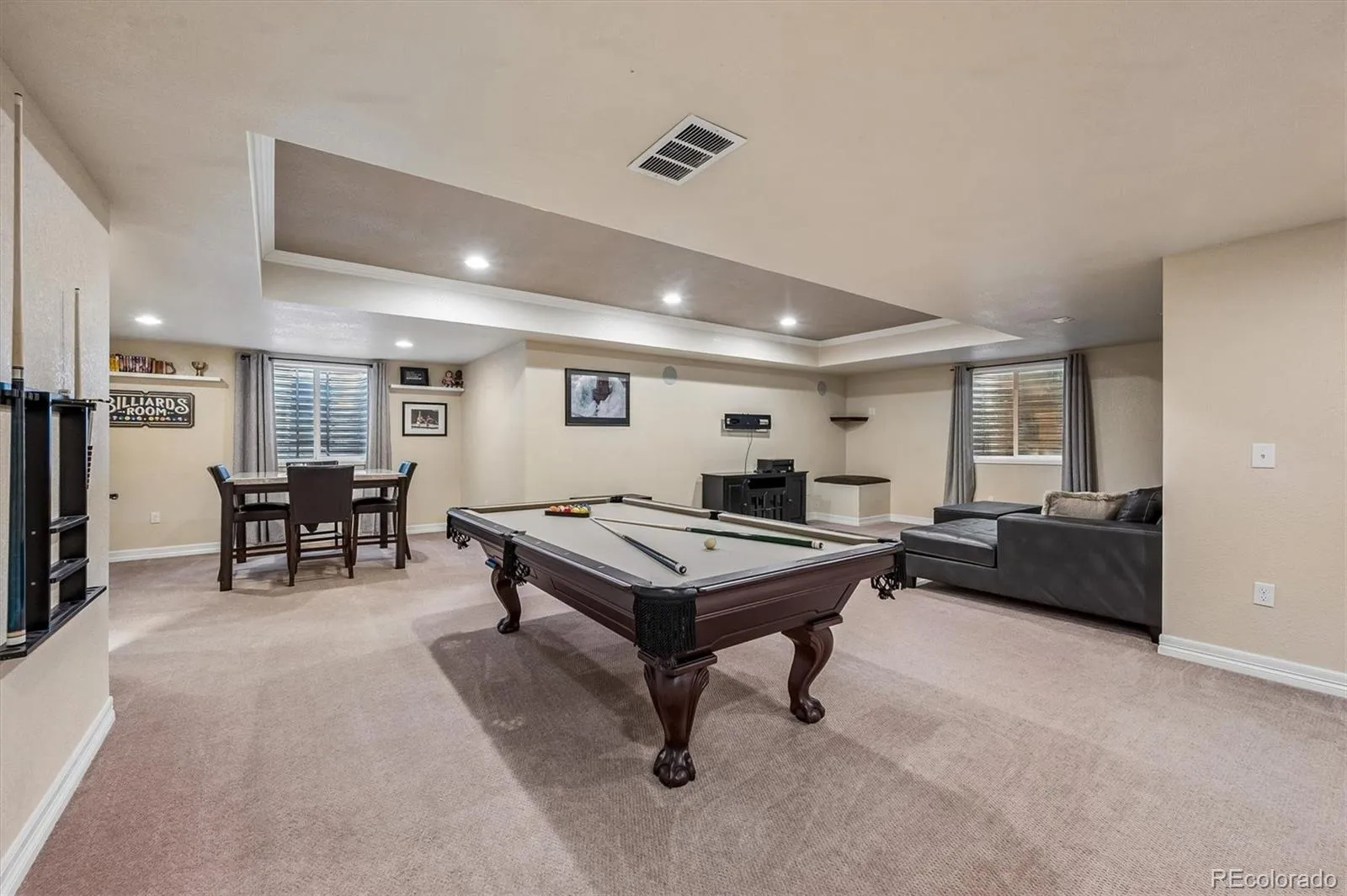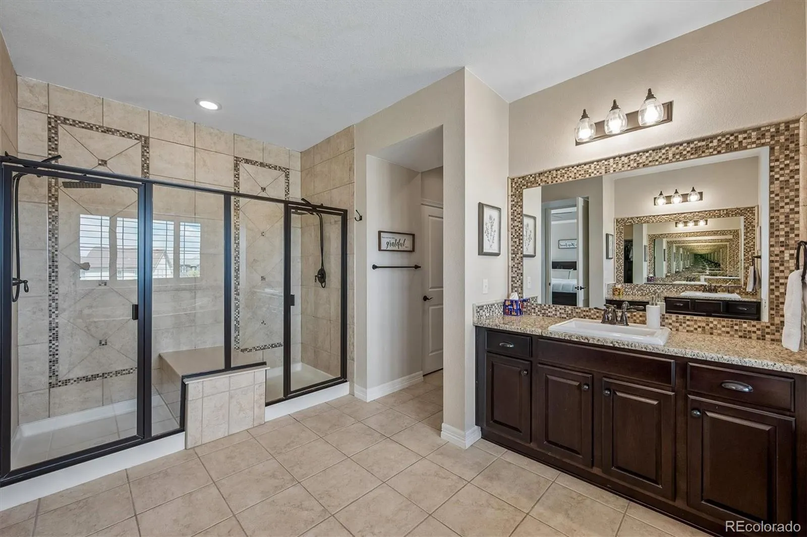 ~ Live Beautifully in this Stunning 5 Bedroom + 5 Bath Home that has been Impeccably Designed and Maintained ~ From the Front Door to the Covered Patio, this home feels like a Model Home with High End Finishes throughout, including Luxury Vinyl Floors, White Wood Shutters throughout, Slab Granite Counters, Upgraded Appliances, Fixtures and Lighting ~ The grand dining room greets you with a sweeping staircase and chandelier, and is accessible to the side patio with its 2-sided fireplace ~ Continue to the great room with windows looking to the back yard & patio space, and a fireplace flanked by built-in shelves ~ The well-appointed kitchen has everything a cook could need with a pantry, 2 wall ovens, 5-burner gas range with vent hood and plenty of cabinet and counter space ~ Friends & family can gather in the sunny breakfast nook, or relax at the huge island ~ The openness of the space and convenient access to the outdoor patio make entertaining a breeze and ensure the cook will never miss the party ~ The back yard has been thoughtfully designed for comfort with two patios, a water feature and flat lawn ~ Off the kitchen is a flex room used as an office, with french doors for privacy ~ Up stairs are 4 bedrooms, the laundry room and 3 bathrooms ~ The Primary Bedroom, with 5-piece ensuite, feels like an oasis, has its own balcony & fireplace ~ An enormous walk-in closet is reached through the stunning bathroom, which is equipped with a soaking tub, dual entry walk-in shower and separate vanities ~ Two secondary bedrooms each have good sized closets, large windows and share a full bath between them, while the other bedroom has its own ensuite ~ The finished basement has room for gaming or gathering, along with a wet bar ~ Another bedroom and bathroom, plus 2 storage rooms, round out this floor ~ The attached garage has 3 total spaces, windows, wall-mounted televisions and built-in storage ~ Home is close to schools & parks – Set a showing today and see it for yourself!