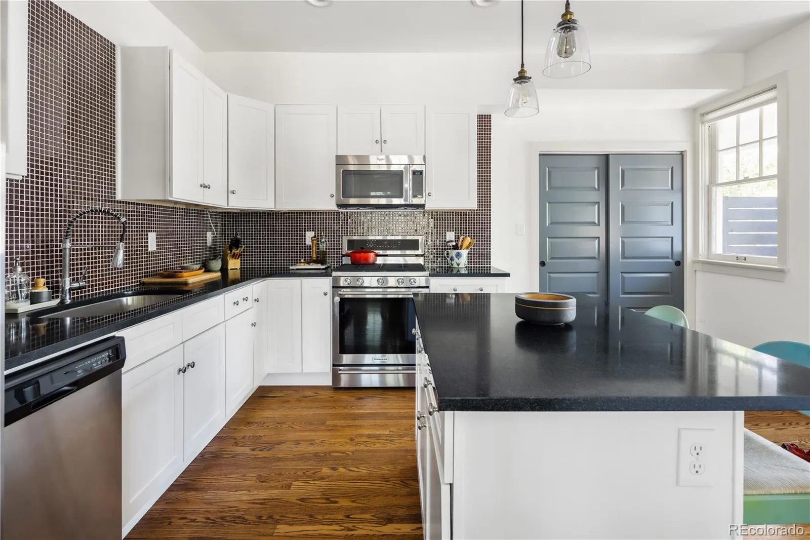 Located along a quiet stretch of 16th Avenue in South City Park, this home earns its character honestly. Original windows frame light at every hour, and the craftsmanship is the kind developers and flippers no longer value. The floor plan flows naturally from a generous living room through a defined dining space and into the kitchen, with a half bath, pantry, and large closet that address storage needs. Upstairs includes two ensuite bedrooms with a sunlit landing between them that can serve as the perfect desk or reading nook. The fully finished basement spans the footprint of the property and includes another full bathroom to accompany a potential third bedroom or offering flexibility for guests, hobby or workspace. Have your morning coffee on the east-facing front patio, waving hello to your friendly neighbors. Spend evenings in the beautifully landscaped west-facing backyard anchored by a mature ash tree that perfectly shades the roof from strong afternoon sun. Situated just one block between City Park and the greatest stretch of East Colfax, you have the best of city living at your doorstep. Bakeries, bars, restaurants and iconic Denver destinations are all within walking distance. This is a rare address where the neighborhood quality, character, and history match the home.
