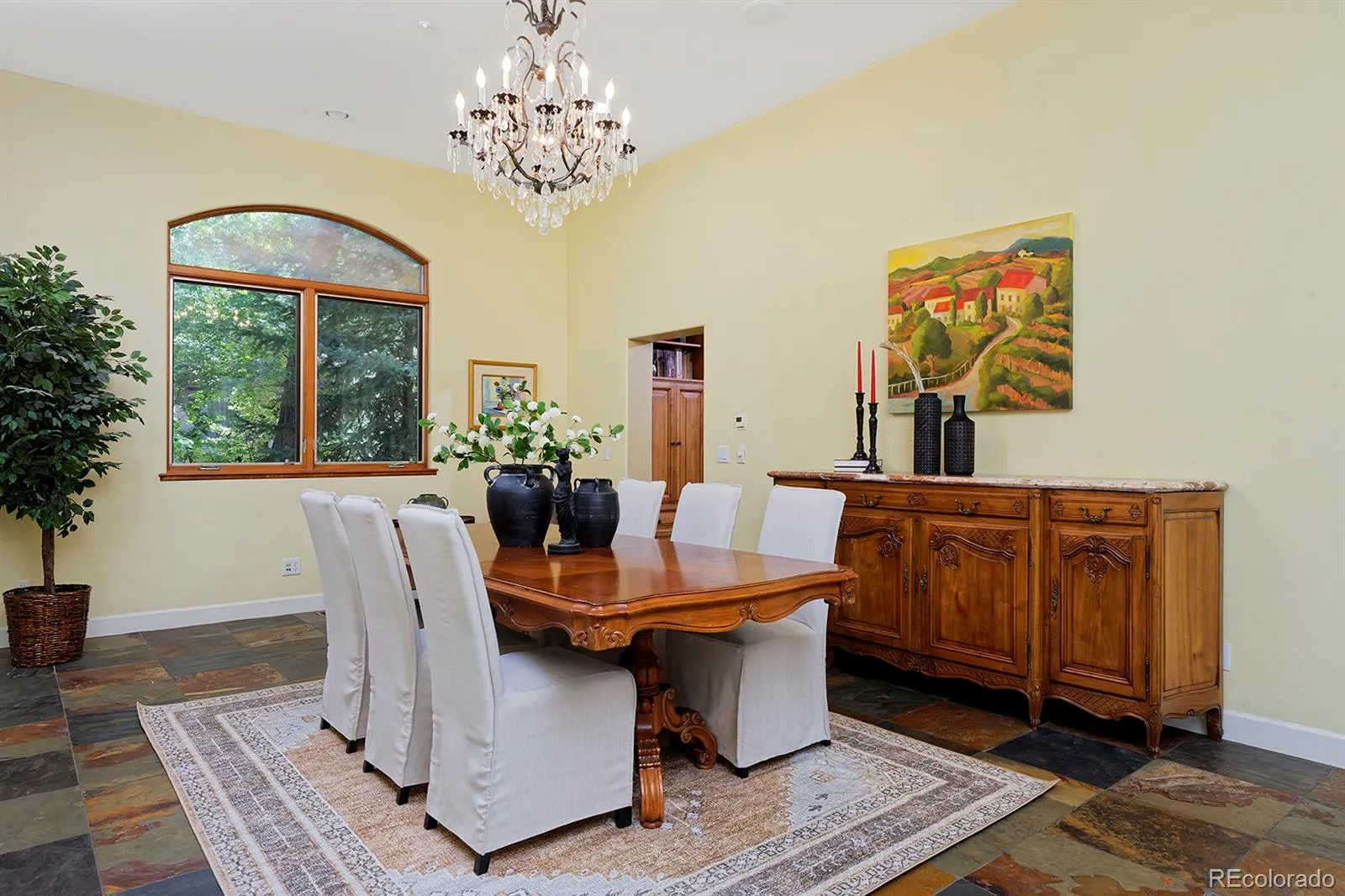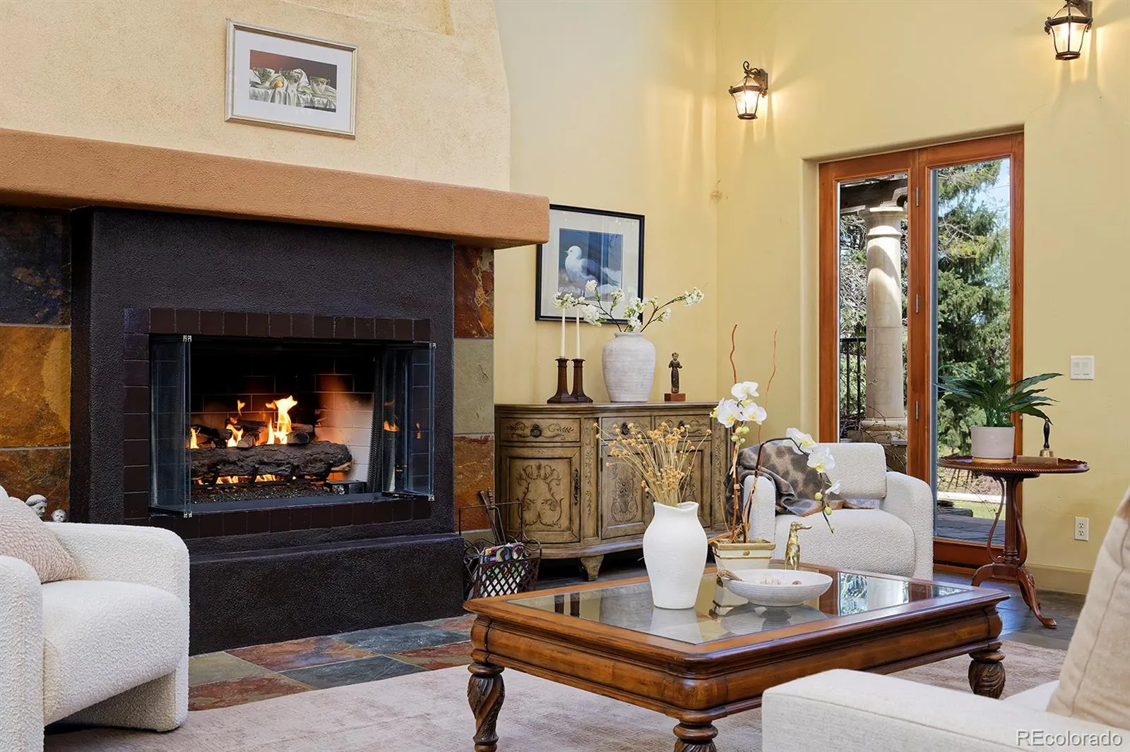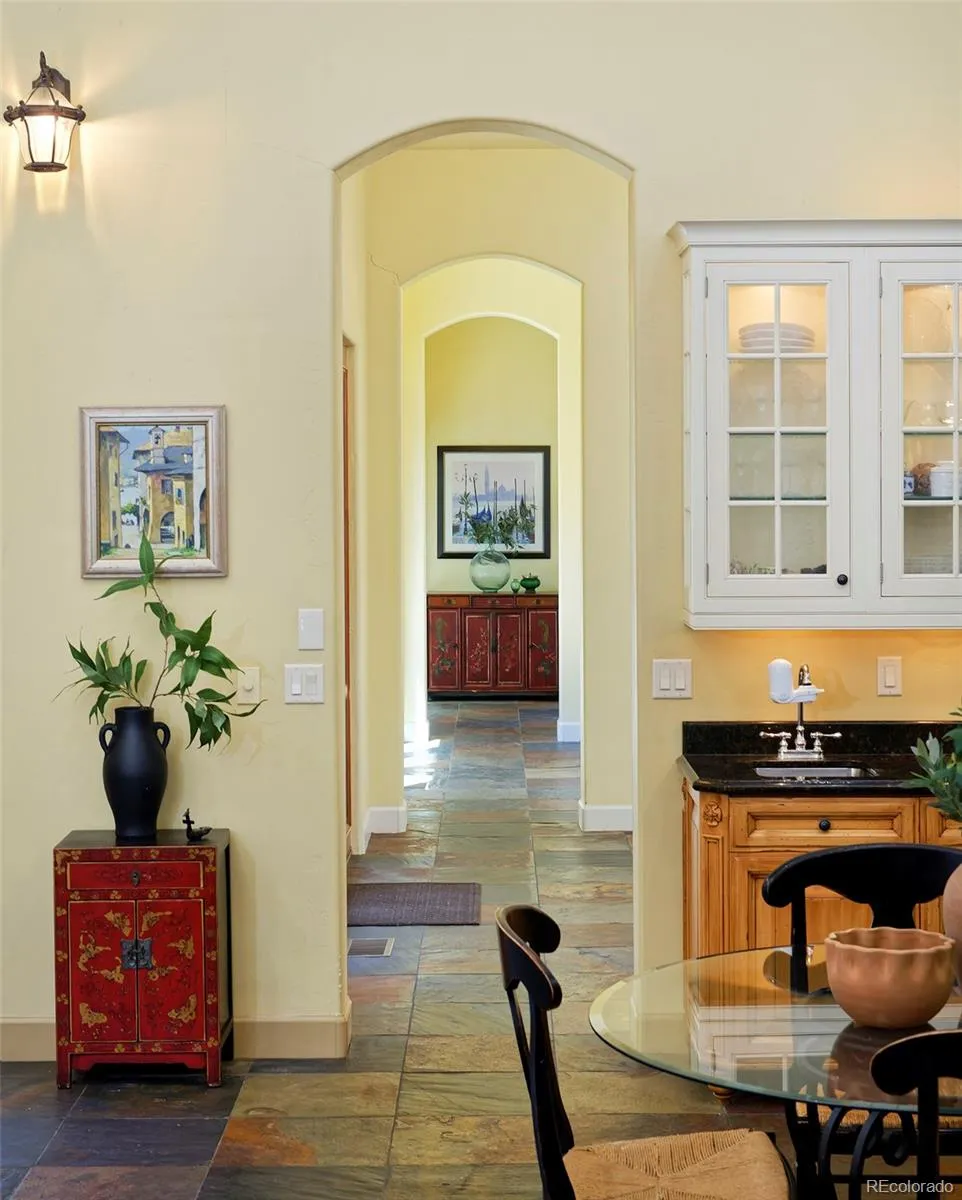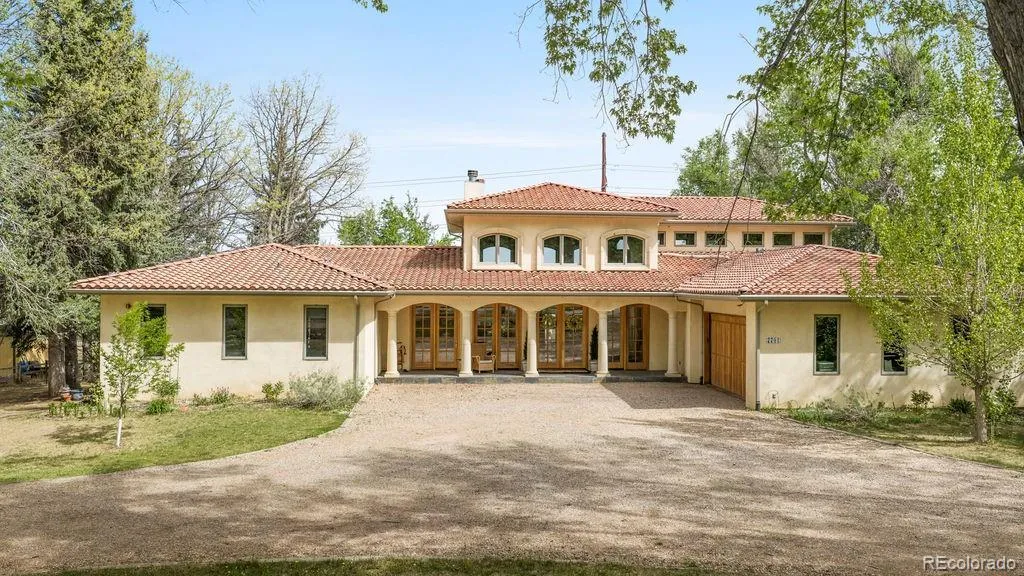 This Mediterranean-villa-inspired property is the kind of home where the good life just seems to grow and grow—much like the 60-year-old Italian grapevines that flourish here, surrounded by beauty on nearly an acre of peaceful, private land in an exclusive enclave with Flatirons views. Each time you return to your circular drive, feel yourself swept away by the breathtaking architecture: tiled rooflines, classic stucco, and pretty pergolas—all backing to quiet greenbelt. Inspired by the owners’ two decades in Europe, this home’s elegance is unmatched: from the 22-foot ceilings, arching windows and a two-story grand fireplace in the great room to the spectacular kitchen where painted French tiles form a scene of the Provençal countryside beneath a showstopping carved-wood hood. Imagine the unforgettable get-togethers you can host with three ovens, built-in Gaggenau steamer, a dedicated baking station, a warming drawer and Viking appliances. Gather in the spectacular dining room or fling open the 8-foot French doors to the back courtyard that’s like something out of Eden with trailing vines, fruit trees, and fragrant evergreens. When downtime is in order, your private primary wing awaits—a sprawling bedroom, luxury bath, and a sunroom anchored by a ficus tree that grows organically into the space! The opposite wing is just as welcoming, with a cozy living room, beautiful secondary bedrooms and baths, and access to a one-bedroom apartment in the walkout basement, ready to rent or convert back to guest quarters or an artist studio with the single turn of a lock. Enjoy incredible energy efficiency thanks to a new HVAC and thermal subflooring that saves hundreds on heating, plus private well- and city-sourced water, a five-bedroom septic system, and prewiring for security and whole-home audio. Consider this your effortless European escape, moments from Boulder, Louisville and Lafayette, with proximity to trails and an utterly serene rural location with views.