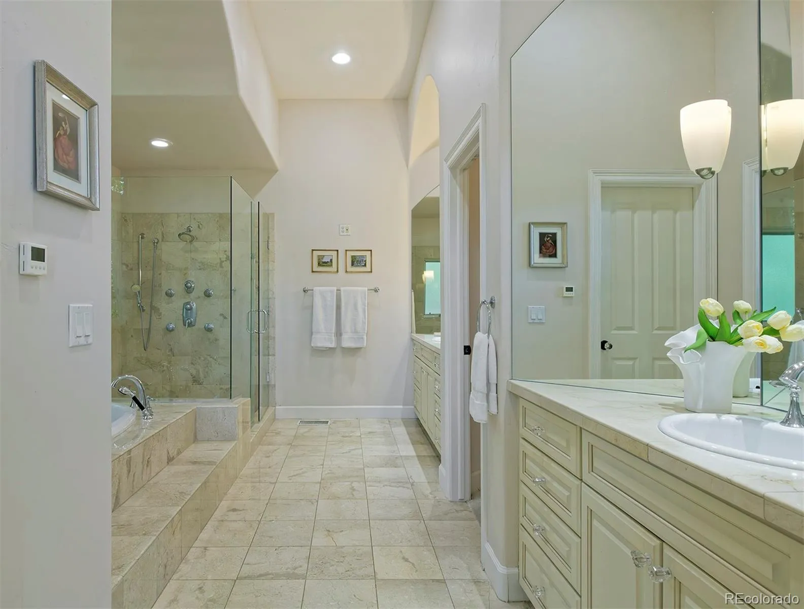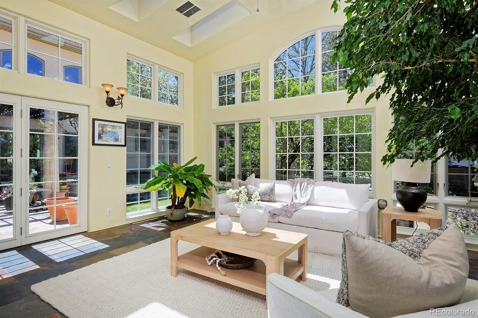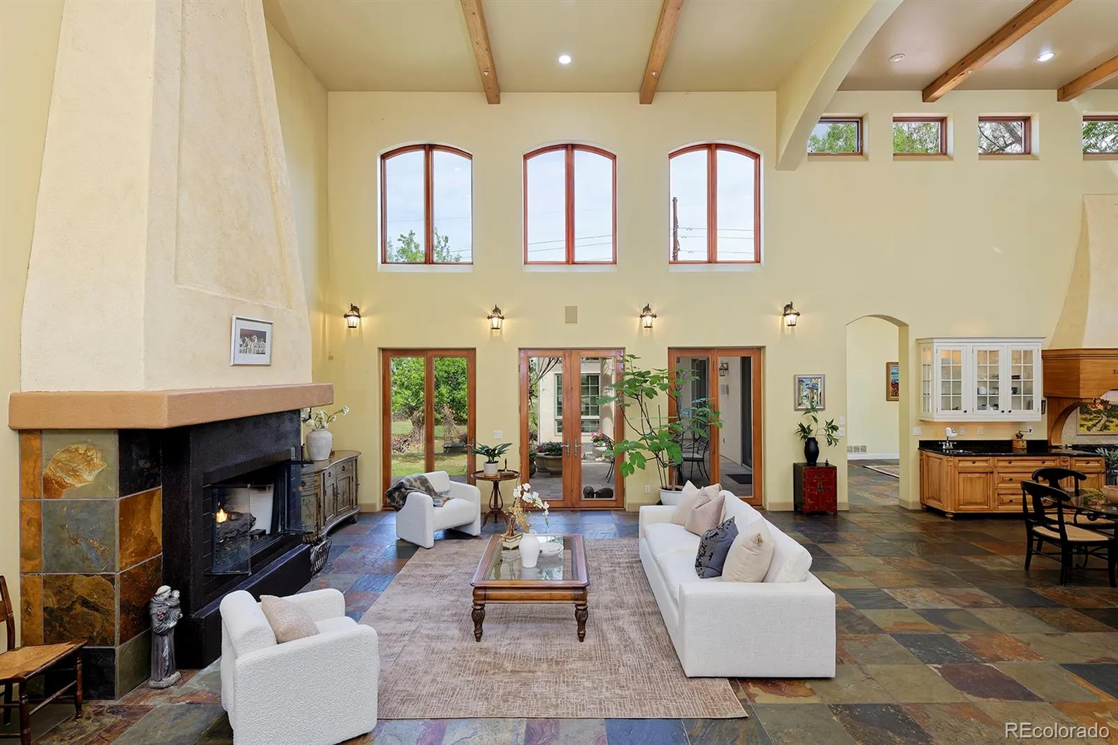 This Mediterranean-villa-inspired property is the kind of home where the good life just seems to grow and grow—much like the 60-year-old Italian grapevines that flourish here, surrounded by beauty on nearly an acre of peaceful, private land in an exclusive enclave with Flatirons views. Each time you return to your circular drive, feel yourself swept away by the breathtaking architecture: tiled rooflines, classic stucco, and pretty pergolas—all backing to quiet greenbelt. Inspired by the owners’ two decades in Europe, this home’s elegance is unmatched: from the 22-foot ceilings, arching windows and a two-story grand fireplace in the great room to the spectacular kitchen where painted French tiles form a scene of the Provençal countryside beneath a showstopping carved-wood hood. Imagine the unforgettable get-togethers you can host with three ovens, built-in Gaggenau steamer, a dedicated baking station, a warming drawer and Viking appliances. Gather in the spectacular dining room or fling open the 8-foot French doors to the back courtyard that’s like something out of Eden with trailing vines, fruit trees, and fragrant evergreens. When downtime is in order, your private primary wing awaits—a sprawling bedroom, luxury bath, and a sunroom anchored by a ficus tree that grows organically into the space! The opposite wing is just as welcoming, with a cozy living room, beautiful secondary bedrooms and baths, and access to a one-bedroom apartment in the walkout basement, ready to rent or convert back to guest quarters or an artist studio with the single turn of a lock. Enjoy incredible energy efficiency thanks to a new HVAC and thermal subflooring that saves hundreds on heating, plus private well- and city-sourced water, a five-bedroom septic system, and prewiring for security and whole-home audio. Consider this your effortless European escape, moments from Boulder, Louisville and Lafayette, with proximity to trails and an utterly serene rural location with views.