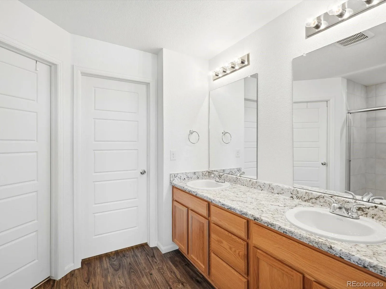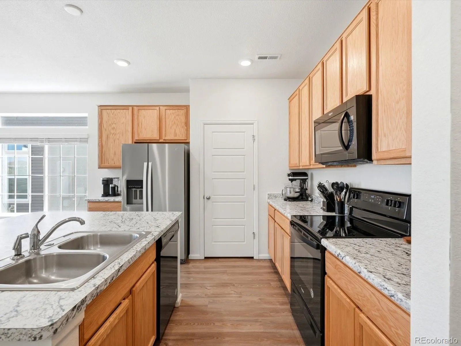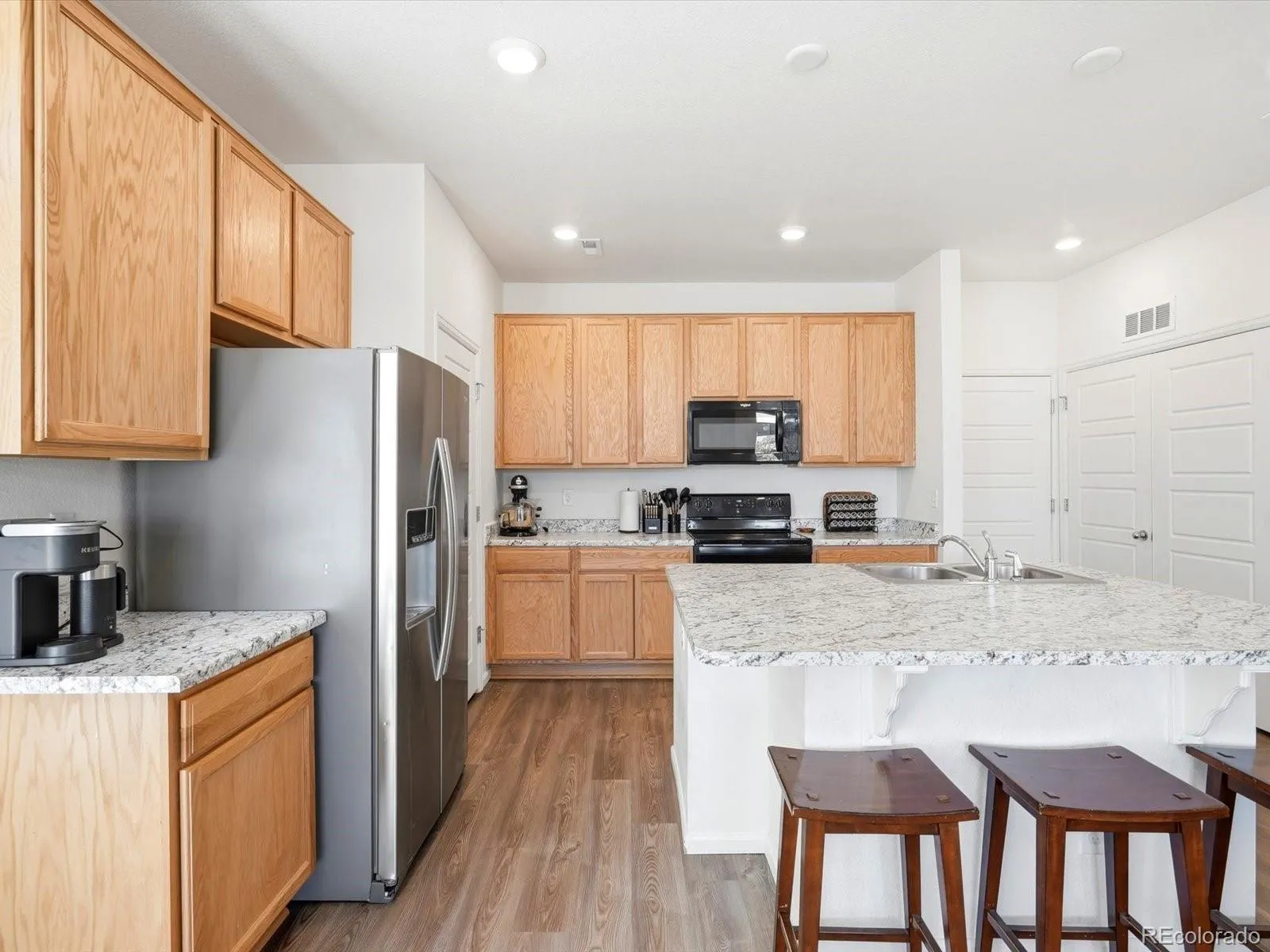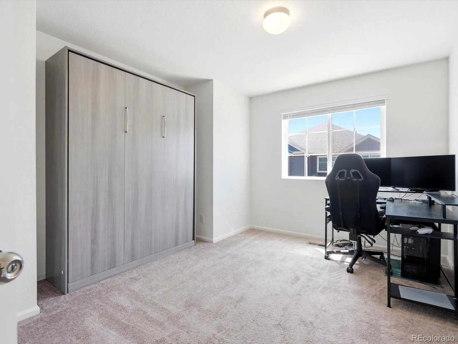 Welcome to low-maintenance living that actually lives big. This like-new 3 bed, 3 bath half duplex in Reunion blends modern design with thoughtful functionality at every turn. Step onto the covered front porch and into a bright, open main level filled with natural light, high ceilings, and durable LVP flooring. The spacious living room flows seamlessly into the dining area and large eat-in kitchen, complete with a generous pantry, like-new appliances (yes, they stay), and plenty of room to gather, host, or just spread out. A convenient powder bath, utility closet with newer systems, and a versatile under-stair nook – perfect for a bar, pet space, or extra storage – round out the main floor. Upstairs, the massive primary suite truly delivers with room to breathe and then some, featuring a dedicated flex space ideal for a work-from-home setup, cozy reading corner, or creative zone. The en-suite bathroom offers dual vanities, a private toilet room, and a spacious walk-in closet that actually fits your life. Two additional bedrooms are well-sized and flexible – perfect for guests, a nursery, or office – and are supported by a full bath with tub and a dedicated laundry room (washer and dryer included) right where you want it. Enjoy an attached 2-car garage, just 4 year old systems throughout, extra crawl space storage, and central AC for those Colorado summers. The low HOA (~$102/month) gives you access to a pool, fitness center, clubhouse, tennis courts, and more, while also covering grounds maintenance. All of this is just minutes to DIA, Barr Lake, trails, and is even walkable to local favorites like Reunion Coffee House. If you’ve been waiting for something that checks the boxes and feels good the second you walk in, this is it!