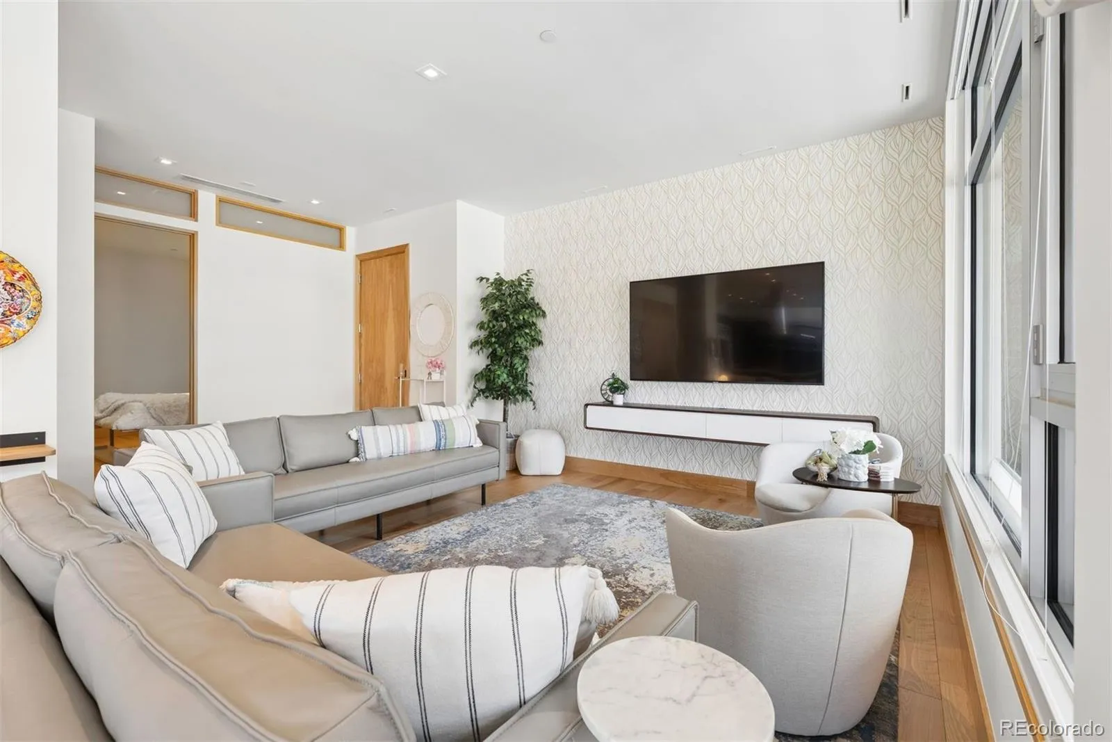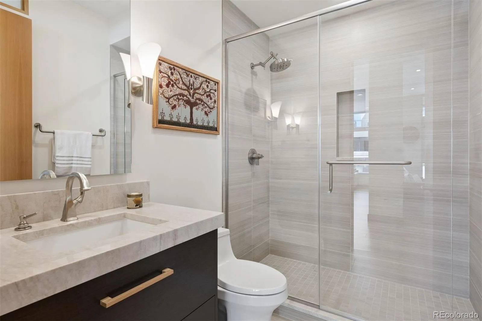 Step outside to a private balcony with mountain views — perfect for grilling and Colorado evenings. The building includes two private parking spots, a large storage unit, 24/7 security, and elevator access.
