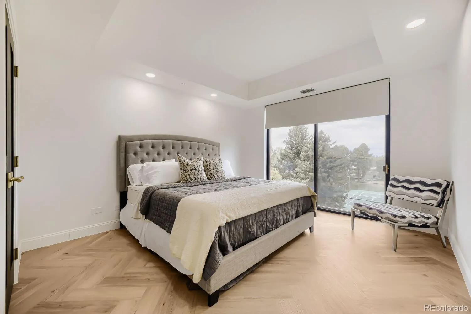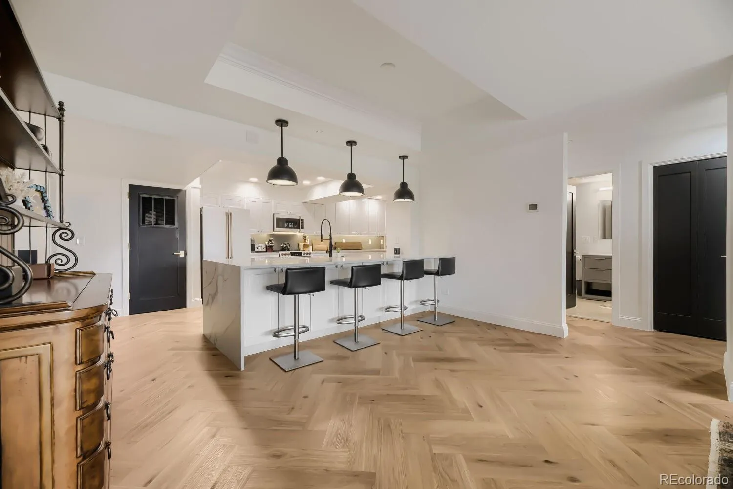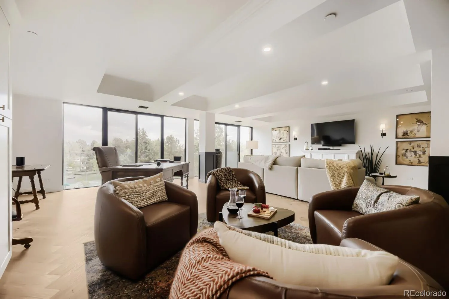 Low-maintenance, lock-and-go living in one of the most desirable buildings near Cherry Hills! This elegant, spacious, and thoughtfully designed residence offers beautiful mountain and sunset views through expansive floor-to-ceiling windows. Originally reimagined with a high-end, permitted renovation, the home features a magazine-worthy open-concept layout with herringbone flooring, a stunning chef’s kitchen with a quartz waterfall island, GE Café appliances, custom cabinetry, and designer finishes throughout.