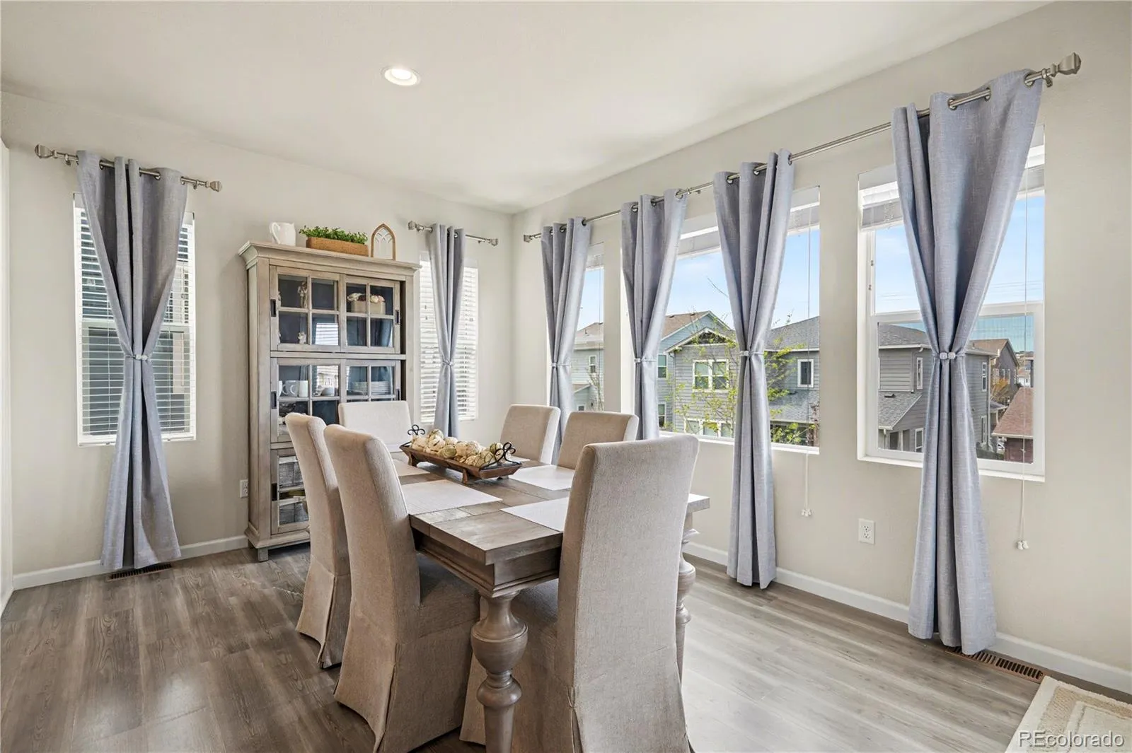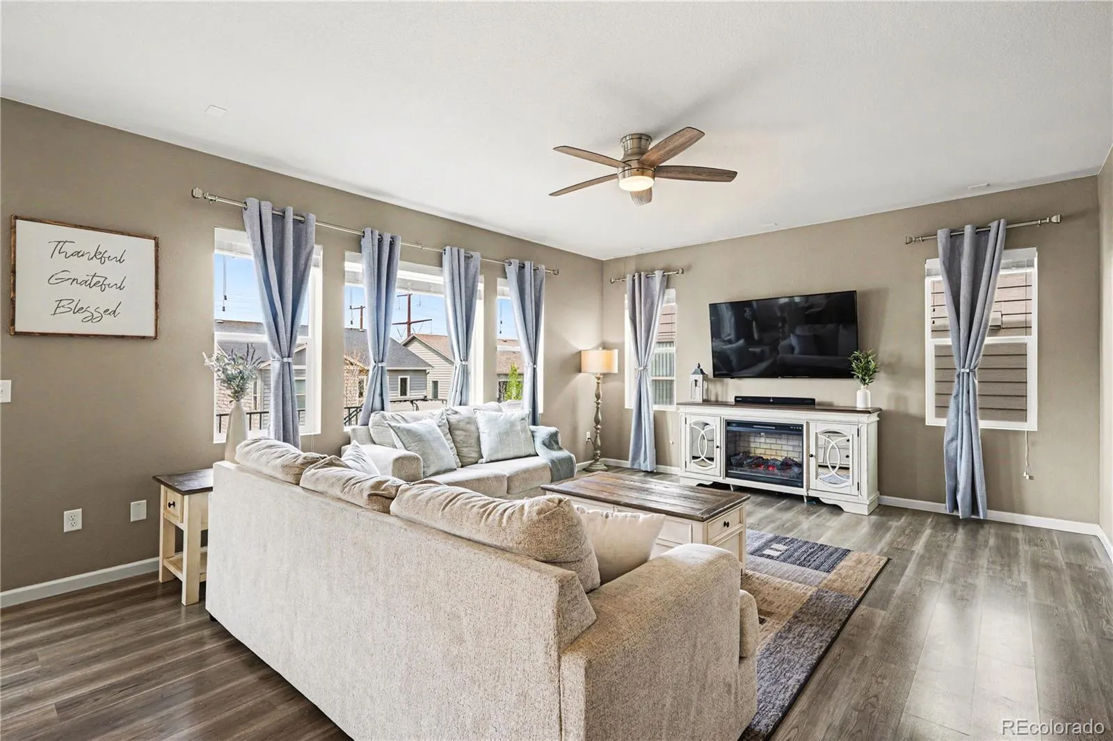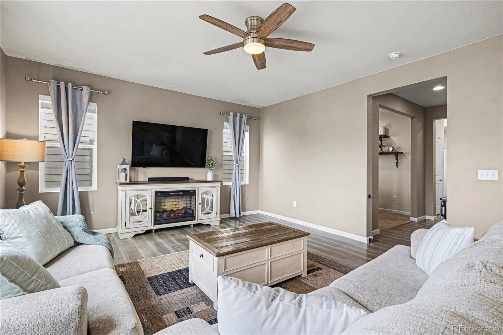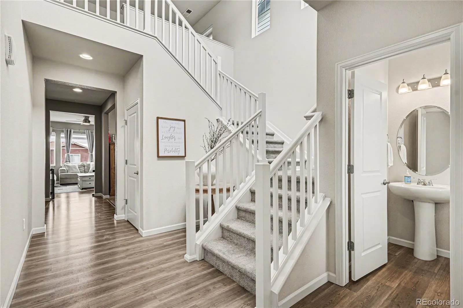 Step into a home that blends comfort, style, and everyday ease. From the moment you enter, you’re greeted by soaring ceilings, abundant natural light, and beautiful vinyl flooring that flows throughout the main level. A private office creates the ideal work-from-home space, while the inviting family room, complete with surround sound wiring and tons of natural light, is perfect for relaxing or entertaining. The dining area connects seamlessly to a standout kitchen designed for both function and gathering featuring quartz countertops, white cabinetry, stainless steel Whirlpool appliances with double ovens and a gas cooktop, a spacious island, and a pantry. A convenient mudroom and half bath complete the main level. Upstairs, unwind in the peaceful primary suite with stunning mountain views, a walk-in closet, and a thoughtfully designed en suite bath with dual sinks, granite counters, and a tiled shower. Two additional bedrooms offer comfort and versatility, complemented by a bright loft that can adapt to your lifestyle, whether as a second living space, playroom, or creative retreat. The upper-level laundry room adds ease to daily living. The oversized two-car garage provides ample storage, while the unfinished walk-out basement offers room to grow and make it your own. Outside, enjoy a covered front porch and a fully fenced professionally landscaped backyard with a composite deck, perfect for quiet mornings or hosting under Colorado skies. Located in the sought-after Terrain community, you’ll enjoy access to scenic trails, parks, a clubhouse, pool, and vibrant community events. Even better, this home offers an assumable FHA loan at 3.875%, a rare opportunity in today’s market.