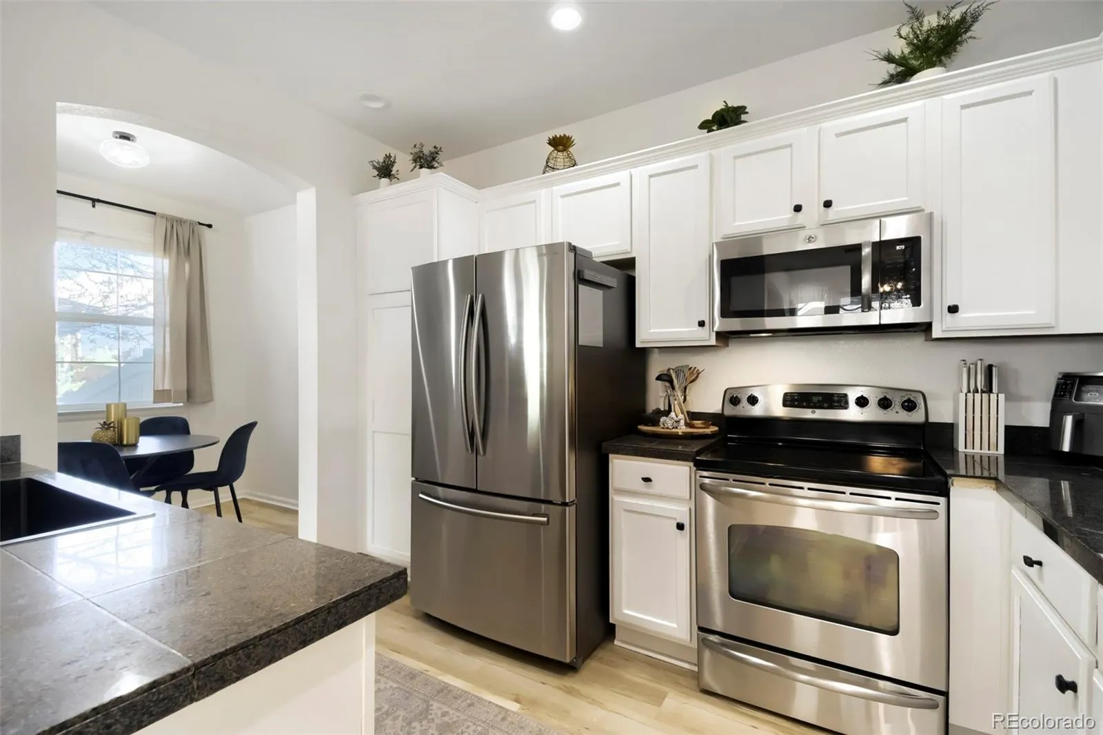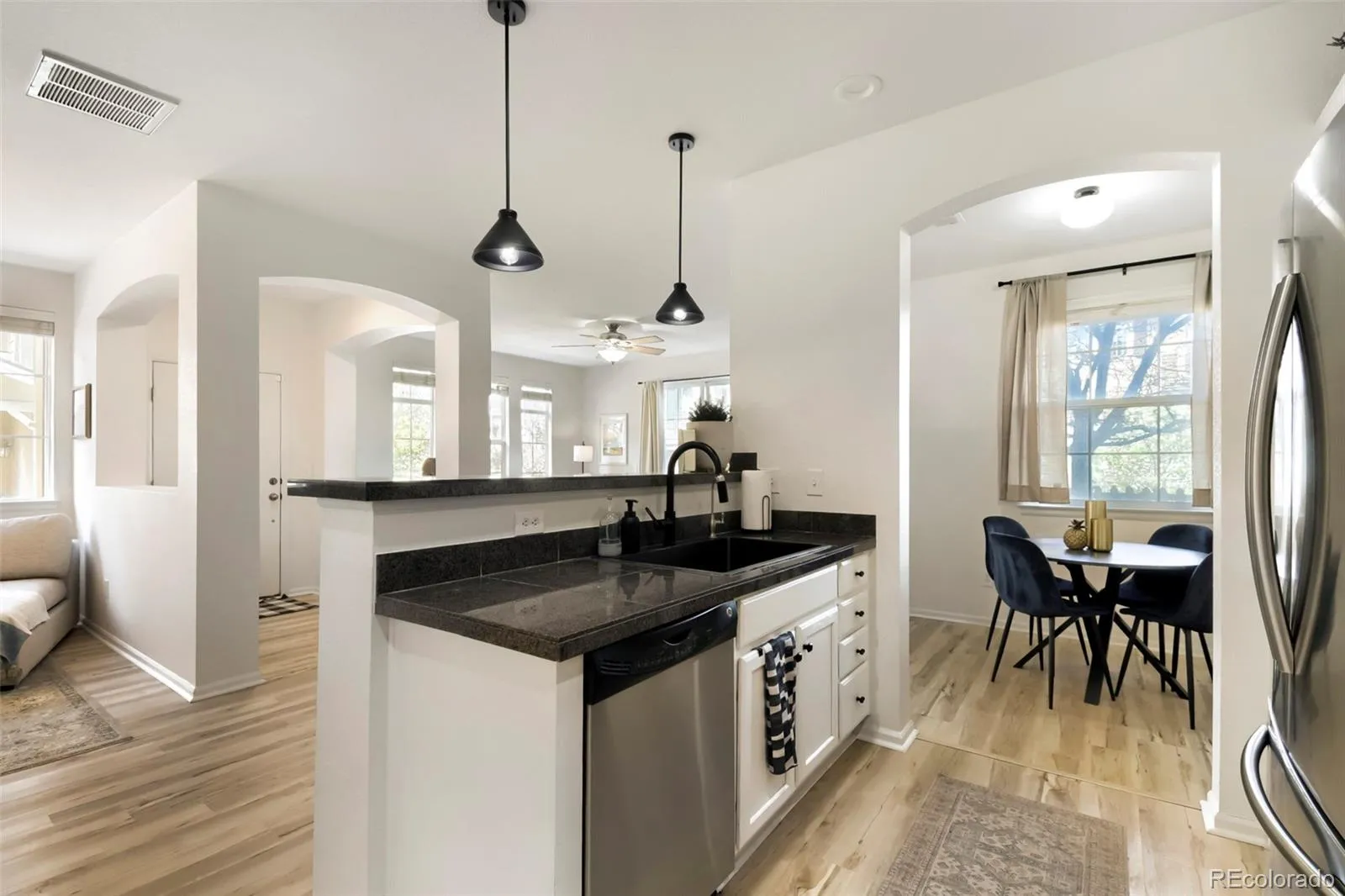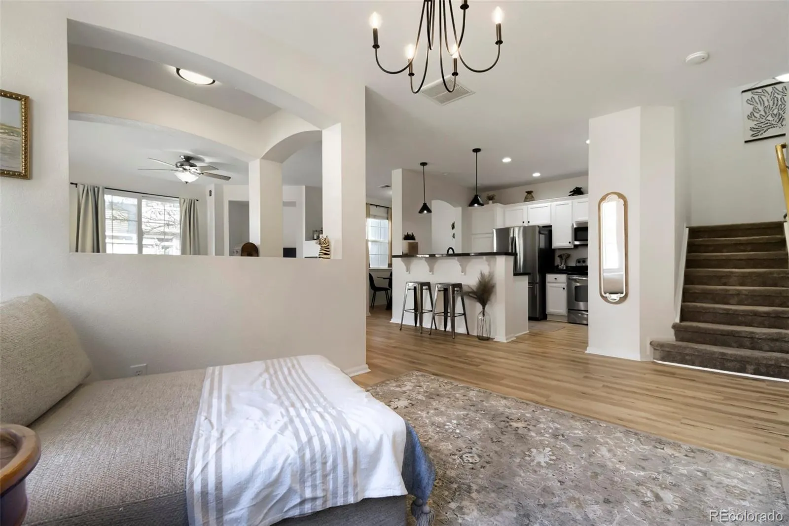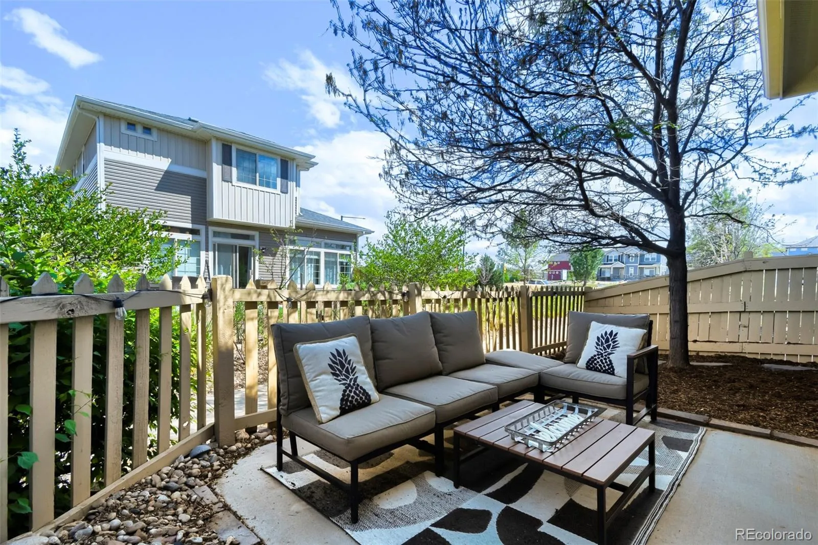 Welcome to this move in ready home in the heart of Reunion. This 3 bed, 3 bath end unit features an open floor plan, abundant natural light, a private outdoor living space, and attached 2 car garage. At its center is a spacious, eat-in kitchen with bar seating, stainless steel appliances and granite counters. The large family room, with a gas fireplace, is the perfect place to relax, gather and entertain. The dining room offers versatility and can also be used as a home office or den. Retreat upstairs to your generous sized primary suite that includes an ensuite 5-piece bath with a large soaking tub, dual vanity, and walk in closet. Just down the hall are two secondary bedrooms and a full bath. Updates include LVP flooring, carpet with upgraded padding, lighting fixtures, kitchen sink/faucet, interior paint, and whole house water filtration system. Main floor laundry includes the washer/dryer. You’re a short walk to all of the amenities including the Reunion Coffee House & Rec Center, outdoor pool, park, lake, and trails. Reunion is centrally located with easy access to major roadways and DIA. Schedule your showing today!