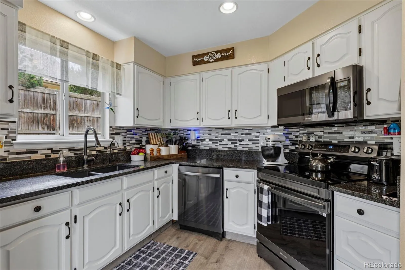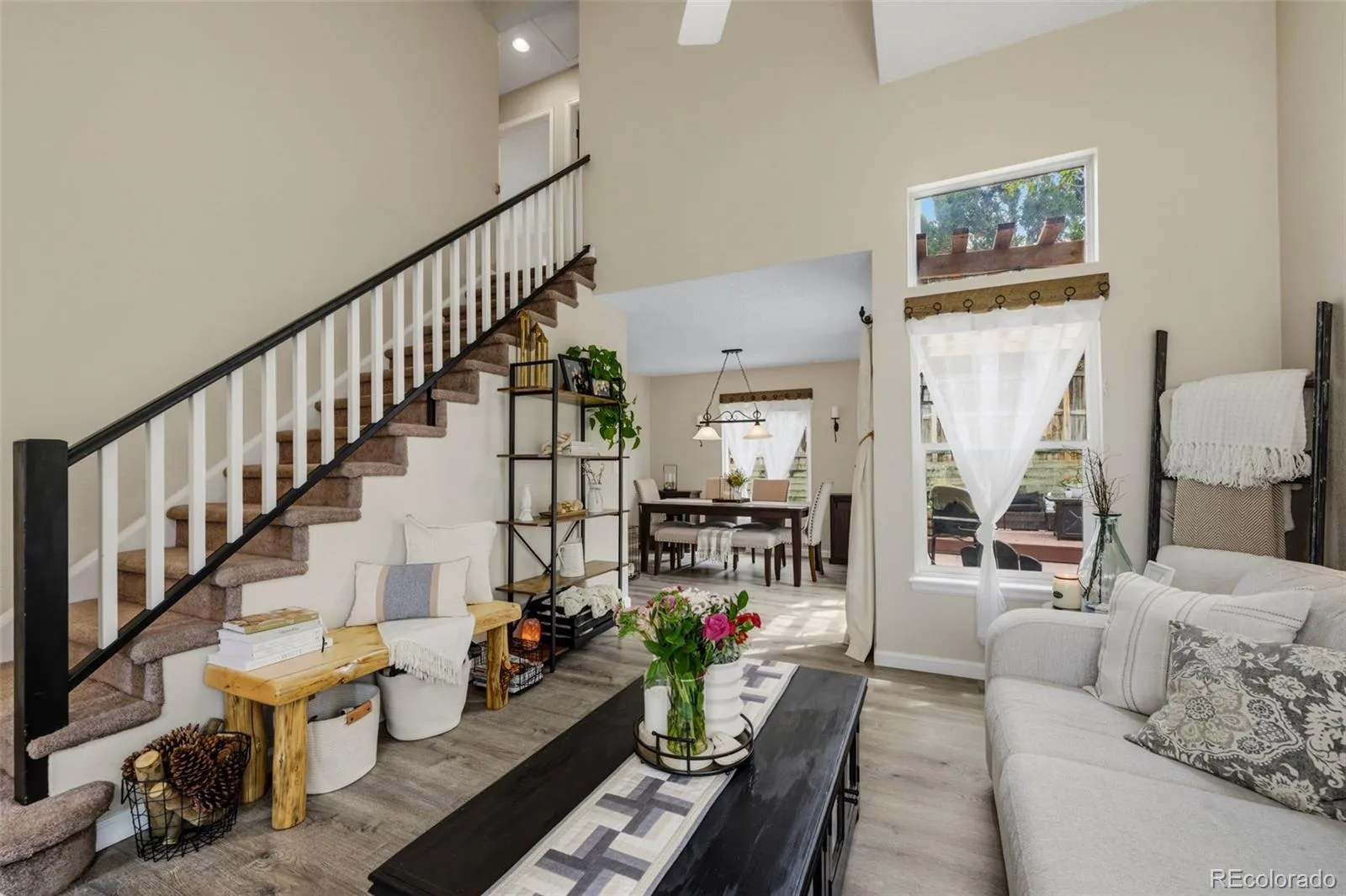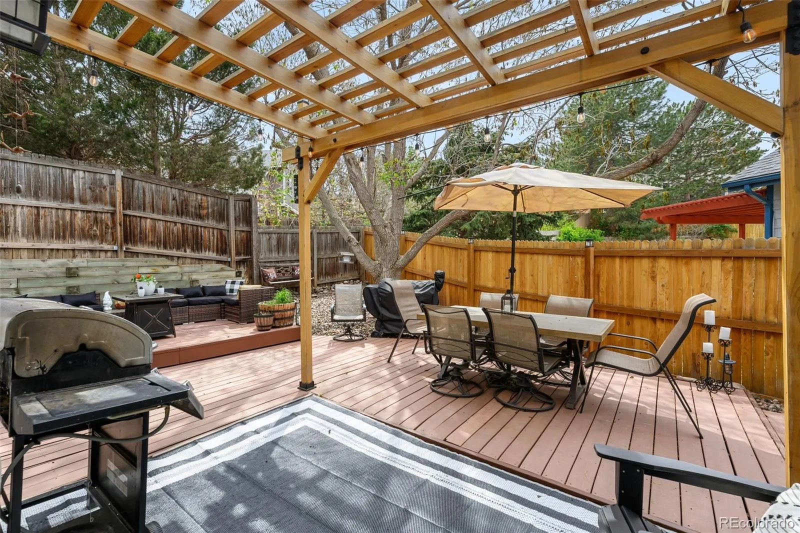 Welcome to this stunning home nestled in a quiet cul-de-sac in the desirable Roxborough neighborhood of Littleton. Boasting OVER 2,200 finished square feet, this beautifully maintained residence offers 4 bedrooms and 4 bathrooms with a bright, open floor plan and soaring vaulted ceilings. The updated kitchen features granite countertops, a stylish backsplash, and stainless steel appliances, seamlessly flowing into the main living spaces adorned with a modern color palette and luxury vinyl flooring. Enjoy abundant natural light throughout, along with a cozy family room complete with a gas log fireplace. The fully finished basement provides additional living space with a second family room, bedroom, and full bath—perfect for guests or multi-generational living. Step outside to a beautifully landscaped yard featuring a patio, retaining walls, established trees, low-maintenance artificial turf, and two storage sheds. Ideally located near Chatfield Lake, parks, and scenic walking trails, with convenient access to C-470 for an easy commute, this home truly has it all! *New Furnace 2024*New Windows 2009*New Roof 2018*New Luxury Vinyl Floors 2020*Exterior Paint 2023*Interior Paint 2020*Pergola and Artificial Turf 2022*Storm Door 2023*Refrigerator 2025*Stove 2024*Microwave and Dishwasher 2022*