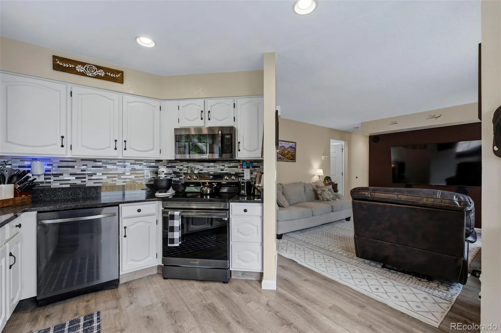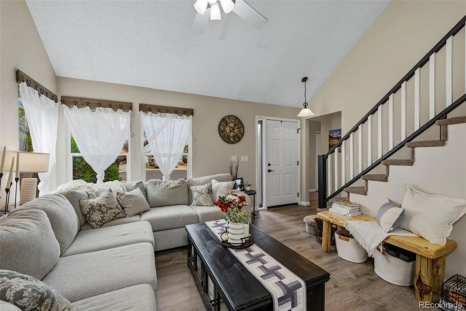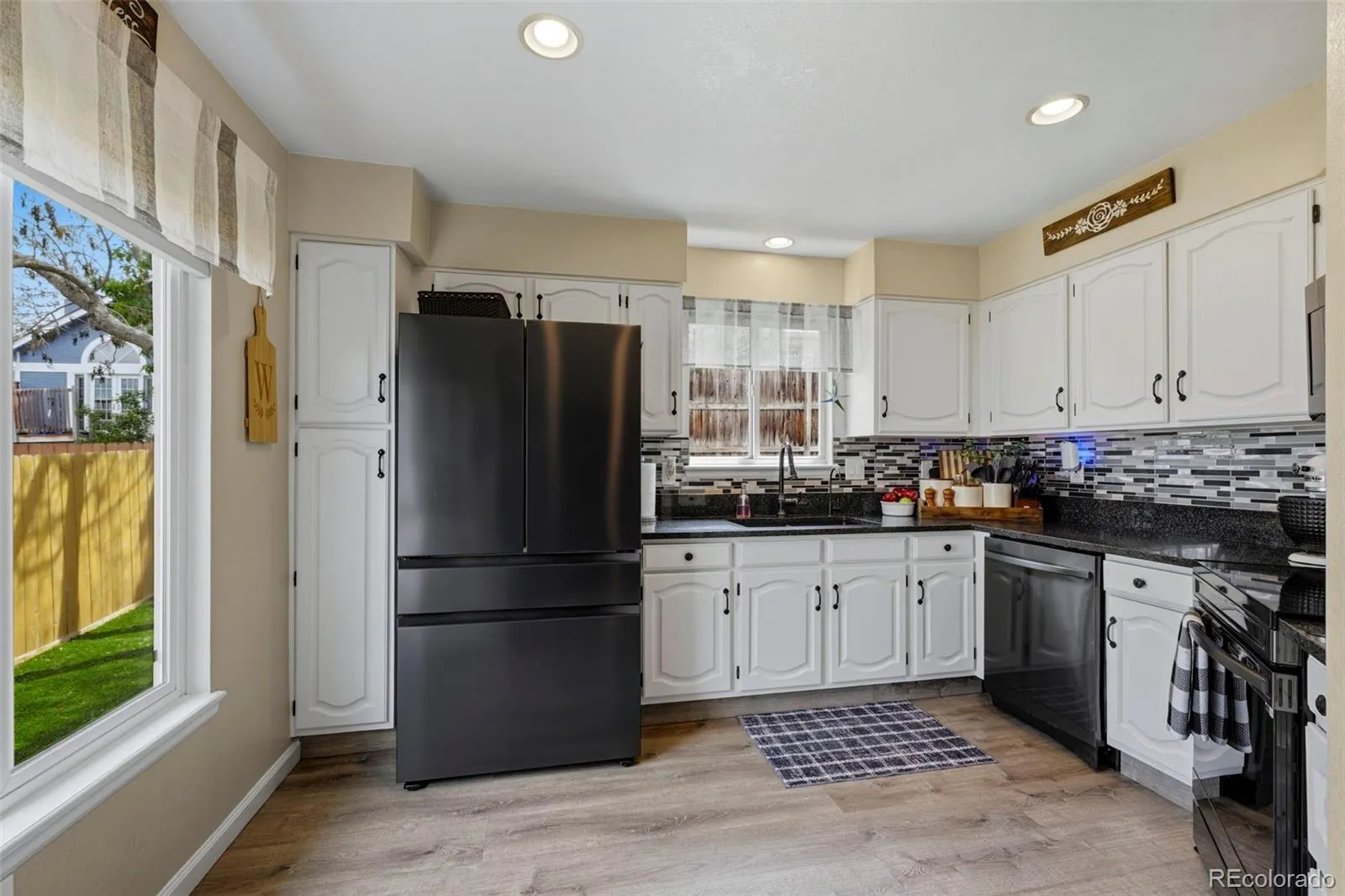 Welcome to this stunning home nestled in a quiet cul-de-sac in the desirable Roxborough neighborhood of Littleton. Boasting OVER 2,200 finished square feet, this beautifully maintained residence offers 4 bedrooms and 4 bathrooms with a bright, open floor plan and soaring vaulted ceilings. The updated kitchen features granite countertops, a stylish backsplash, and stainless steel appliances, seamlessly flowing into the main living spaces adorned with a modern color palette and luxury vinyl flooring. Enjoy abundant natural light throughout, along with a cozy family room complete with a gas log fireplace. The fully finished basement provides additional living space with a second family room, bedroom, and full bath—perfect for guests or multi-generational living. Step outside to a beautifully landscaped yard featuring a patio, retaining walls, established trees, low-maintenance artificial turf, and two storage sheds. Ideally located near Chatfield Lake, parks, and scenic walking trails, with convenient access to C-470 for an easy commute, this home truly has it all! *New Furnace 2024*New Windows 2009*New Roof 2018*New Luxury Vinyl Floors 2020*Exterior Paint 2023*Interior Paint 2020*Pergola and Artificial Turf 2022*Storm Door 2023*Refrigerator 2025*Stove 2024*Microwave and Dishwasher 2022*