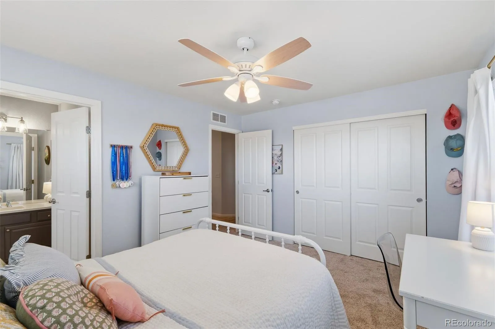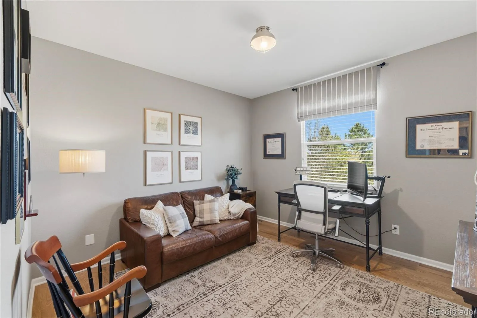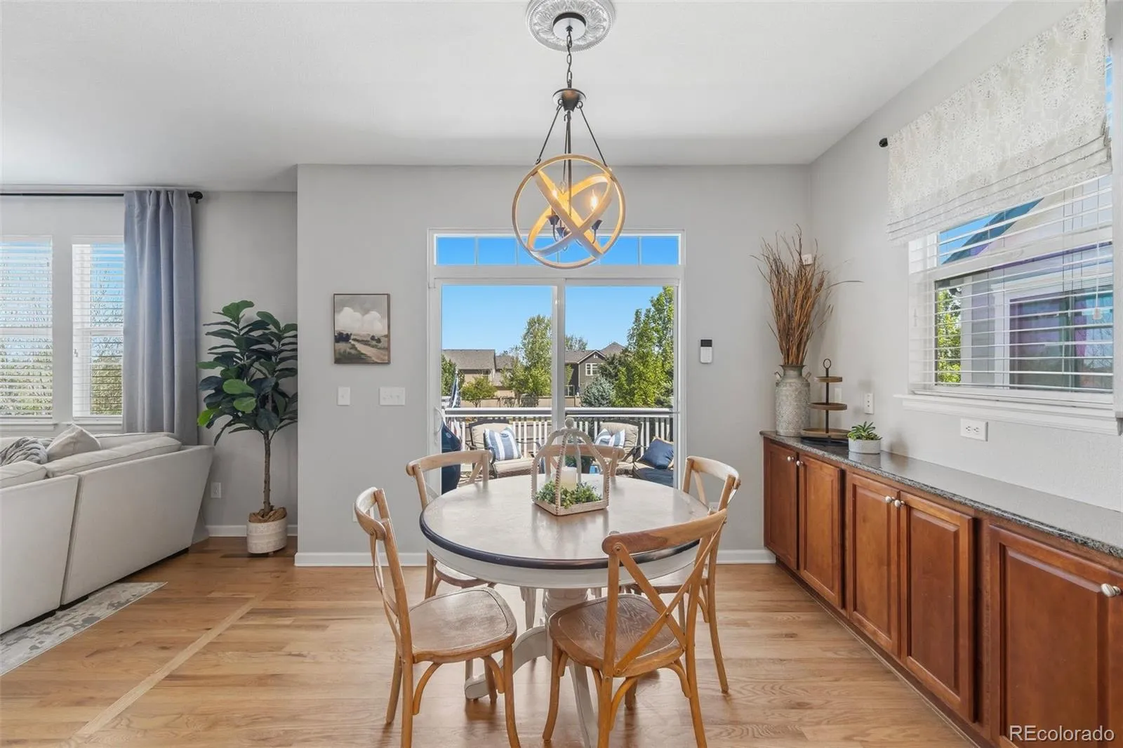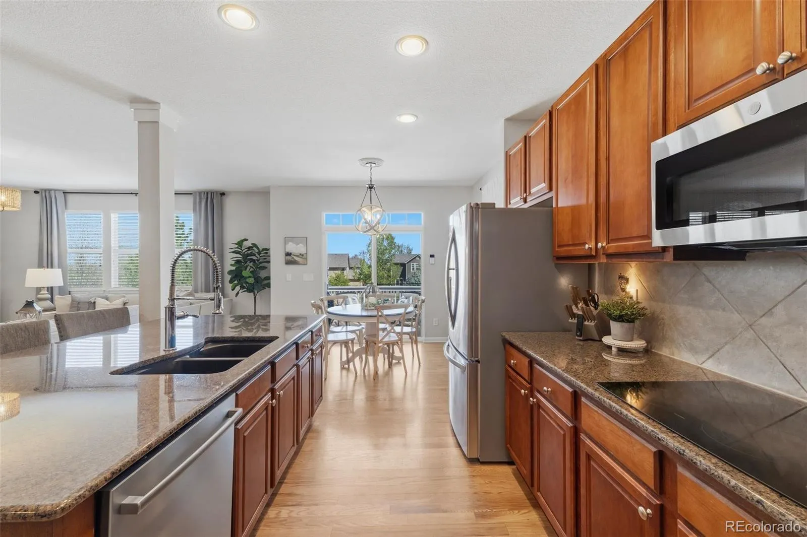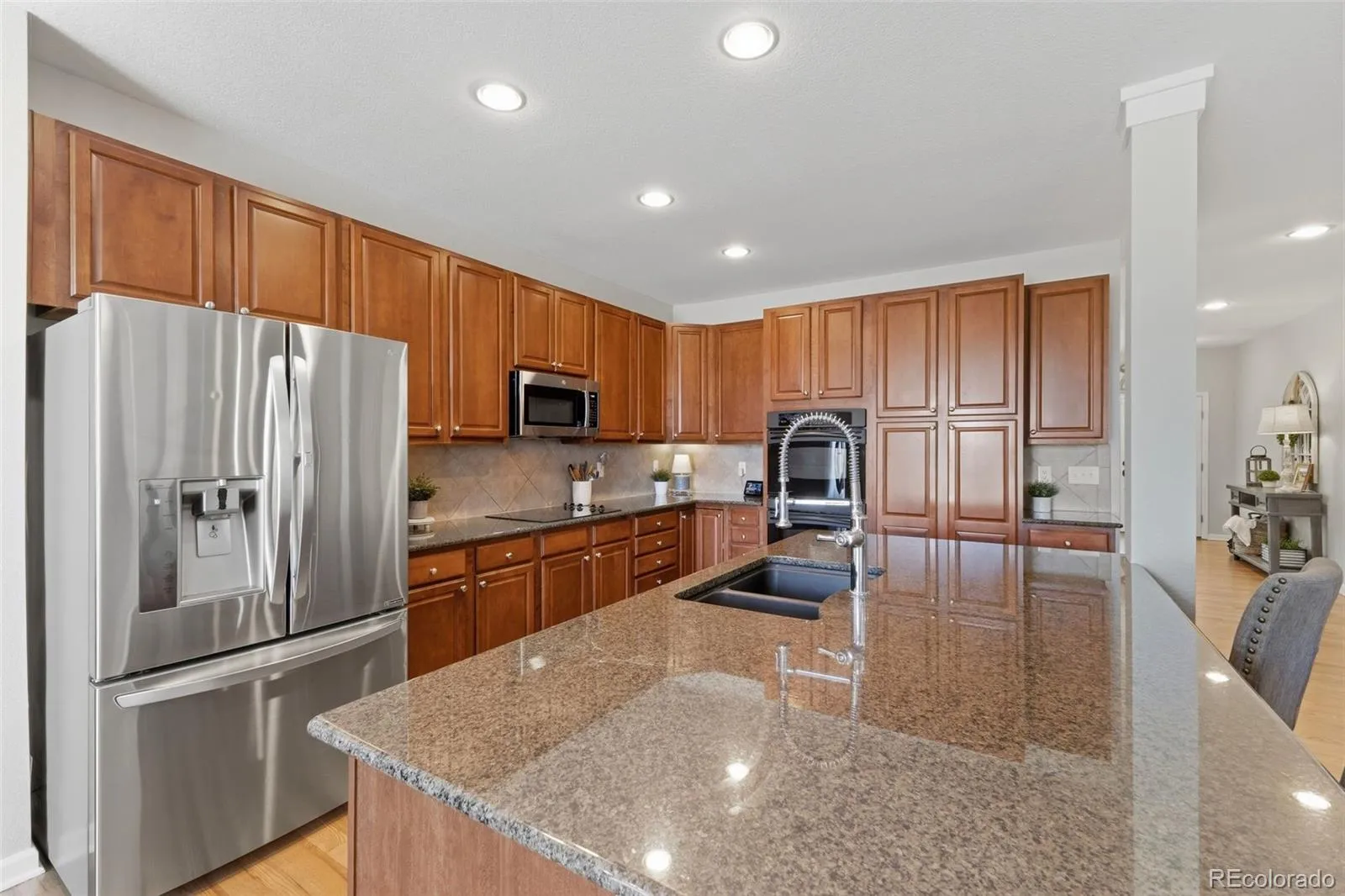 The is THE ONE you’ve been waiting for—where the moment you walk through the door, it simply feels like HOME. Welcome to this stunning 5-bedroom, 4.5-bath residence in the highly sought-after Canterberry neighborhood of Parker. Warm, hardwood floors greet you and set the tone for a home that is both elegant and inviting. Thoughtfully designed for everyday living and effortless entertaining, the spacious layout offers generous gathering areas, including a large kitchen that flows seamlessly into a cozy living room with a gas fireplace and direct access to the back deck—perfect for enjoying Colorado evenings overlooking one of the larger, beautifully maintained lots in the neighborhood. The main floor also features a dedicated office along with both a formal dining room and a comfortable eat-in kitchen space to suit any occasion. Upstairs, retreat to the expansive primary suite, highlighted by a striking tray ceiling and complemented by a luxurious five-piece bath and a large walk-in closet. Three additional bedrooms complete the upper level, including a private en-suite with its own 3/4 bath. All upstairs bathrooms have been thoughtfully updated with brand-new quartz countertops and modern faucets. The professionally finished walkout basement truly sets this home apart—offering a private guest bedroom and bathroom, a cozy second living area with fireplace, a large TV (included), a wet bar, and a versatile bonus room perfect for a second office, gym, or flex space. Large windows flood the space with natural light, creating an open and welcoming lower level, while the walkout basement seamlessly extends into the backyard—enhancing the home’s effortless indoor-outdoor flow. Located within walking distance to neighborhood schools and nestled on a quiet street, this home also features a three-car garage and an expansive driveway. Beautiful, functional, and filled with warmth—this is more than a house… it’s the place you’ve been waiting to call home.