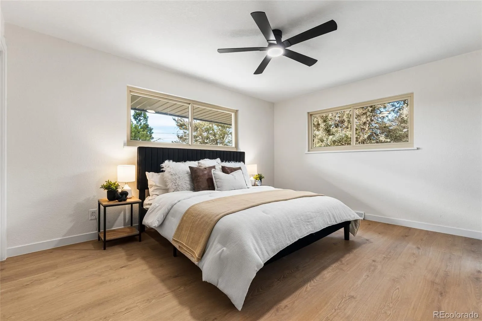 Oversized windows bathe the home in natural light while perfectly framing the stunning mountain views, creating a bright and inviting atmosphere throughout. Set on a beautifully landscaped .34-acre lot, the outdoor space offers privacy, mature greenery, and plenty of room to entertain, and take in unforgettable Colorado sunsets.