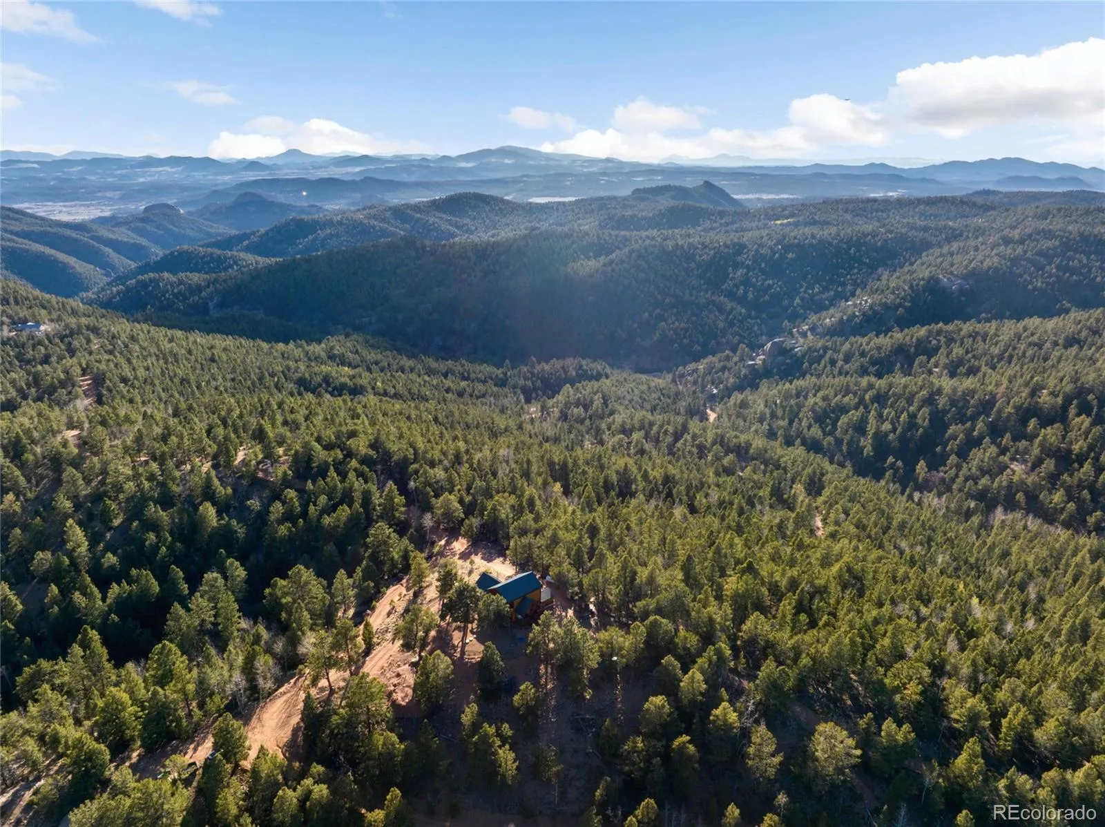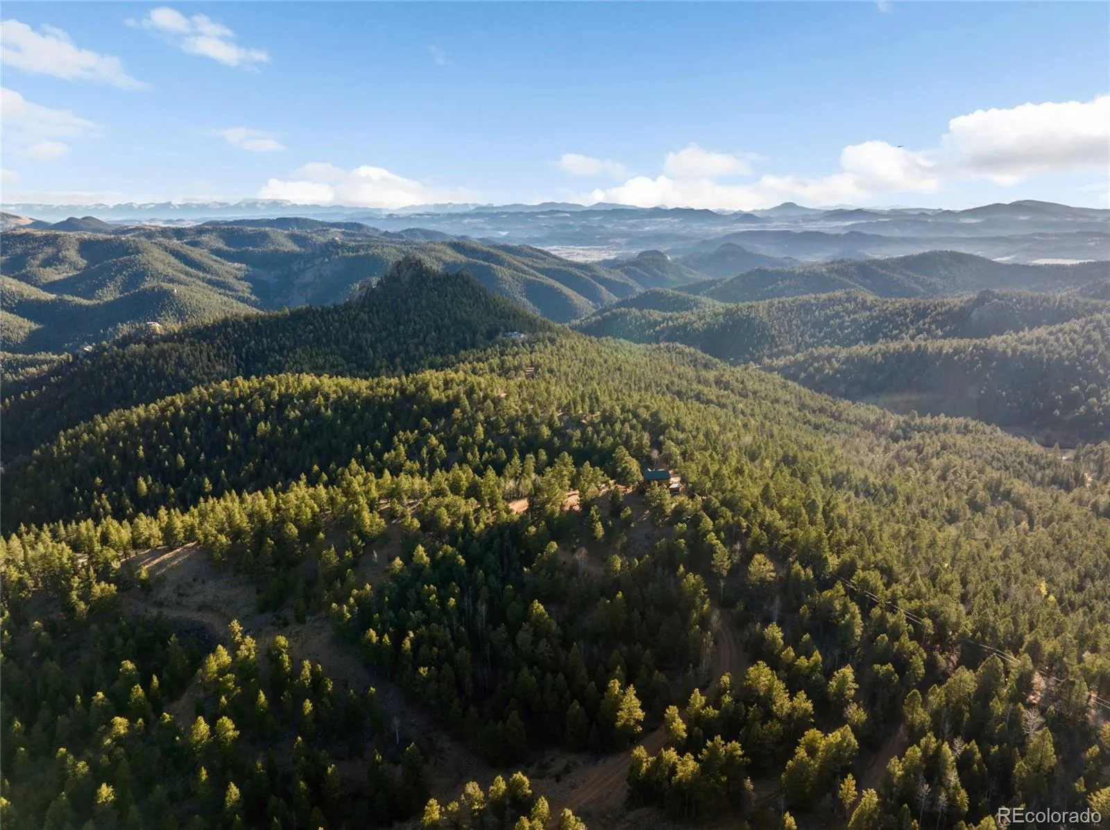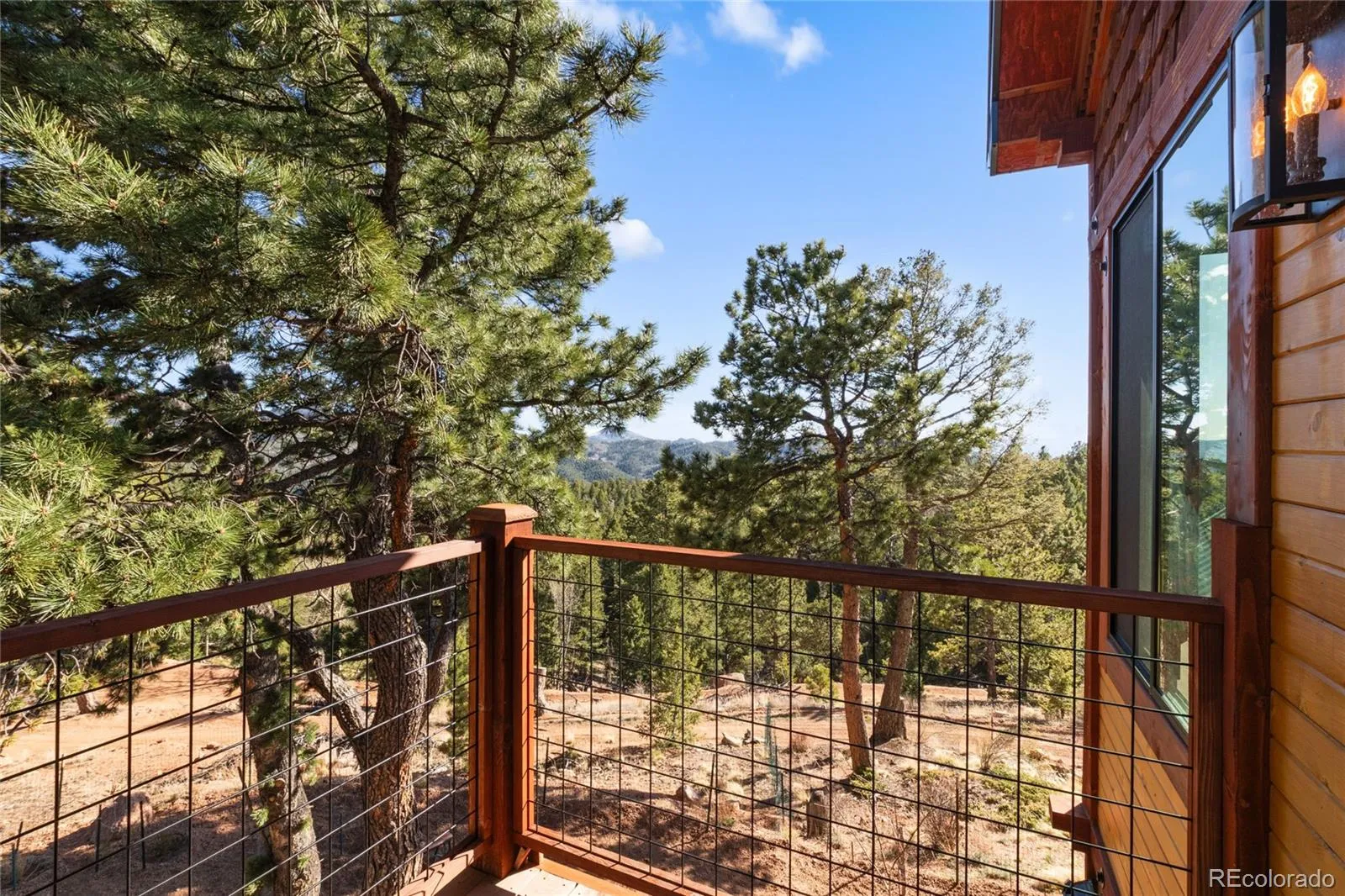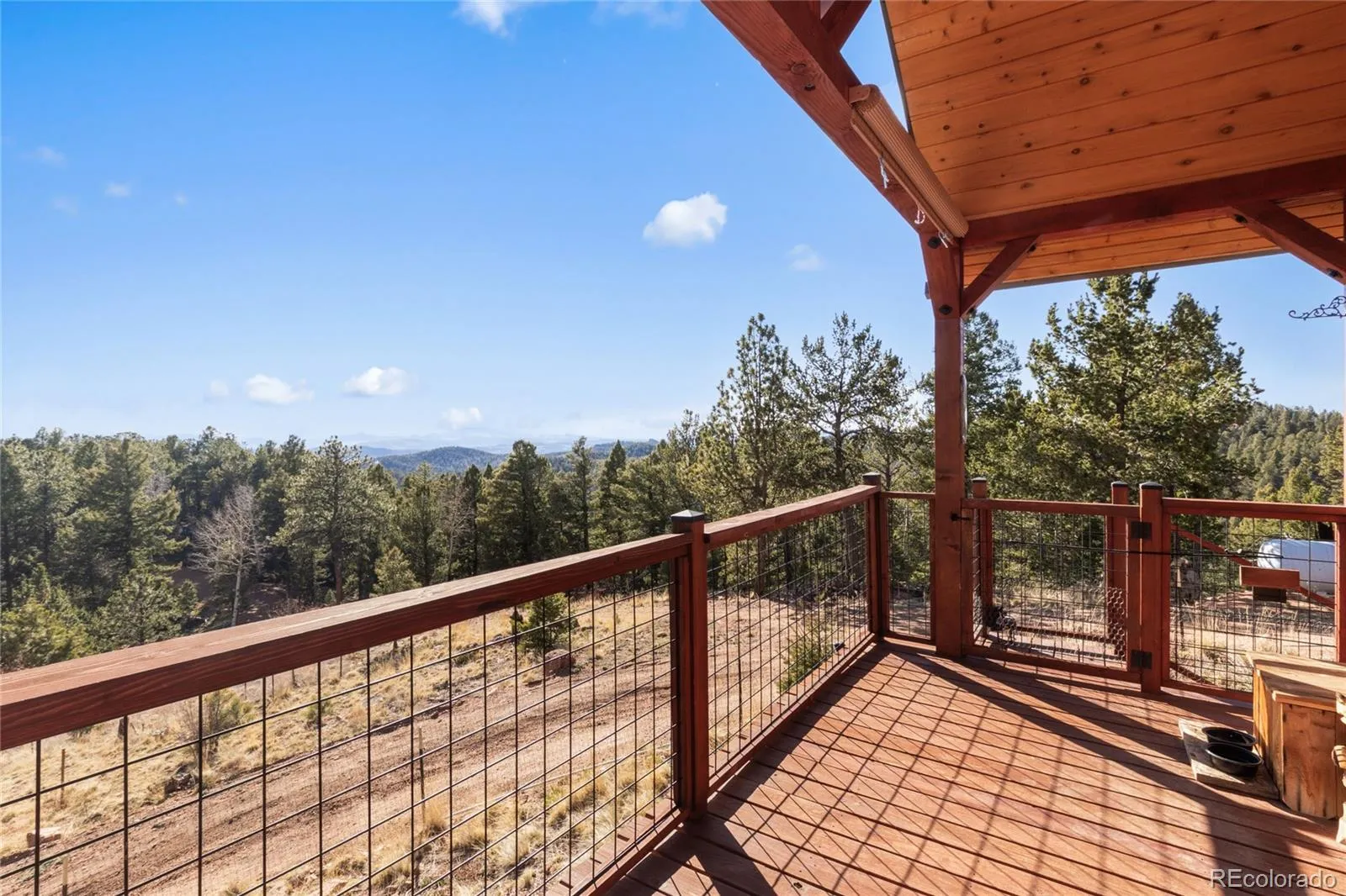 If you’ve been searching for a truly one-of-a-kind property with privacy and room to dream, this is it. This custom-built cabin gives you a thoughtfully crafted home, with room to build more, giving you a beautiful place to live now and the flexibility to create your dream property. A spacious front porch welcomes you in, and you may even be greeted by a deer or two. Inside, the living room features vaulted ceilings and floor-to-ceiling windows that open to a large west-facing deck with stunning views of the Sangre de Cristos. The kitchen is a true standout with a massive island, farm sink, KitchenAid dual five-burner range with pot filler, butcher block counters, pantry, coffee station, and beautiful Italian-style tile. This space walks out to another deck overlooking Mount Pisgah. The main level includes a generous dining room and a charming bathroom with a claw-foot tub. Upstairs, the vaulted primary bedroom offers its own private deck, and the second bedroom also features a private deck, both with incredible views. A full bathroom with a walk-in shower completes the upper level. All closets are cedar-lined, and a soapstone wood burner heats up to 2,000 sq. ft. Property features propane forced-air heating along with independently controlled electric floor heaters, providing flexible, room-by-room comfort and an additional layer of heating security. Additional features include a tankless water heater and a fully heated mechanical room in the basement with plenty of storage. The property spans 40 pristine acres with 360-degree views of Pikes Peak and surrounding ranges. The entire southern boundary borders the Dome Wilderness Area, offering abundant wildlife, mature trees, and wildflowers. With no covenants or HOA restrictions, you have the freedom to create exactly what you envision. Endless possibilities, unmatched privacy, and views that stop you in your tracks, this property is ready to become whatever you dream it to be.