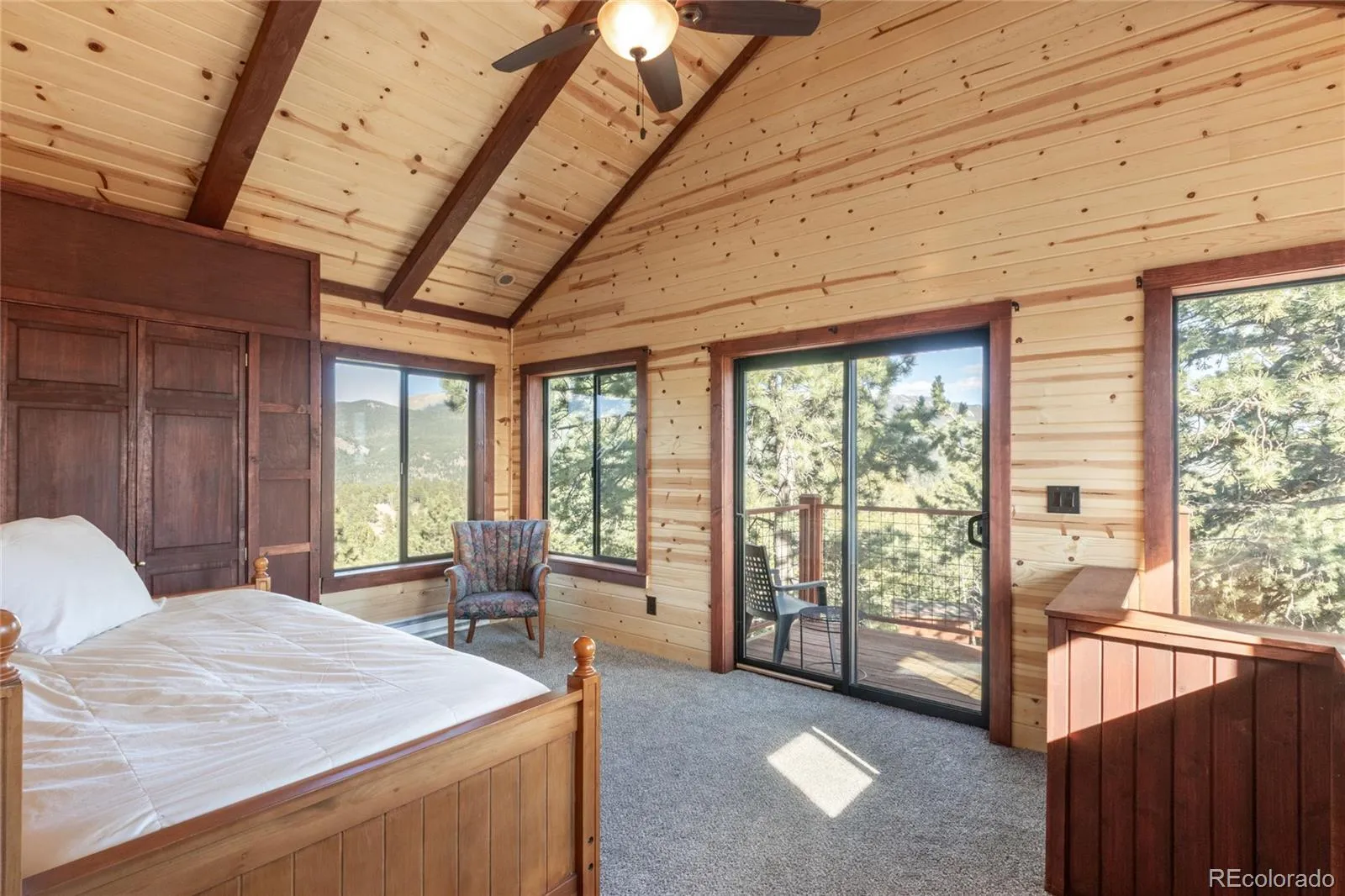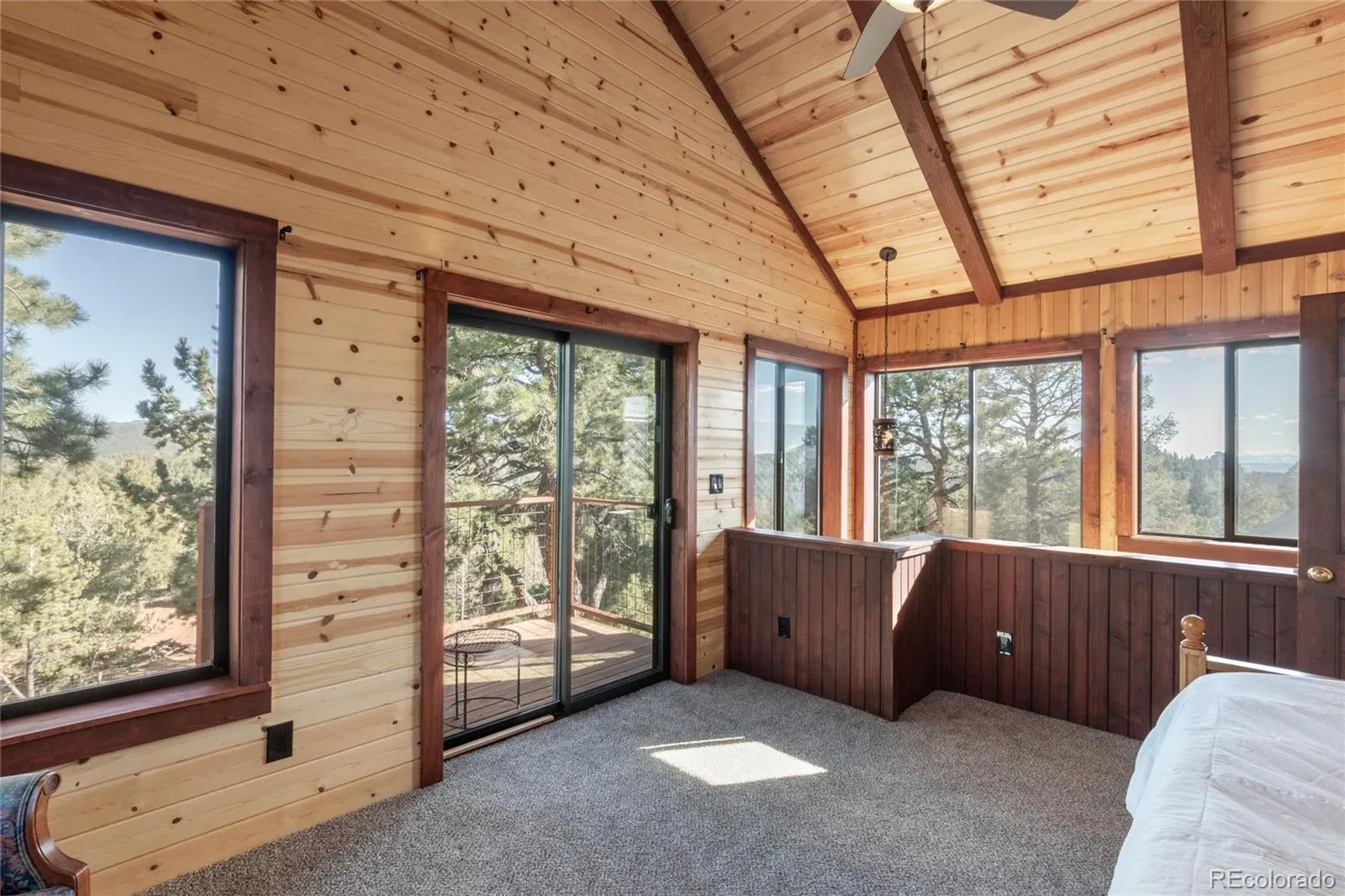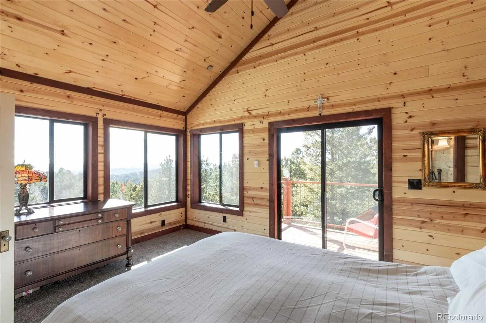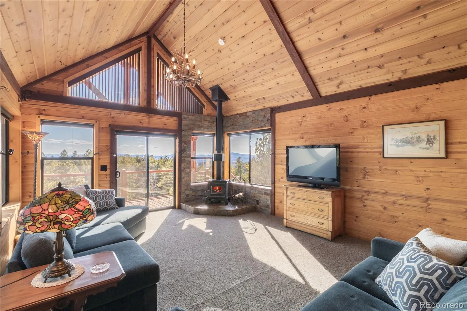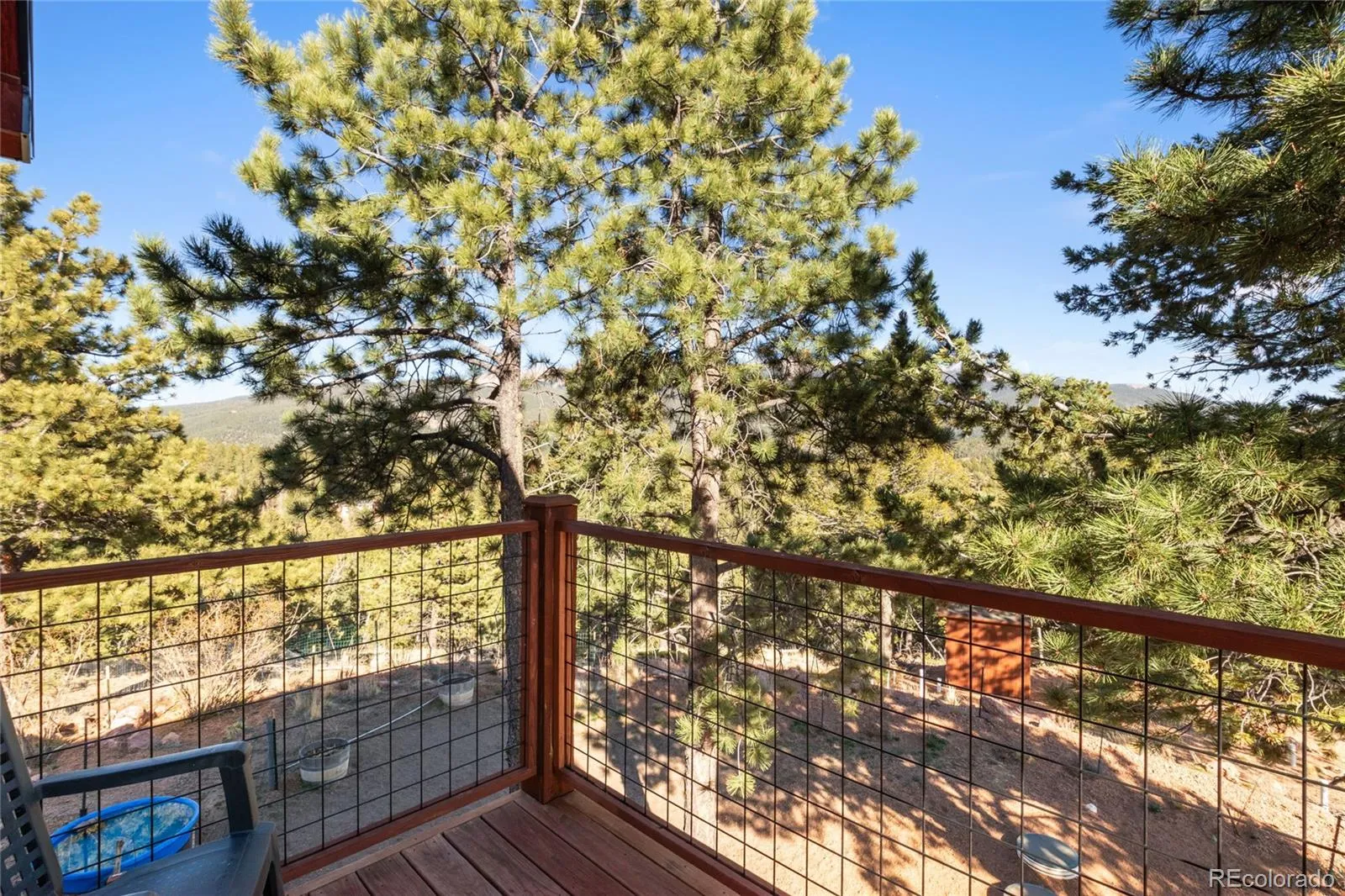 If you’ve been searching for a truly one-of-a-kind property with privacy and room to dream, this is it. This custom-built cabin gives you a thoughtfully crafted home, with room to build more, giving you a beautiful place to live now and the flexibility to create your dream property. A spacious front porch welcomes you in, and you may even be greeted by a deer or two. Inside, the living room features vaulted ceilings and floor-to-ceiling windows that open to a large west-facing deck with stunning views of the Sangre de Cristos. The kitchen is a true standout with a massive island, farm sink, KitchenAid dual five-burner range with pot filler, butcher block counters, pantry, coffee station, and beautiful Italian-style tile. This space walks out to another deck overlooking Mount Pisgah. The main level includes a generous dining room and a charming bathroom with a claw-foot tub. Upstairs, the vaulted primary bedroom offers its own private deck, and the second bedroom also features a private deck, both with incredible views. A full bathroom with a walk-in shower completes the upper level. All closets are cedar-lined, and a soapstone wood burner heats up to 2,000 sq. ft. Property features propane forced-air heating along with independently controlled electric floor heaters, providing flexible, room-by-room comfort and an additional layer of heating security. Additional features include a tankless water heater and a fully heated mechanical room in the basement with plenty of storage. The property spans 40 pristine acres with 360-degree views of Pikes Peak and surrounding ranges. The entire southern boundary borders the Dome Wilderness Area, offering abundant wildlife, mature trees, and wildflowers. With no covenants or HOA restrictions, you have the freedom to create exactly what you envision. Endless possibilities, unmatched privacy, and views that stop you in your tracks, this property is ready to become whatever you dream it to be.