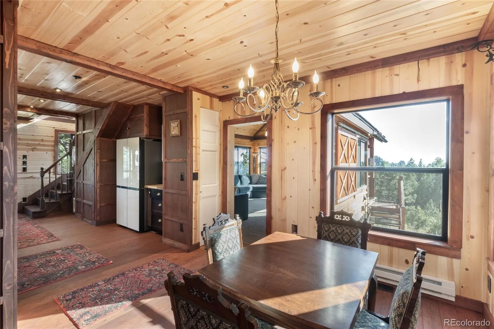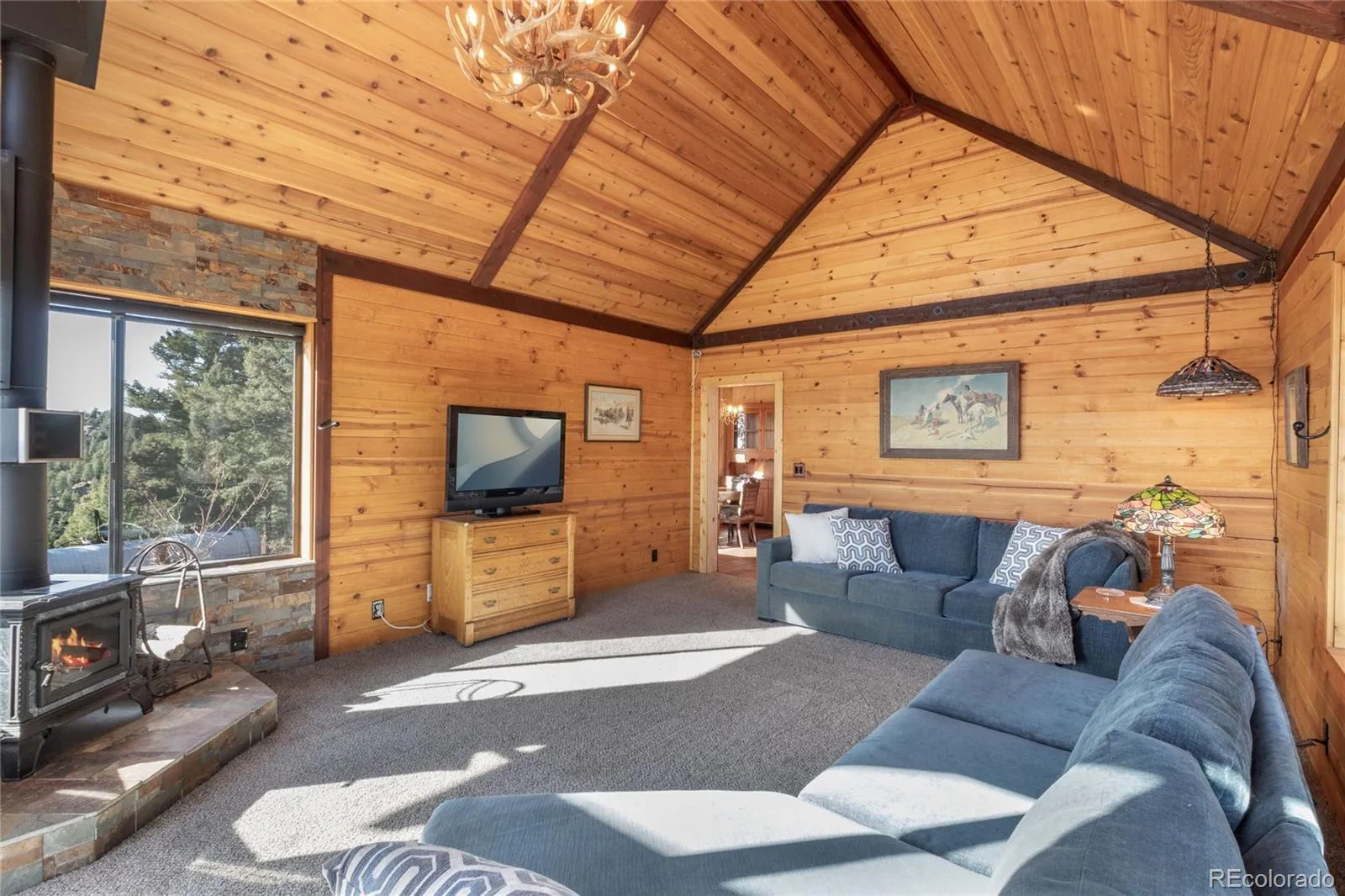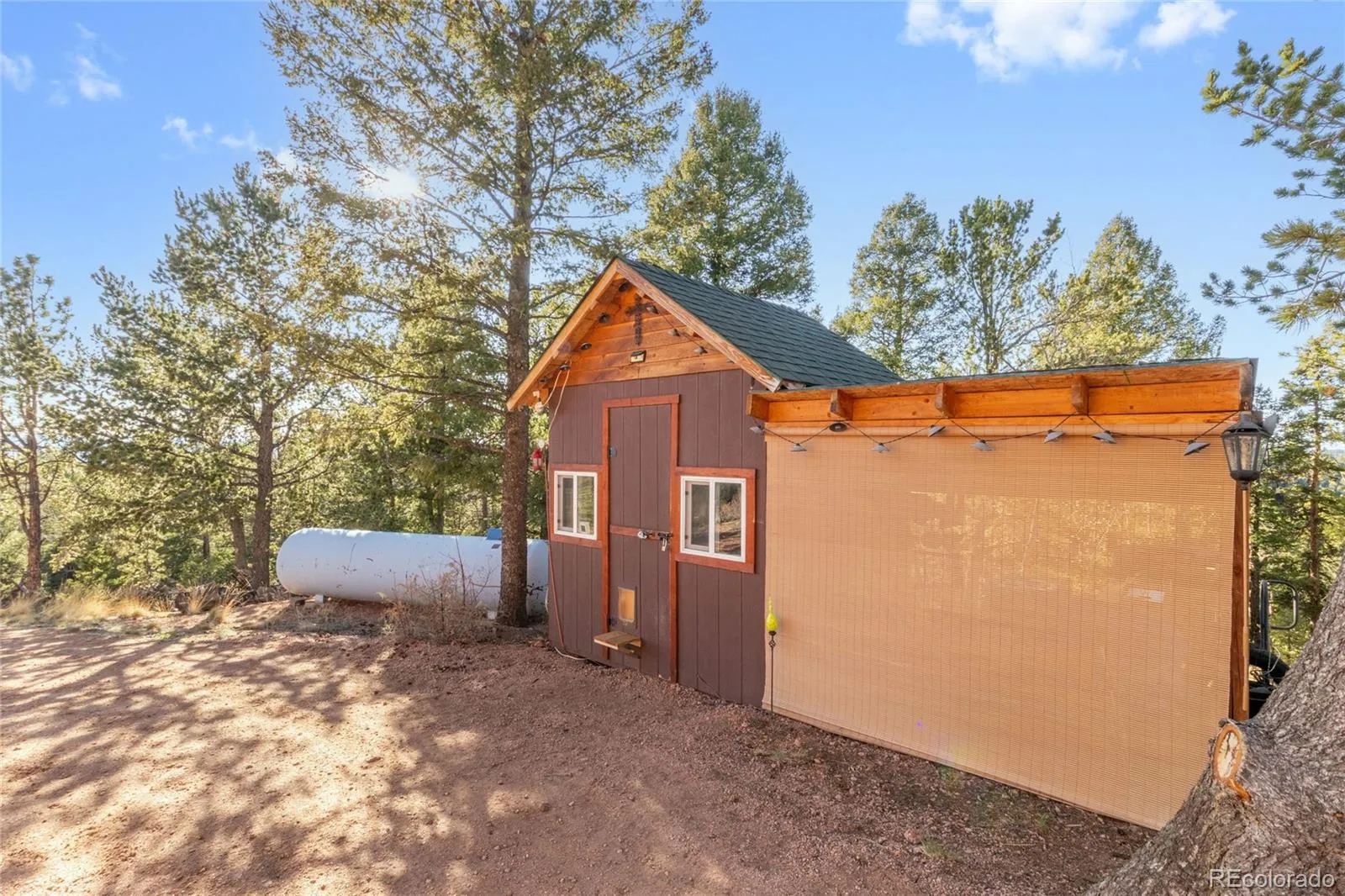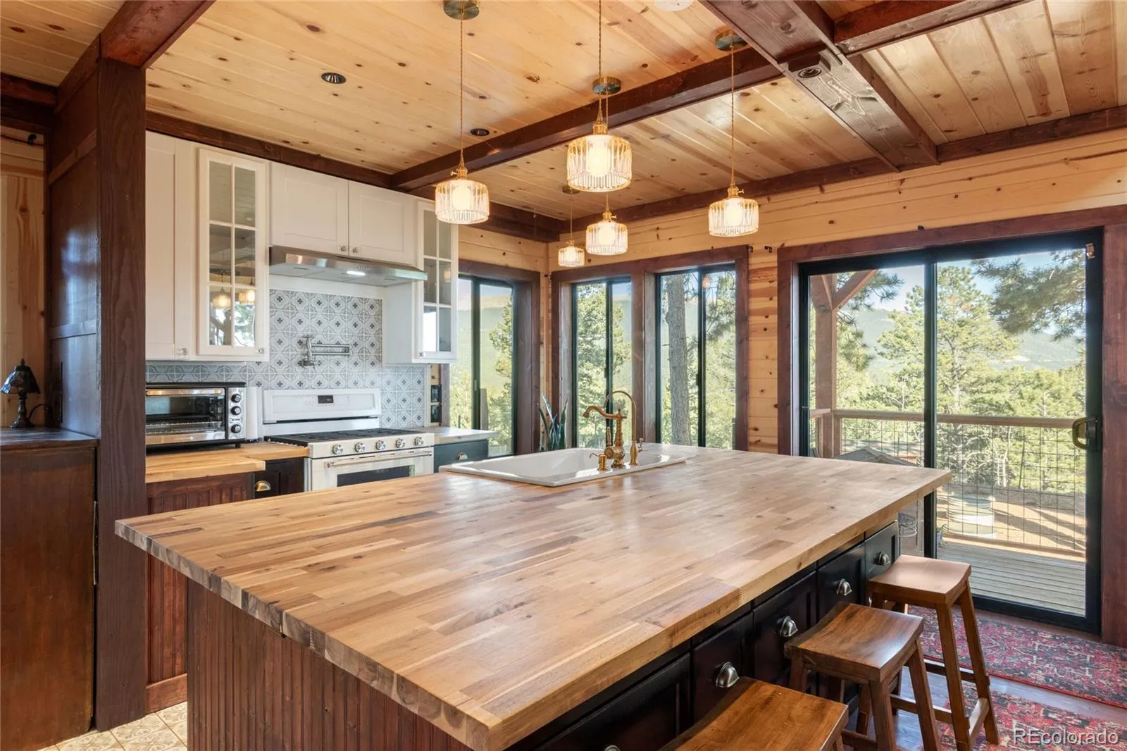 If you’ve been searching for a truly one-of-a-kind property with privacy and room to dream, this is it. This custom-built cabin gives you a thoughtfully crafted home, with room to build more, giving you a beautiful place to live now and the flexibility to create your dream property. A spacious front porch welcomes you in, and you may even be greeted by a deer or two. Inside, the living room features vaulted ceilings and floor-to-ceiling windows that open to a large west-facing deck with stunning views of the Sangre de Cristos. The kitchen is a true standout with a massive island, farm sink, KitchenAid dual five-burner range with pot filler, butcher block counters, pantry, coffee station, and beautiful Italian-style tile. This space walks out to another deck overlooking Mount Pisgah. The main level includes a generous dining room and a charming bathroom with a claw-foot tub. Upstairs, the vaulted primary bedroom offers its own private deck, and the second bedroom also features a private deck, both with incredible views. A full bathroom with a walk-in shower completes the upper level. All closets are cedar-lined, and a soapstone wood burner heats up to 2,000 sq. ft. Property features propane forced-air heating along with independently controlled electric floor heaters, providing flexible, room-by-room comfort and an additional layer of heating security. Additional features include a tankless water heater and a fully heated mechanical room in the basement with plenty of storage. The property spans 40 pristine acres with 360-degree views of Pikes Peak and surrounding ranges. The entire southern boundary borders the Dome Wilderness Area, offering abundant wildlife, mature trees, and wildflowers. With no covenants or HOA restrictions, you have the freedom to create exactly what you envision. Endless possibilities, unmatched privacy, and views that stop you in your tracks, this property is ready to become whatever you dream it to be.