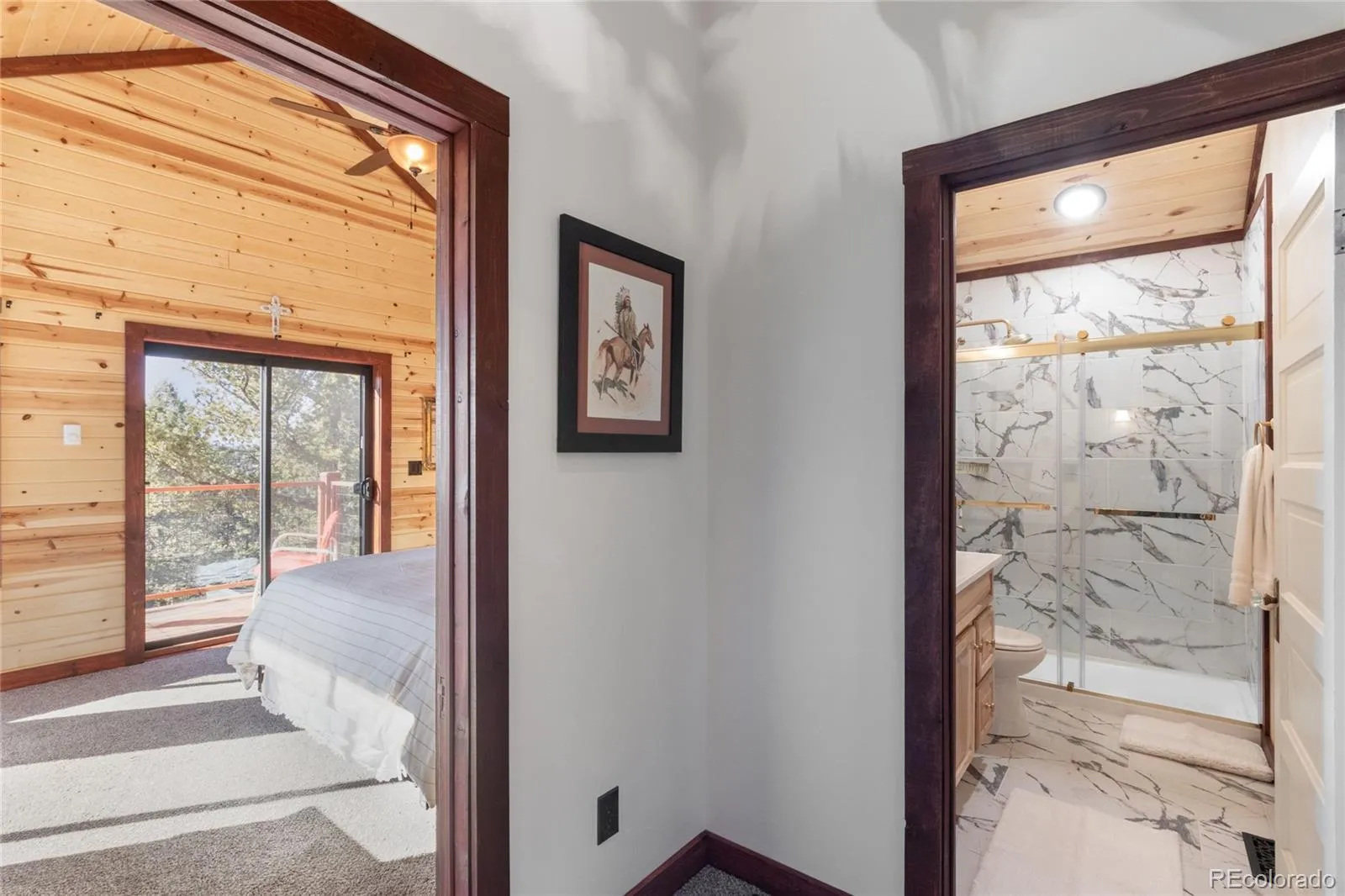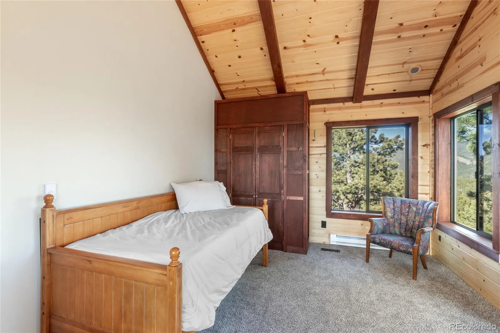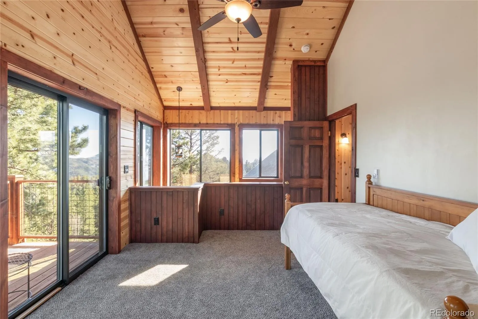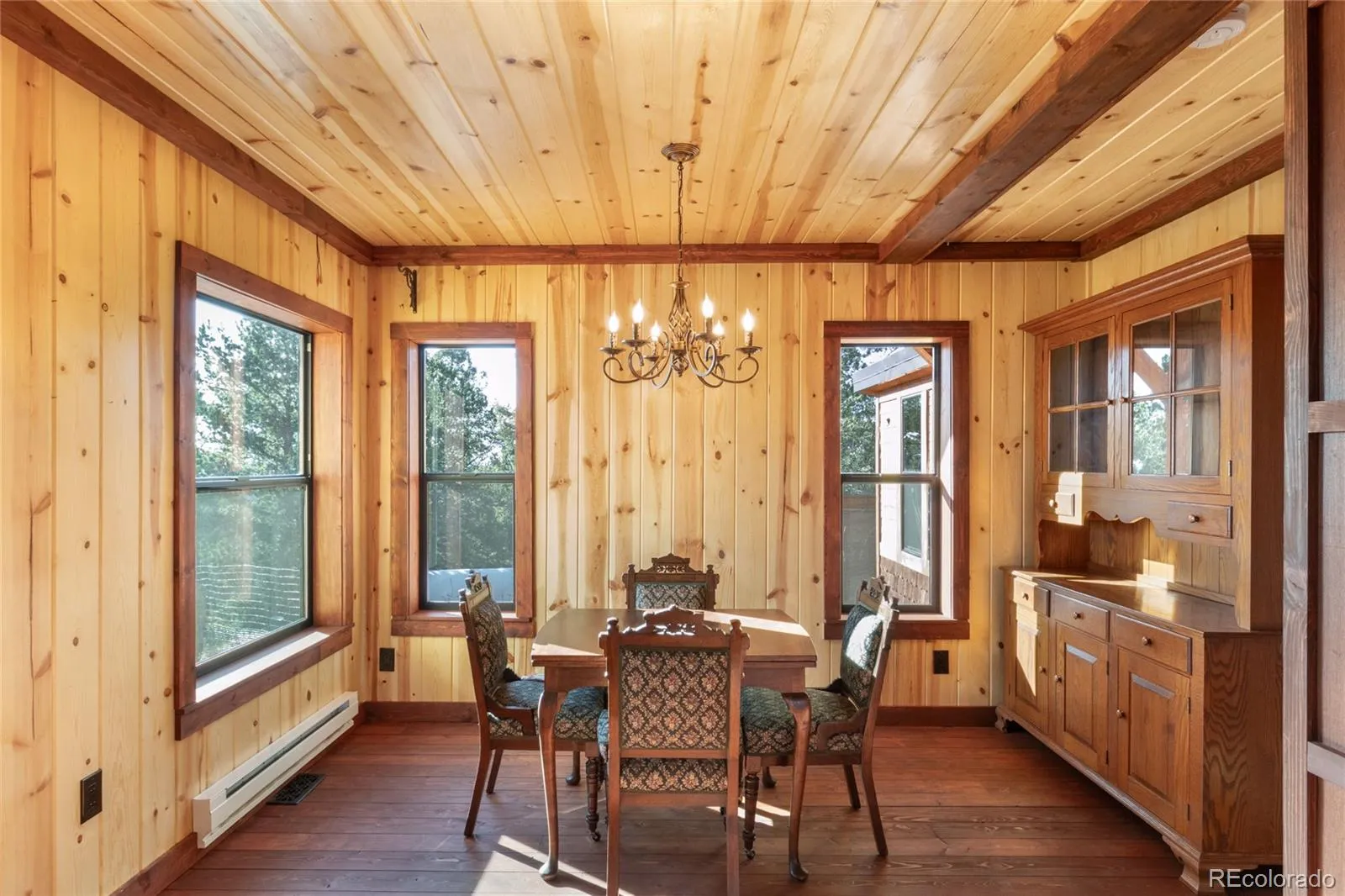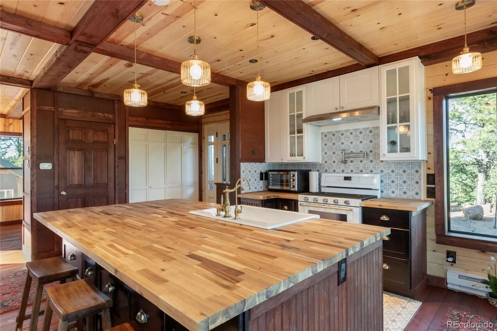 If you’ve been searching for a truly one-of-a-kind property with privacy and room to dream, this is it. This custom-built cabin gives you a thoughtfully crafted home, with room to build more, giving you a beautiful place to live now and the flexibility to create your dream property. A spacious front porch welcomes you in, and you may even be greeted by a deer or two. Inside, the living room features vaulted ceilings and floor-to-ceiling windows that open to a large west-facing deck with stunning views of the Sangre de Cristos. The kitchen is a true standout with a massive island, farm sink, KitchenAid dual five-burner range with pot filler, butcher block counters, pantry, coffee station, and beautiful Italian-style tile. This space walks out to another deck overlooking Mount Pisgah. The main level includes a generous dining room and a charming bathroom with a claw-foot tub. Upstairs, the vaulted primary bedroom offers its own private deck, and the second bedroom also features a private deck, both with incredible views. A full bathroom with a walk-in shower completes the upper level. All closets are cedar-lined, and a soapstone wood burner heats up to 2,000 sq. ft. Property features propane forced-air heating along with independently controlled electric floor heaters, providing flexible, room-by-room comfort and an additional layer of heating security. Additional features include a tankless water heater and a fully heated mechanical room in the basement with plenty of storage. The property spans 40 pristine acres with 360-degree views of Pikes Peak and surrounding ranges. The entire southern boundary borders the Dome Wilderness Area, offering abundant wildlife, mature trees, and wildflowers. With no covenants or HOA restrictions, you have the freedom to create exactly what you envision. Endless possibilities, unmatched privacy, and views that stop you in your tracks, this property is ready to become whatever you dream it to be.
