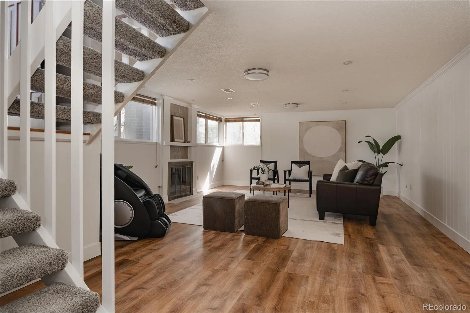 Three bedrooms and two full baths are tucked down the hall on the main level, including the primary suite, creating a sense of separation from the main living spaces. The lower level adds a spacious second living area, two additional bedrooms, and a full bath, offering flexibility for guests, hobbies, or longer-term stays. The laundry room attaches to the two-car garage, creating a convenient drop zone/mud room for jackets, backpacks, and more.