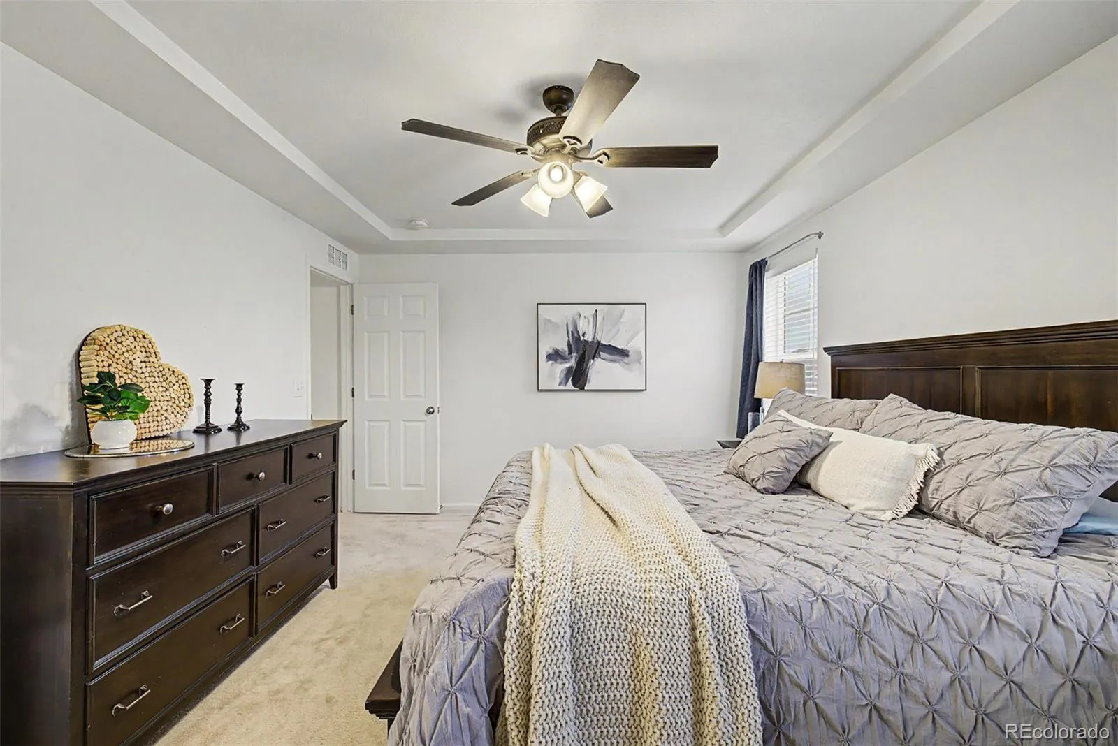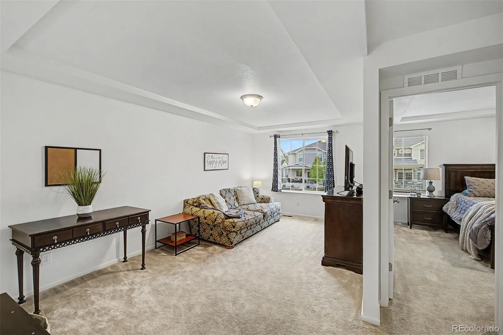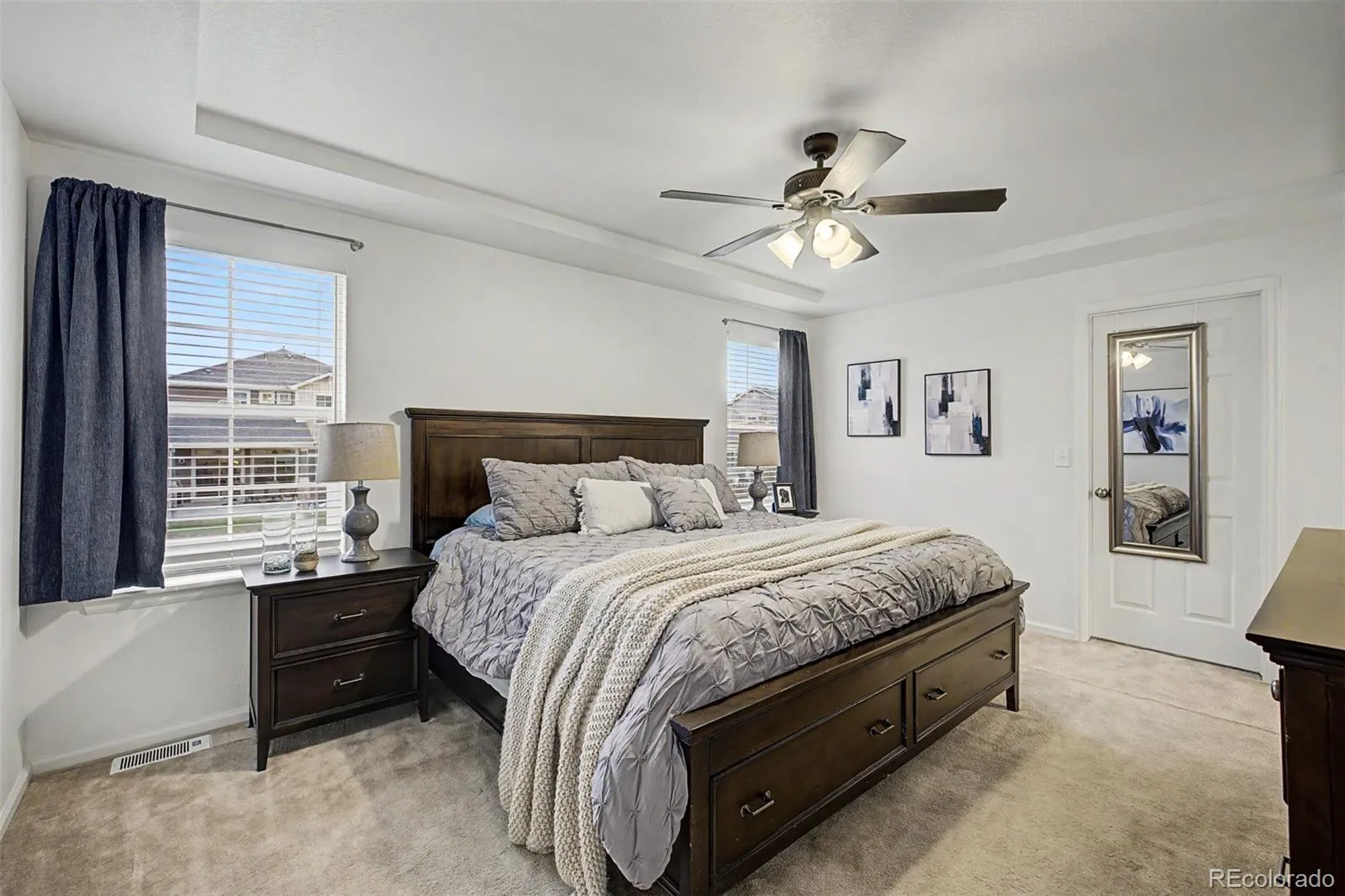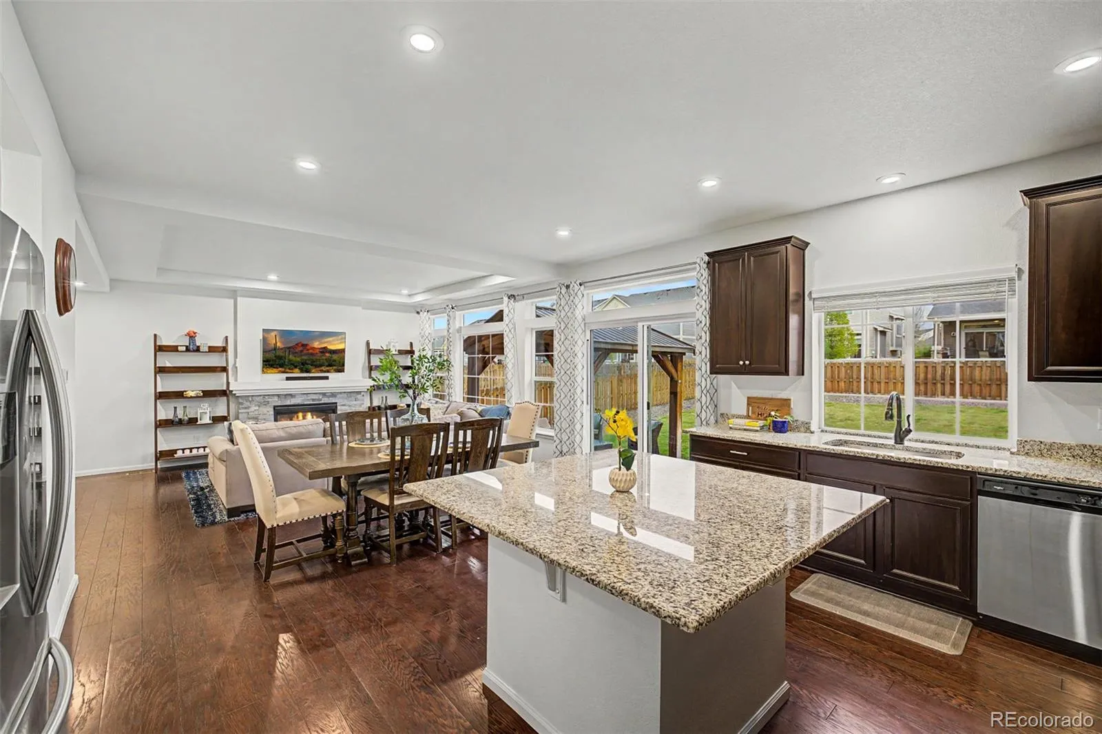 Step into a bright, open-concept layout filled with natural light and expansive windows (as highlighted throughout the home ), complemented by rich flooring, neutral tones, and elegant tray ceilings. The inviting living room features a cozy fireplace with built-in blower, designed to efficiently heat the space while creating a warm atmosphere.